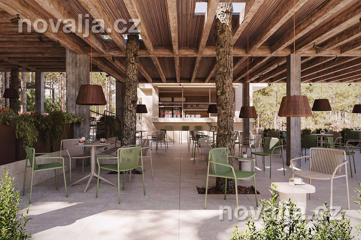 V rezorte nechýba ani supermarket, pekáreň, bankomat, stanica na dobíjanie elektro automobilov, reštaurácie a bary.