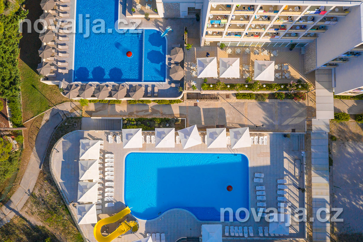 Hneď pri hoteli sa nachádzajú dva veľké bazény s vodnými hracími prvkami pre deti a lehátkami a slnečníkmi. Hotel disponuje aj vnútorným bazénom. Počas letnej sezóny sú v ponuke aj pestré animačné programy.