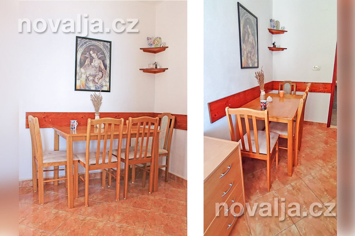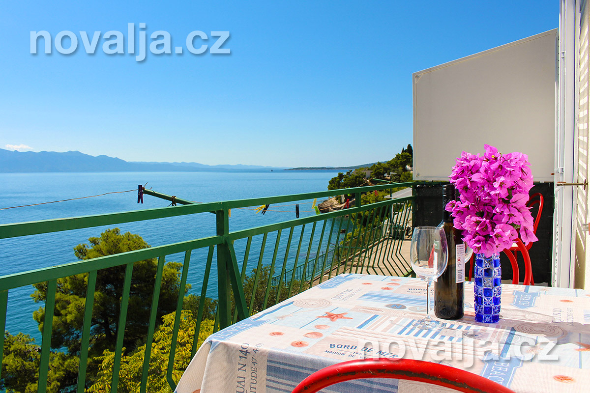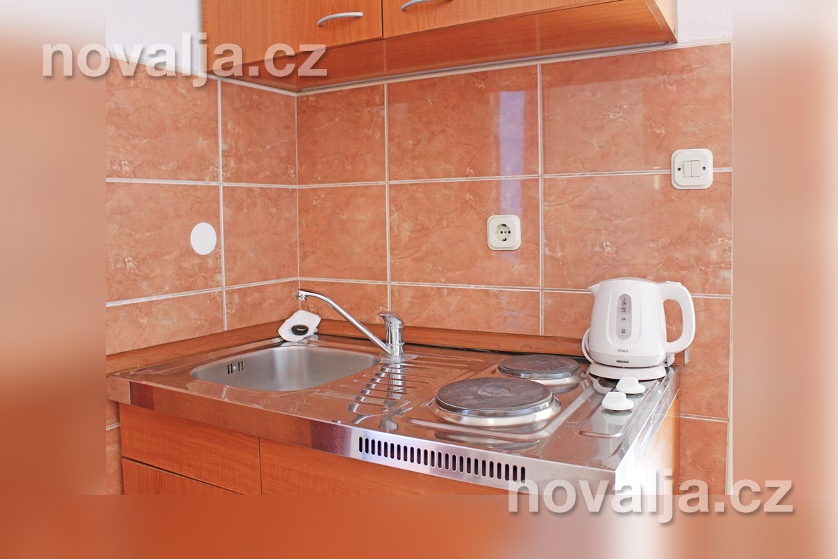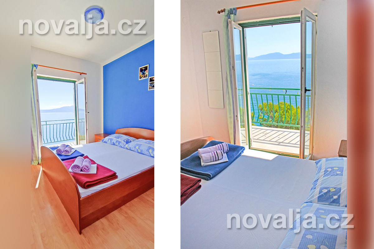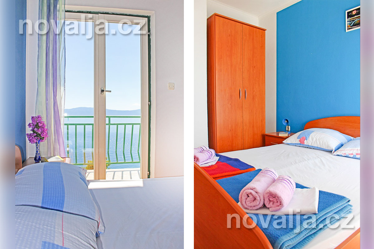 2 spálne s dvoma lôžkami, menšia vybavená kuchyňa (chladnička, rýchlovarvarná kanvica), sociálne zariadenie so sprchovacím kútom a WC, balkón s výhľadom na more (vstup na balkón z oboch spální), terasa pri vstupe do apartmánu. Klimatizácia v kuchyni v cene.