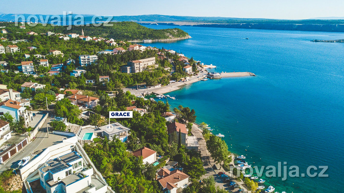 Dovolenkový dom Grace s vyhrievaným bazénom a krásnym výhľadom na more sa nachádza 50 m od krásnej kamienkovej pláže Jadranovo s pozvoľným vstupom v rovnomennom letovisku na Crikvenickej riviére. Od domu vedie k pláži chodník. Môžete tu stráviť skvelú dovolenku so skupinou priateľov. Vila disponuje 5 spálňami a ubytuje 8–10 osôb. Psíci sú tu tiež vítaní.