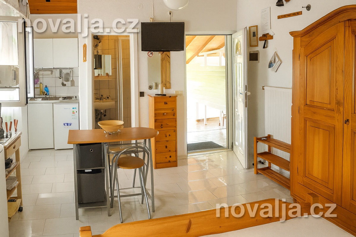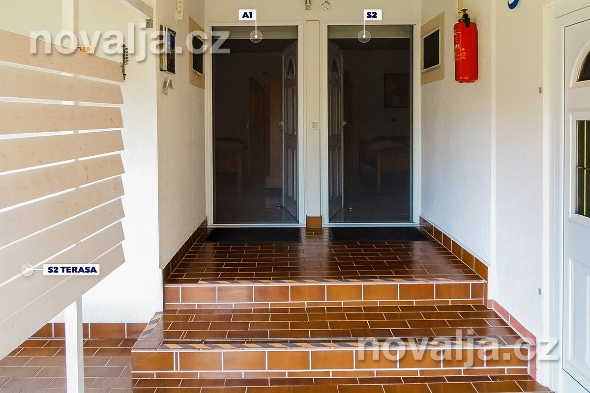 Terasa nie je vnútri štúdia, nachádza sa pred vstupom do oboch ubytovacích jednotiek. Okolo terasy štúdia S2 prechádzajú klienti ubytovaní v štúdiu S1 na rovnakom poschodí.