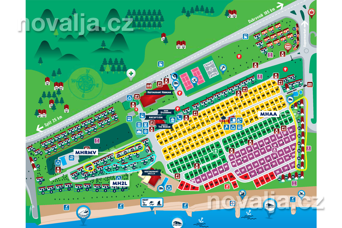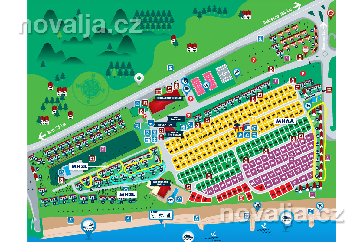 Mobilhomy MHAA sú umiestnené na južnom okraji rezortu (20–120 m od pláže)