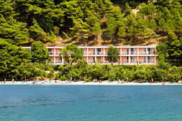Hotel obklopený borovicovým hájom sa nachádza v južnej časti mesta Omiš. Pekná okruhliaková pláž s pozvoľným vstupom do mora je 30-100 m od hotela (záleží na tom, v akej časti ste ubytovaní). Centrum Omiša s množstvom reštaurácií a obchodíkov je vzdialené 1,4 km.