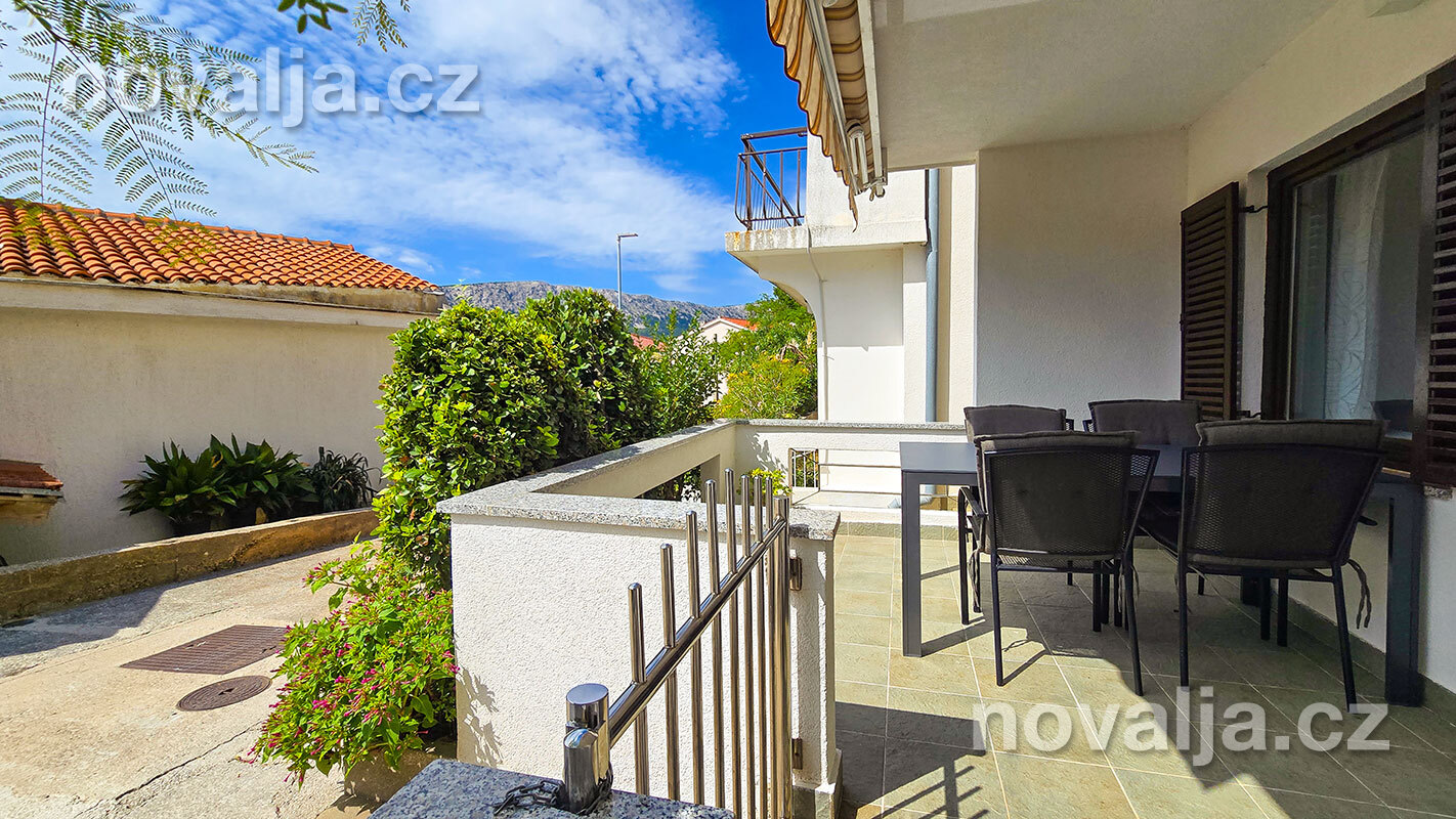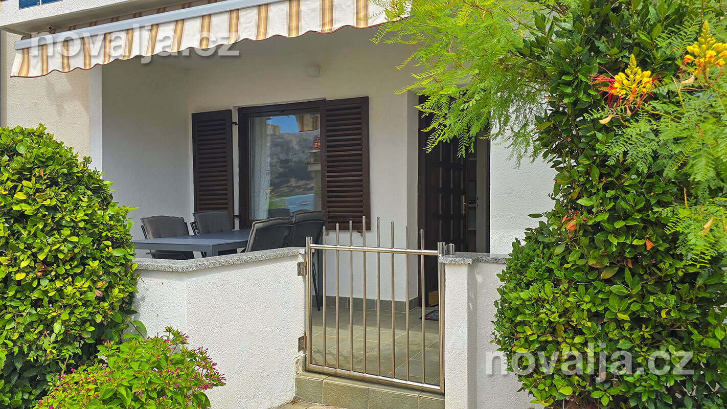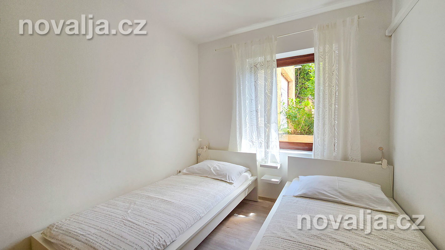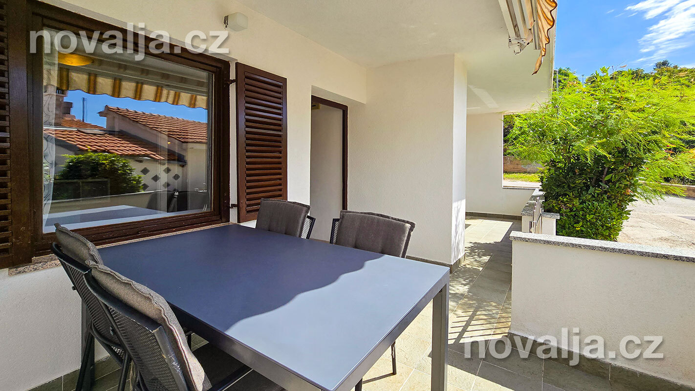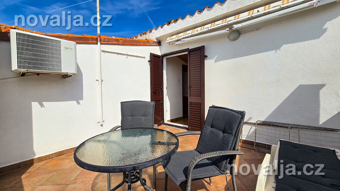 2 spálne s dvoma lôžkami, vybavená kuchyňa (chladnička, mraznička, rúra, varná kanvica, kávovar, toaster) s rozkladacím gaučom pre 1 osobu (190 x 110 cm), LCD TV+SAT, trezor, sociálne zariadenie so sprchovacím kútom a WC, fén, terasa s čiastočne Klimatizácia v chodbe (v cene).