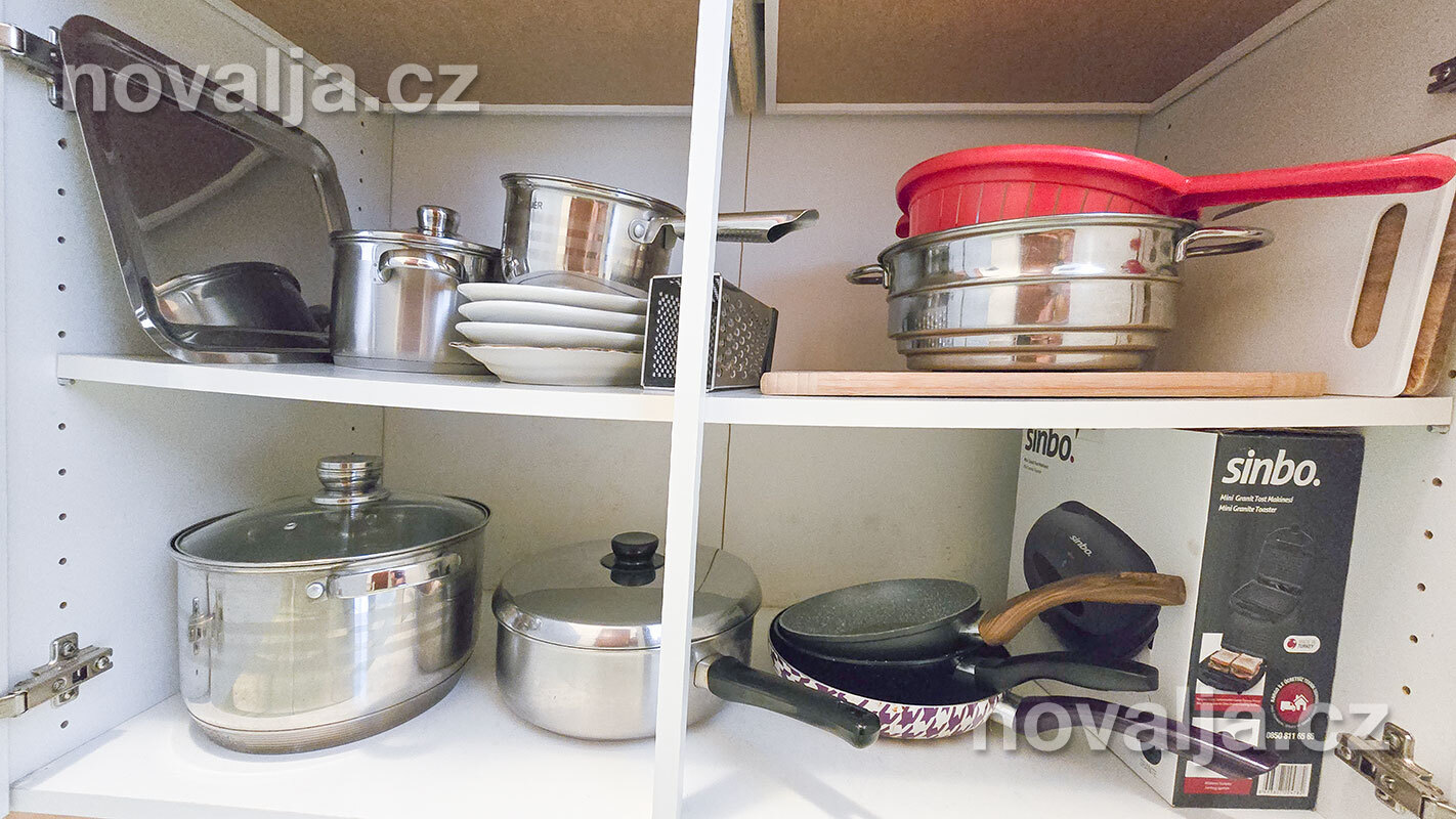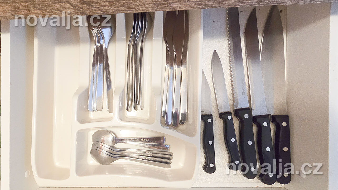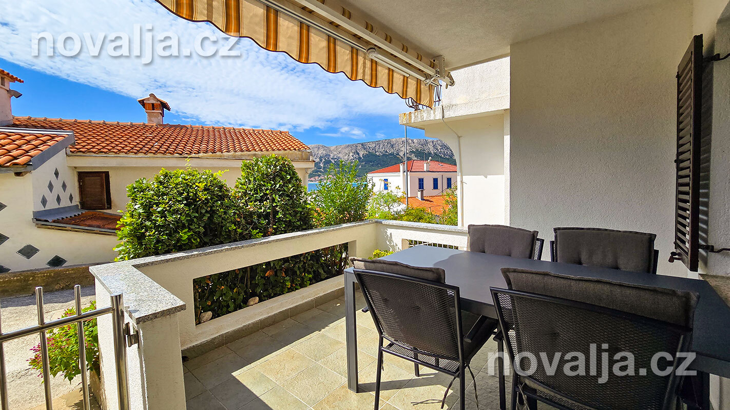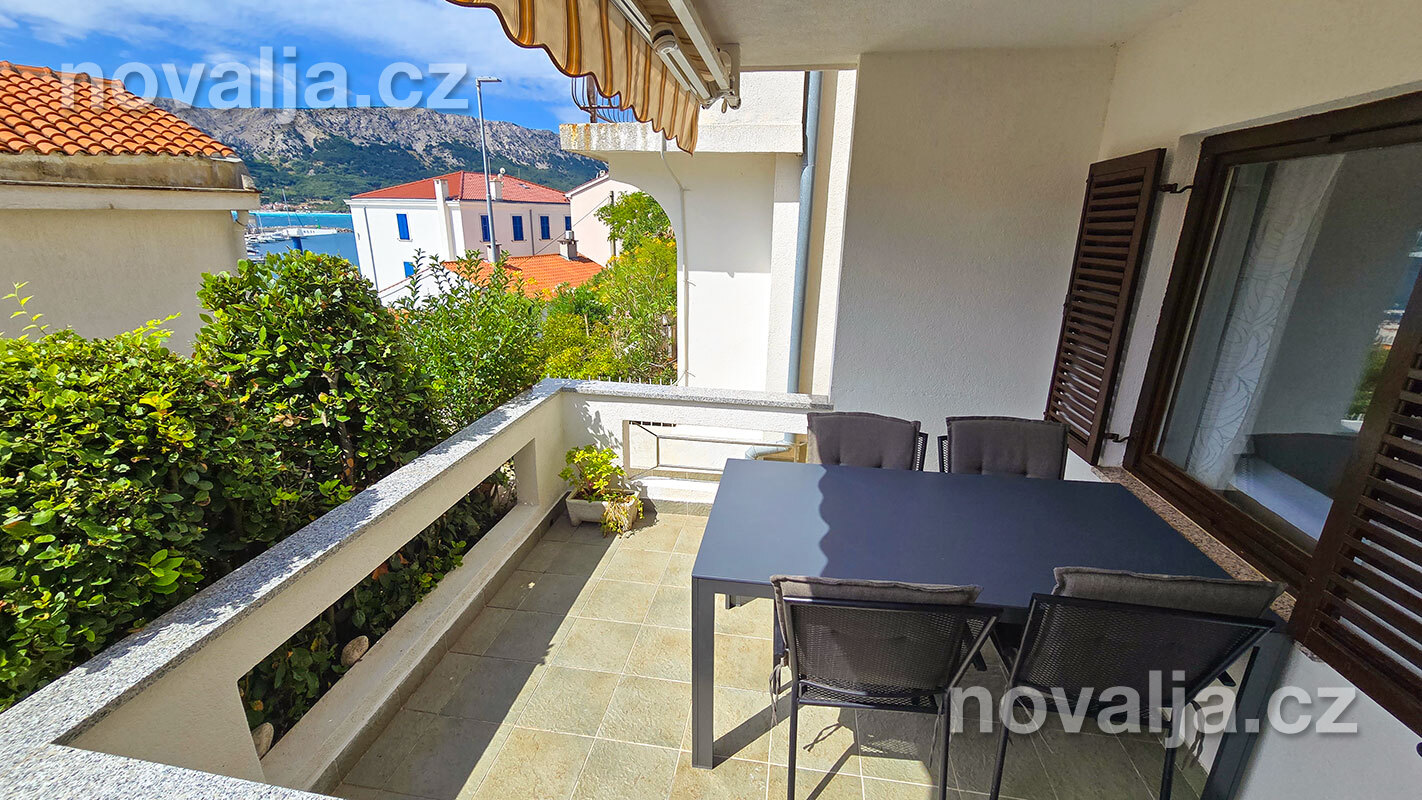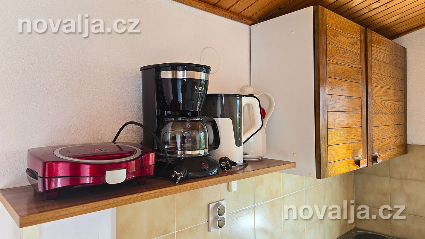 2 spálne s dvoma lôžkami, vybavená kuchyňa (chladnička, mraznička, rúra, varná kanvica, kávovar, toaster) s rozkladacím gaučom pre 1 osobu (190 x 110 cm), LCD TV+SAT, trezor, sociálne zariadenie so sprchovacím kútom a WC, fén, terasa s čiastočne Klimatizácia v chodbe (v cene).