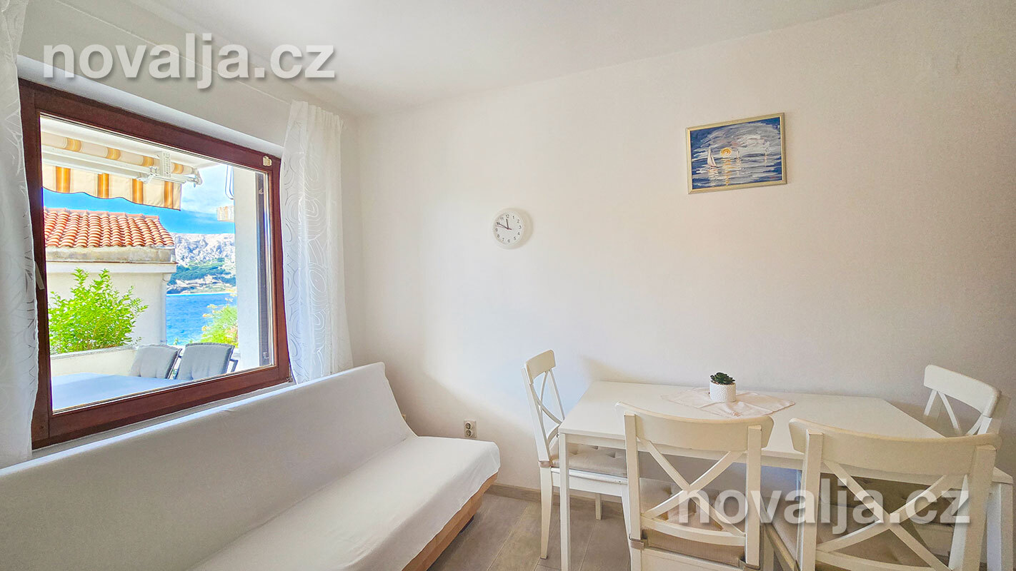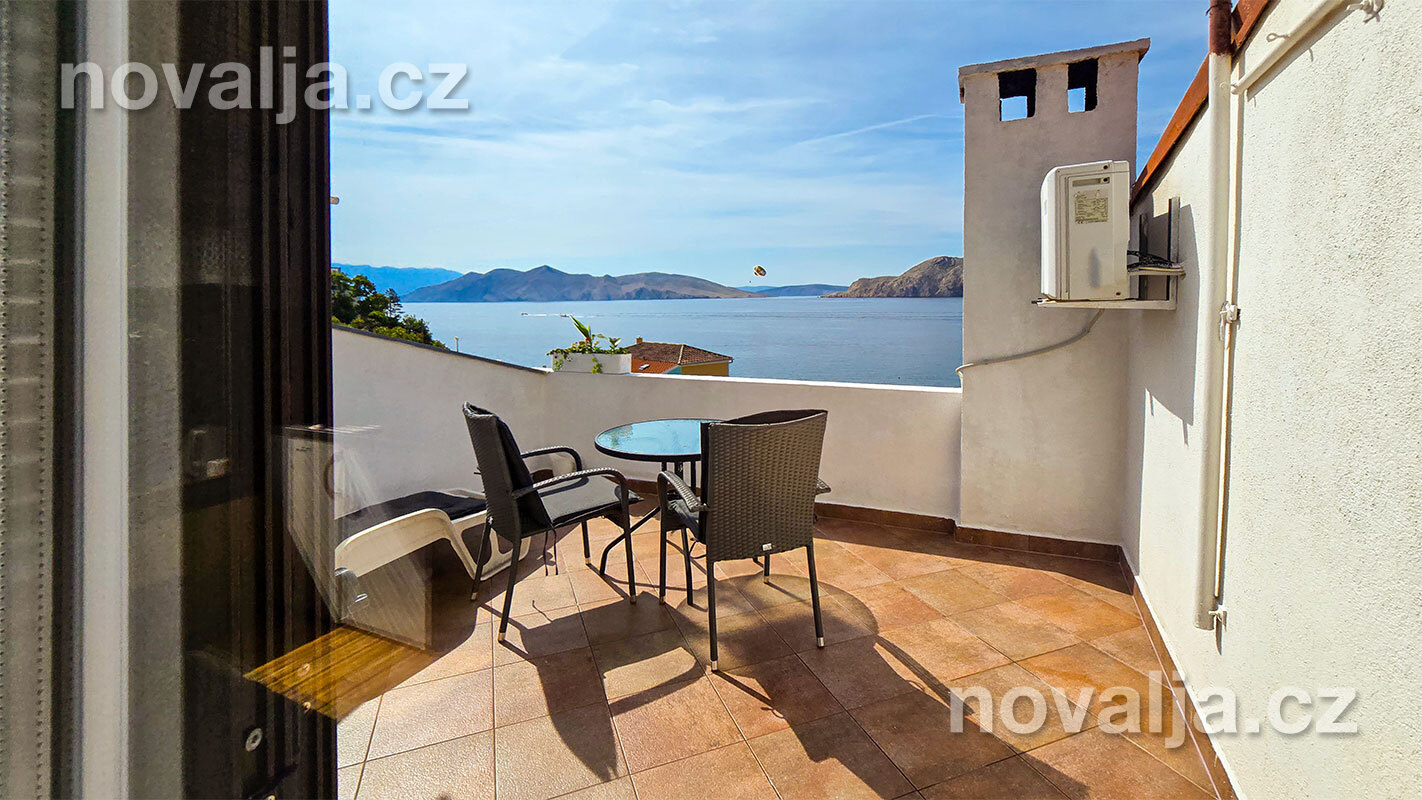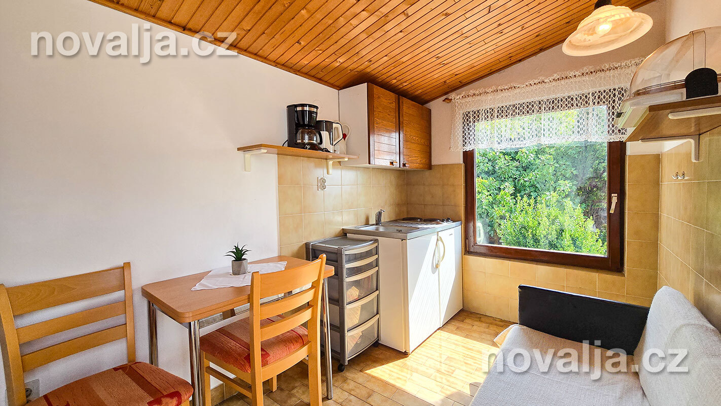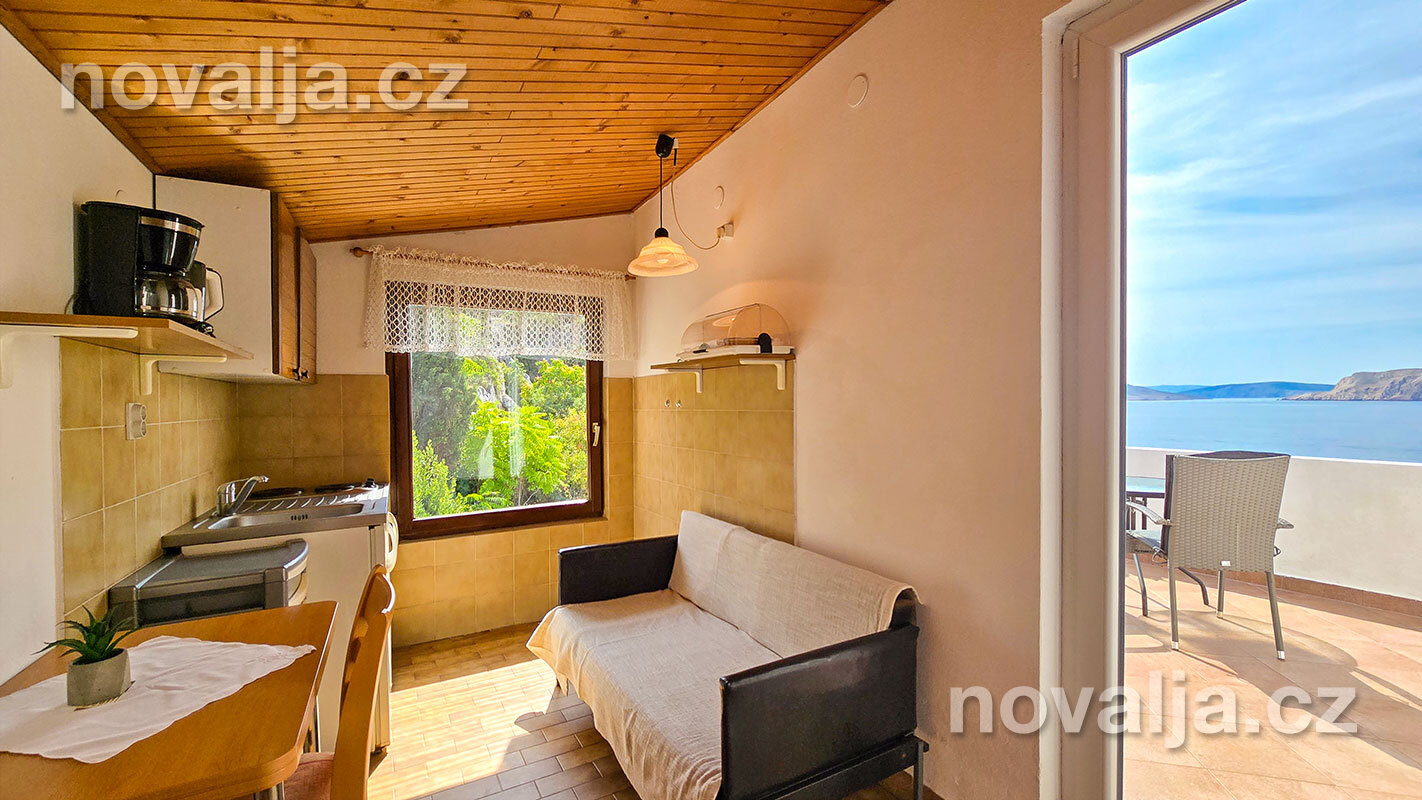 1 spálňa s dvoma lôžkami, vybavená kuchyňa (chladnička, varná kanvica, kávovar, toaster), LCD TV+SAT, trezor, sociálne zariadenie so sprchovacím kútom a WC, fén, terasa s krásnym výhľadom na more. Klimatizácia v spálni (v cene).