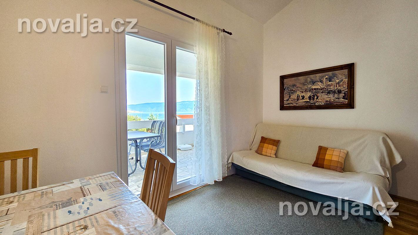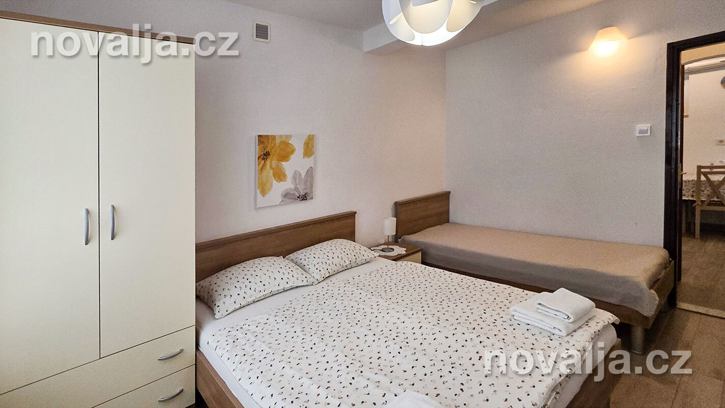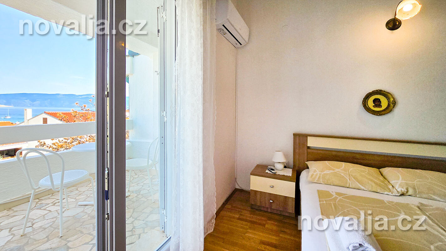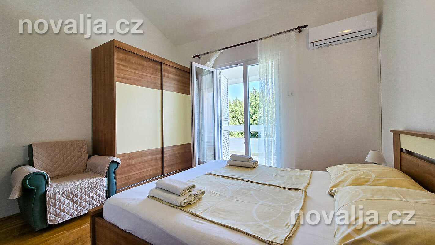 2 spálne s dvoma lôžkami, vybavená kuchyňa (chladnička, mraznička, mikrovlnná rúra, varná kanvica, kávovar, toaster) s rozkladacím gaučom pre 1-2 osoby, LCD TV+SAT, 2x sociálne zariadenie so sprchovacím kútom a WC, fén, terasa s výhľadom na more. Klimatizácia v kuchyni a v spálni za príplatok 10 €/deň - za obe klimatizácie (hradí sa na mieste).