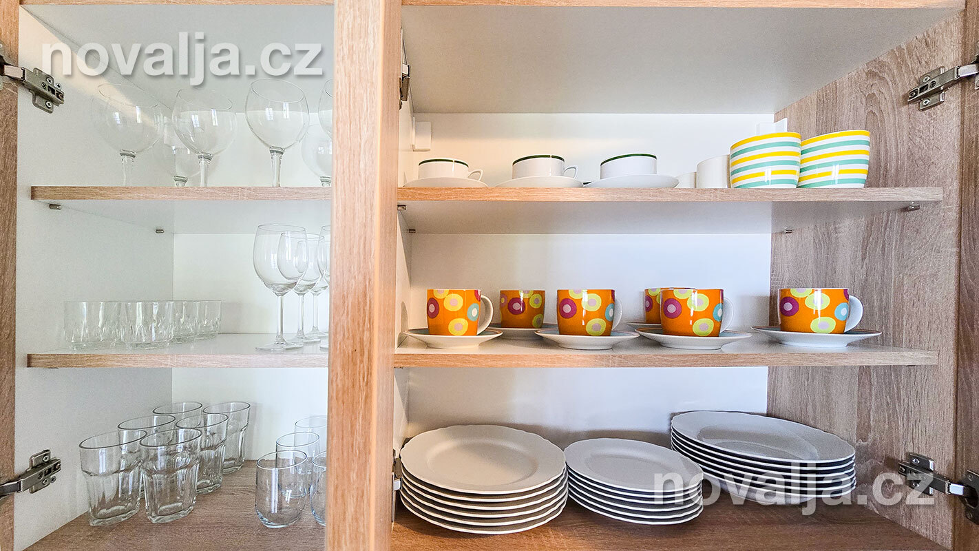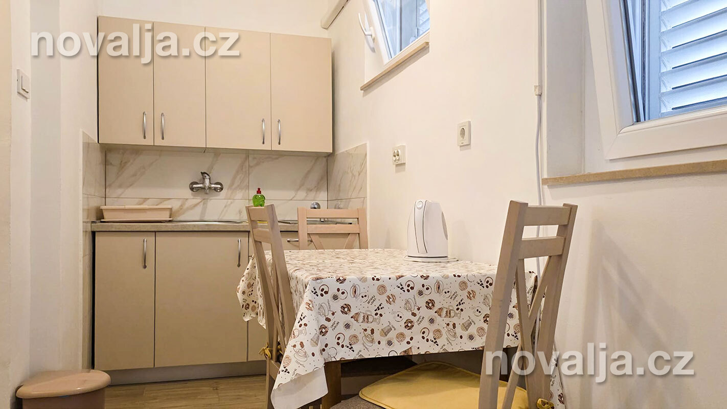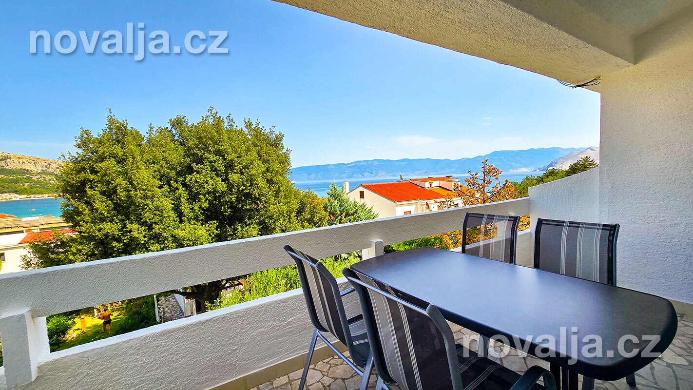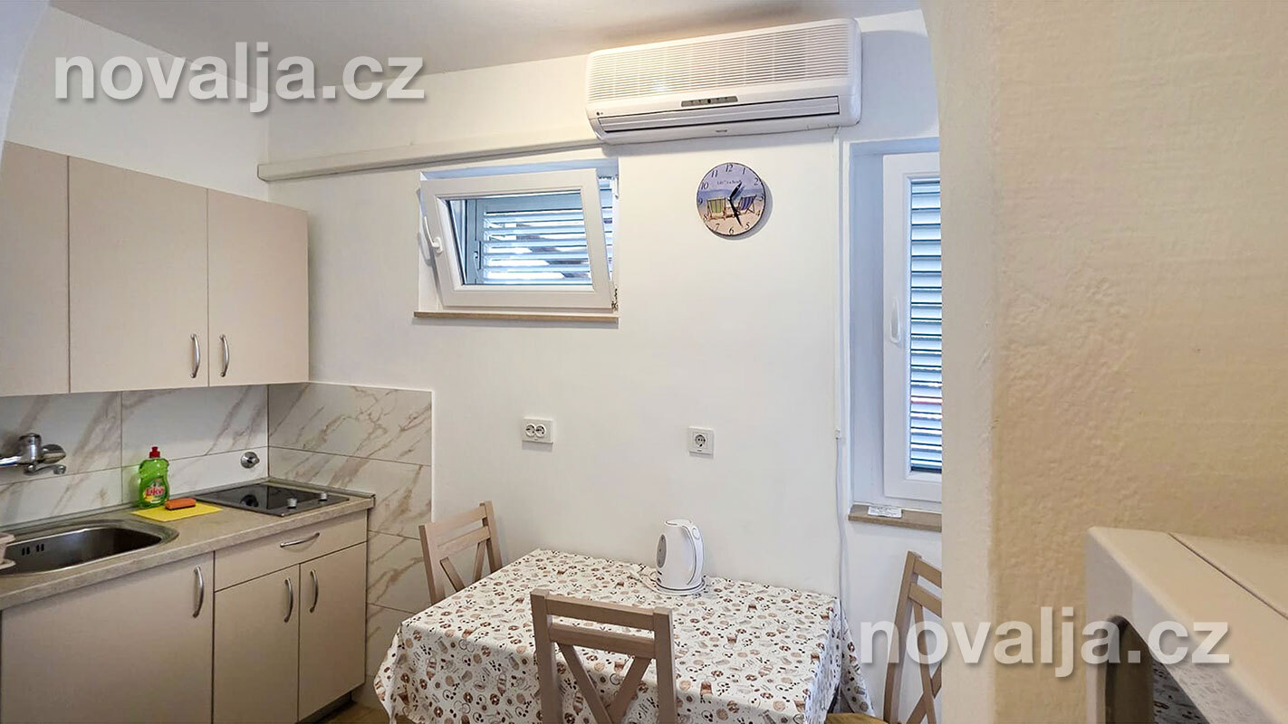 2 spálne s dvoma lôžkami, vybavená kuchyňa (chladnička, mraznička, mikrovlnná rúra, varná kanvica, kávovar, toaster) s rozkladacím gaučom pre 1-2 osoby, LCD TV+SAT, 2x sociálne zariadenie so sprchovacím kútom a WC, fén, terasa s výhľadom na more. Klimatizácia v kuchyni a v spálni za príplatok 10 €/deň - za obe klimatizácie (hradí sa na mieste).