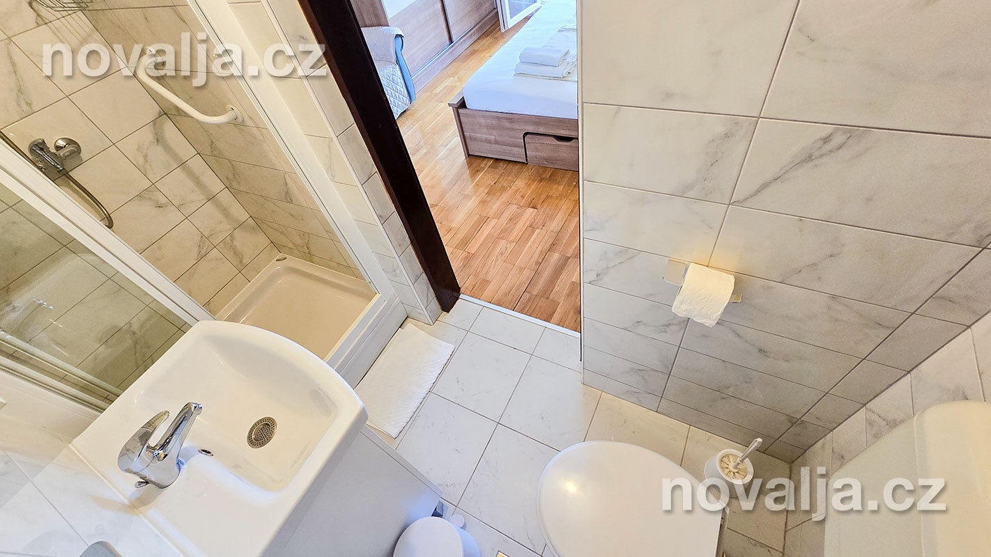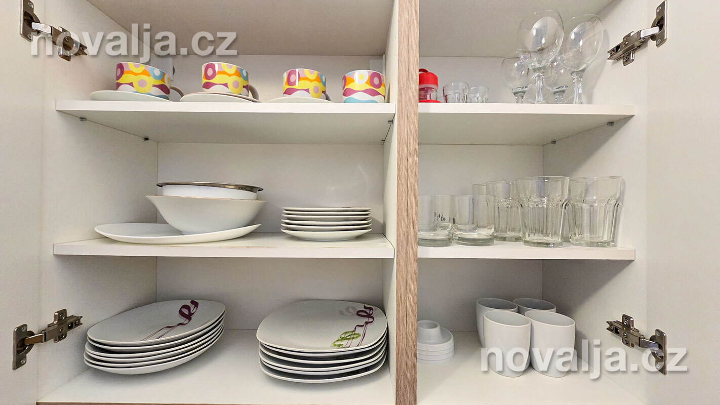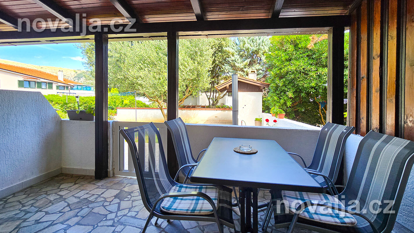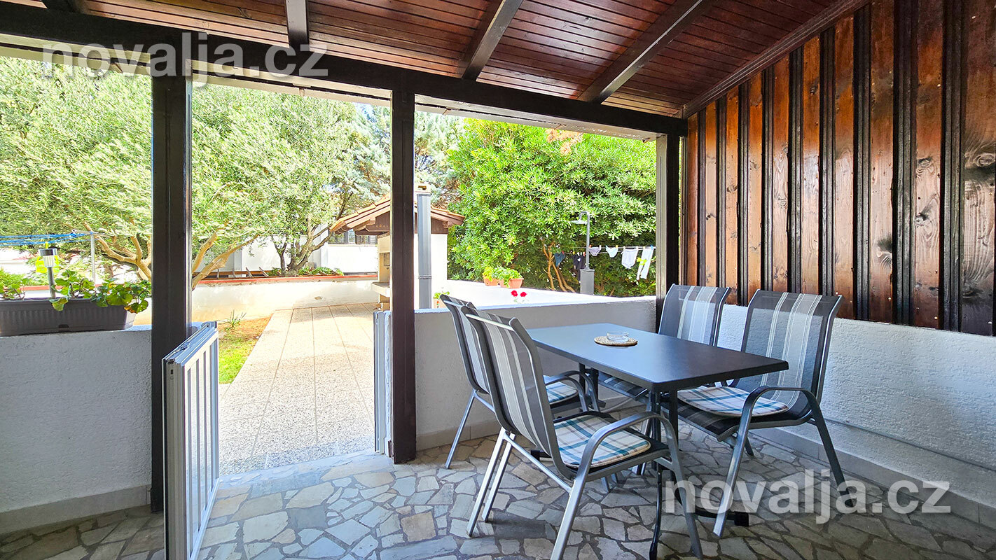 2 spálne s dvoma lôžkami, vybavená kuchyňa (chladnička, mraznička, mikrovlnná rúra, varná kanvica, kávovar, toaster) s rozkladacím gaučom pre 1-2 osoby, LCD TV+SAT, 2x sociálne zariadenie so sprchovacím kútom a WC, fén, terasa s výhľadom na more. Klimatizácia v kuchyni a v spálni za príplatok 10 €/deň - za obe klimatizácie (hradí sa na mieste).