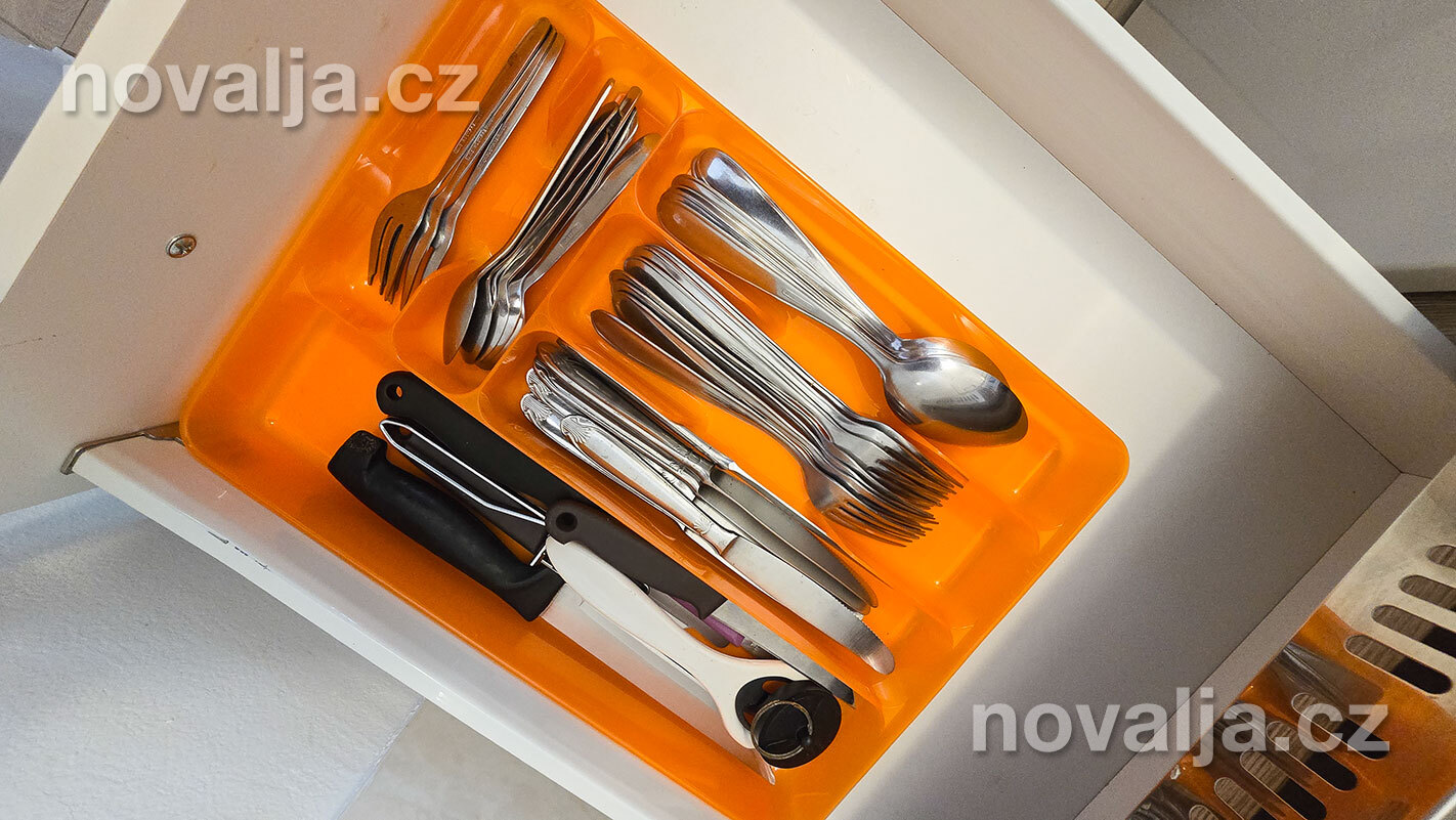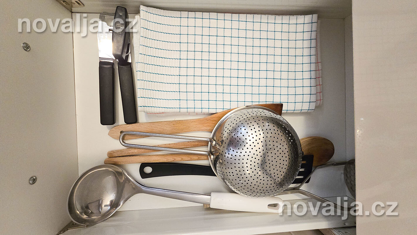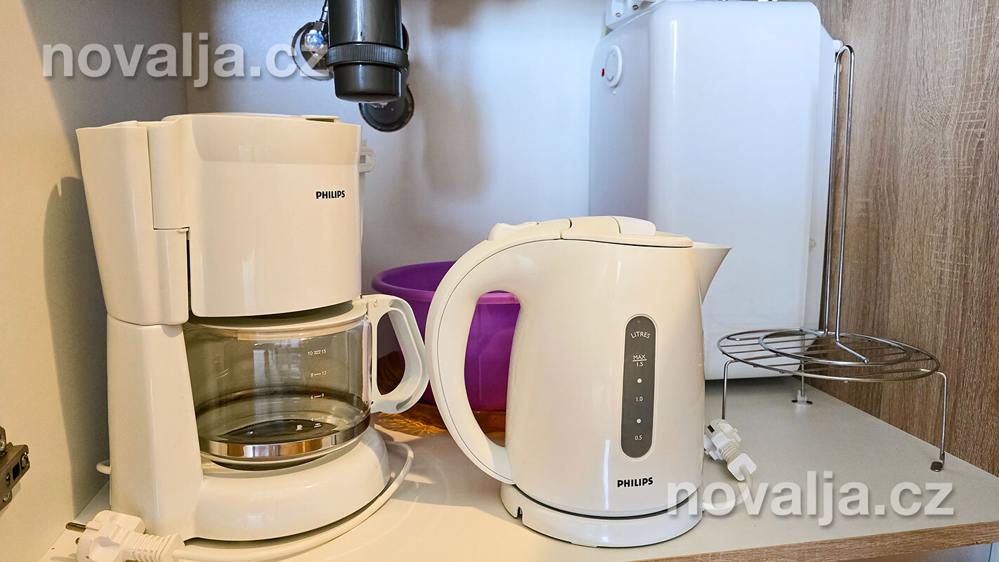 1 spálňa s tromi lôžkami, vybavená kuchynka (chladnička, mraznička, mikrovlnná rúra, varná kanvica, kávovar, toaster), LCD TV+SAT, sociálne zariadenie so sprchovacím kútom a WC, fén, terasa. Klimatizácia v kuchyni za príplatok 5 €/deň (hradí sa na mieste).