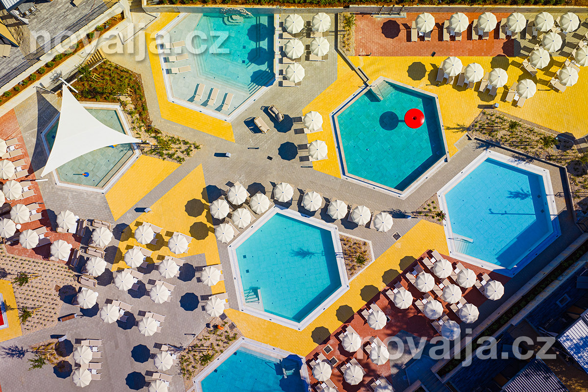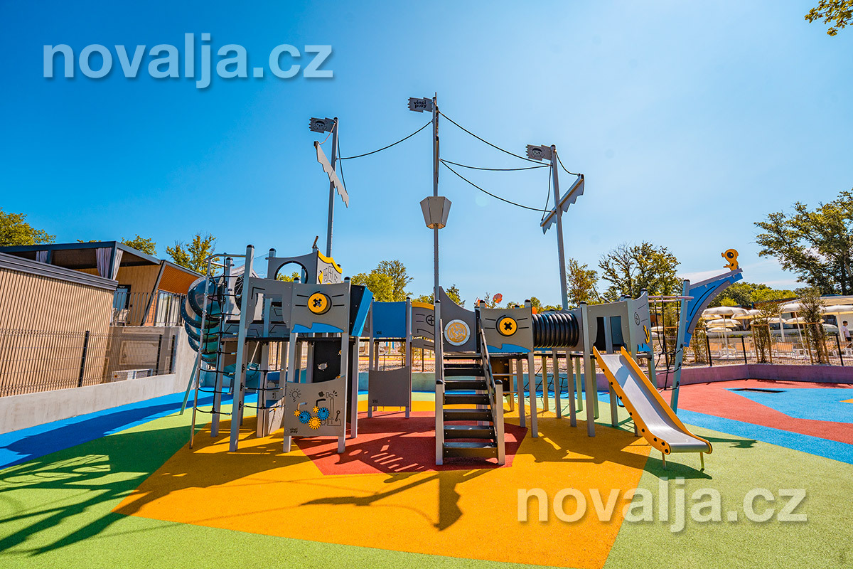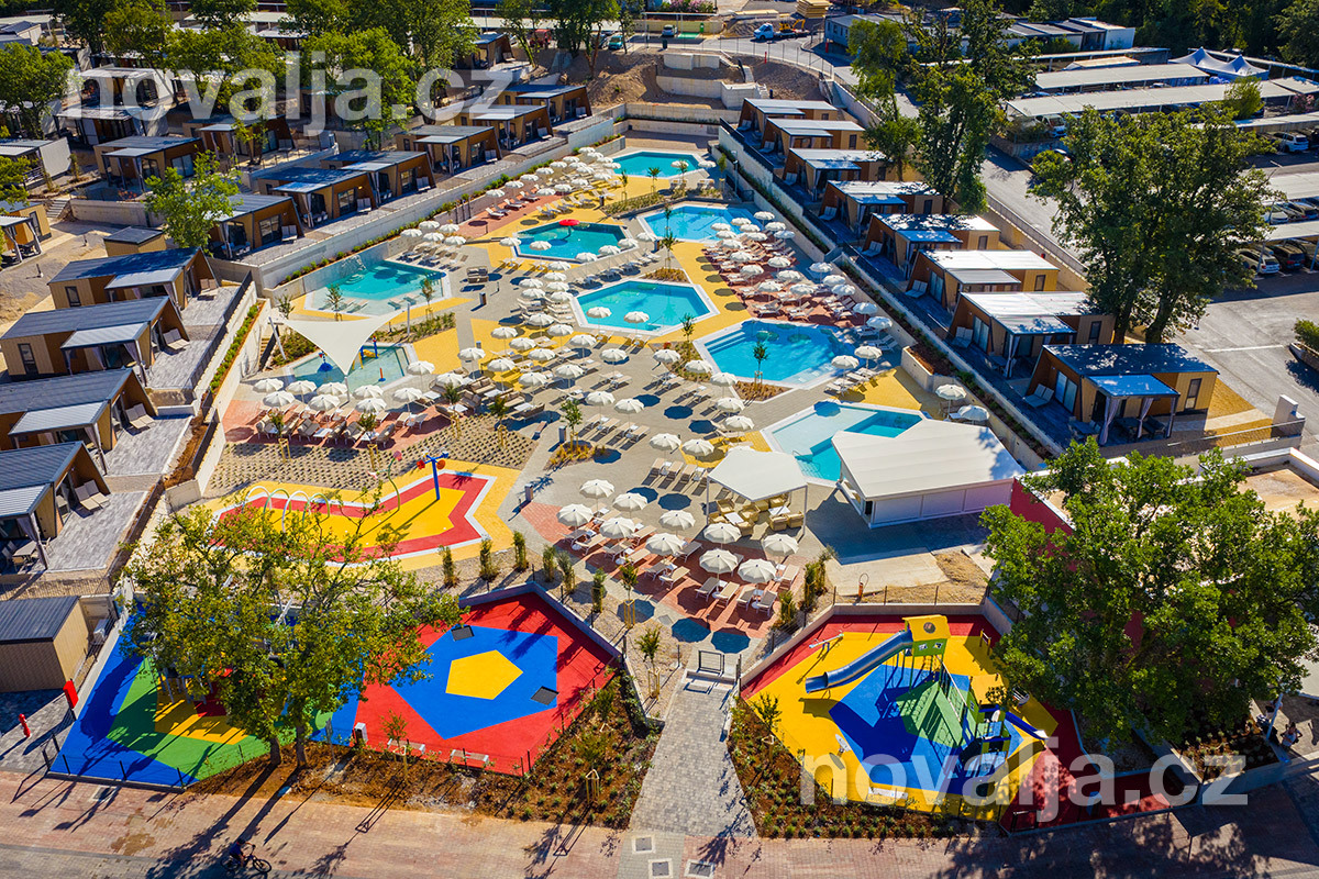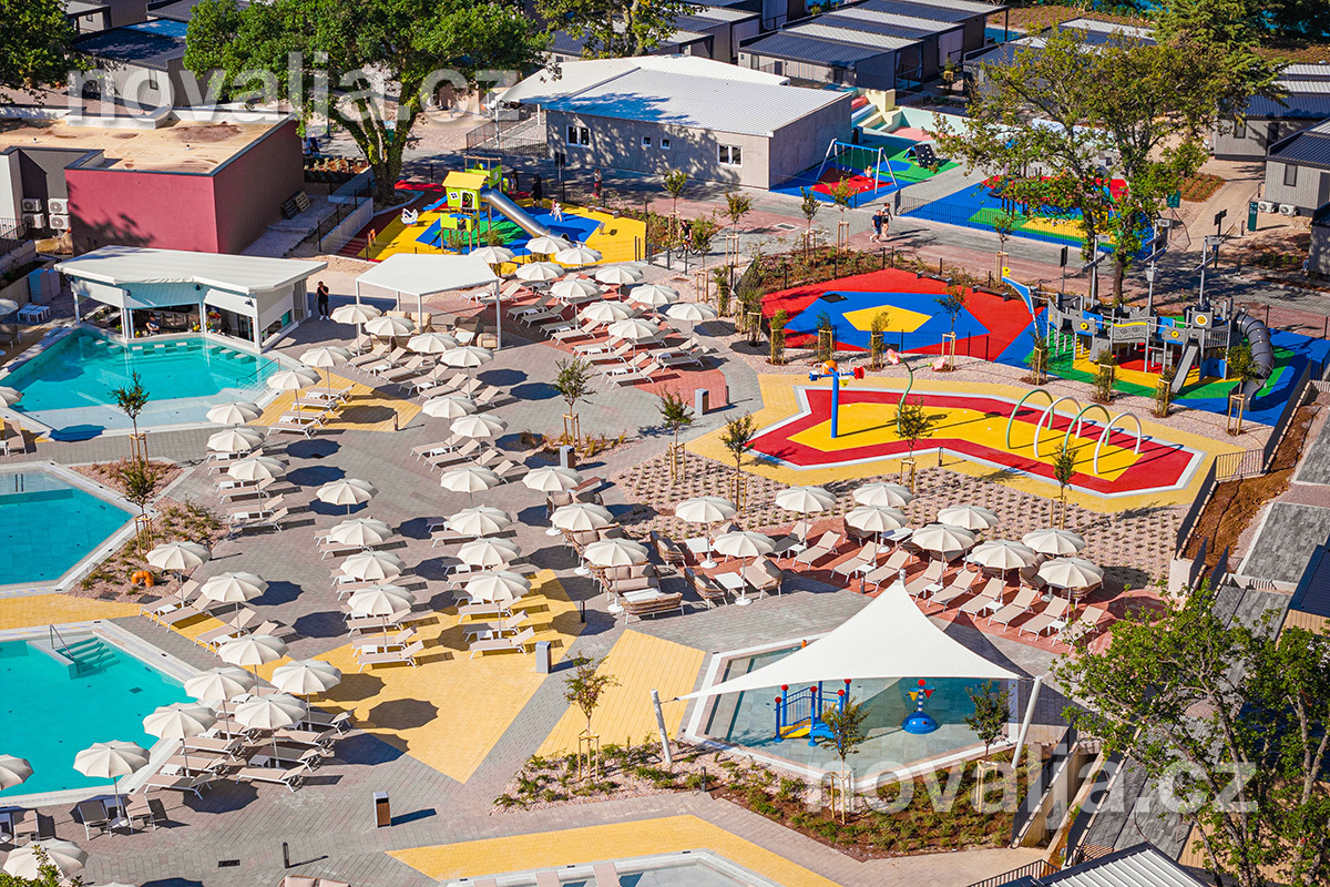 Zázemie a vybavenie rezortu aj kvalita ubytovania patria k tým najlepším v Chorvátsku. Srdcom rezortu je bazénový komplex s niekoľkými atraktívnymi bazénmi, detskými bazénikmi a množstvom vodných herných prvkov pre deti. V sezóne 2026 budú novo uvedené do prevádzky dva veľké tobogány. Nachádza sa tu aj niekoľko krásnych detských ihrísk. O zábavu sa postará pestrá ponuka animačných programov.