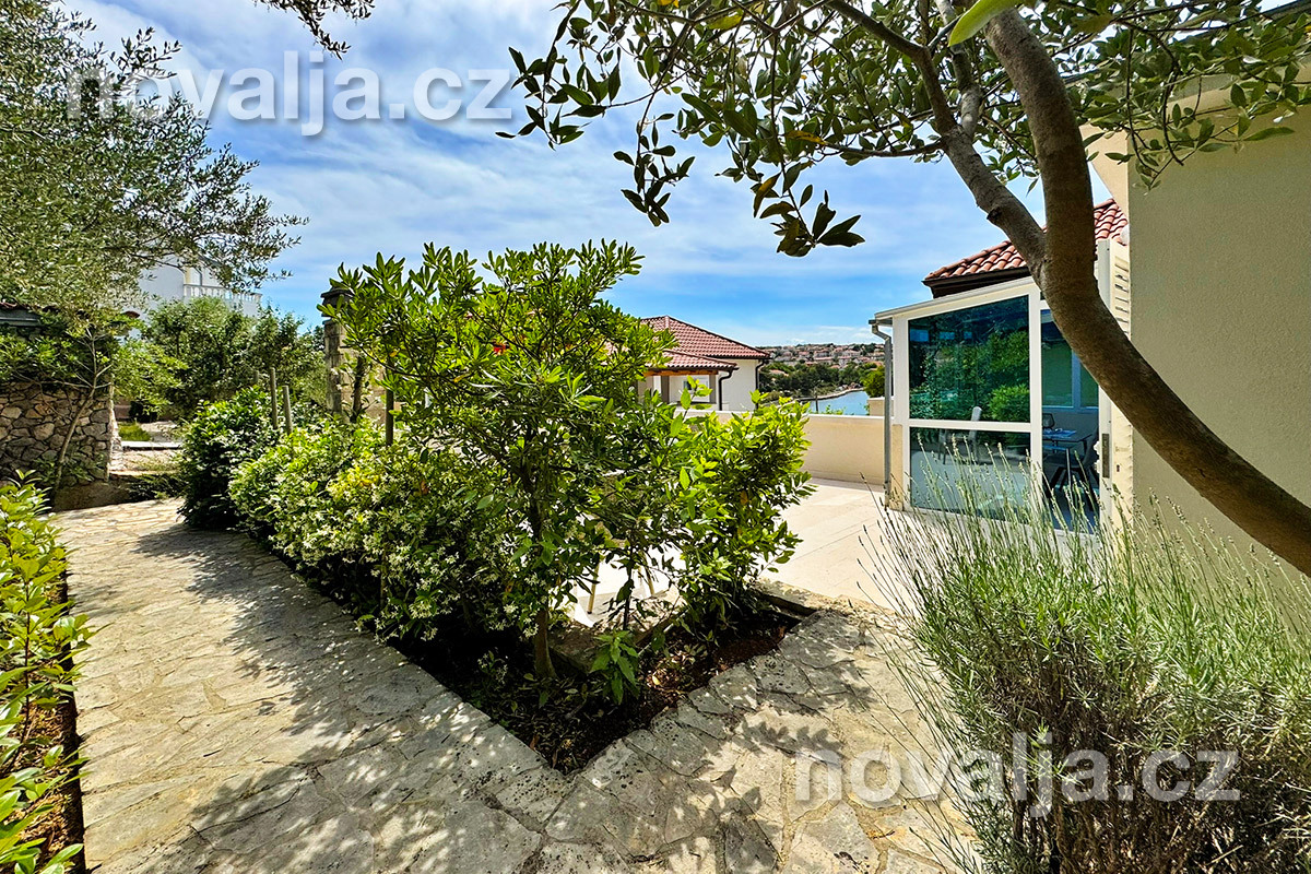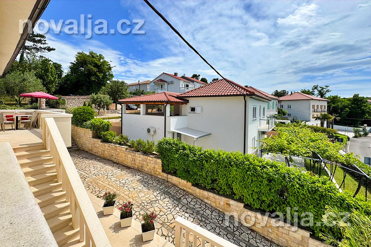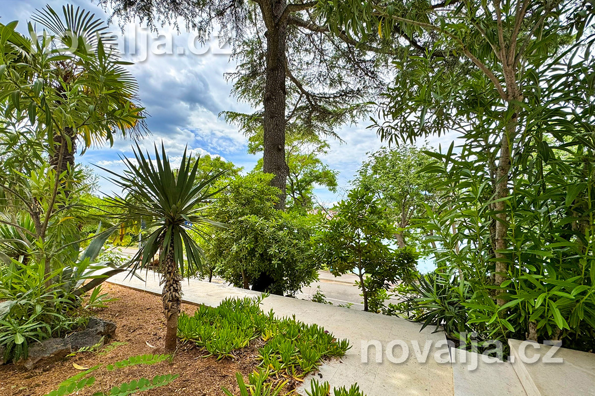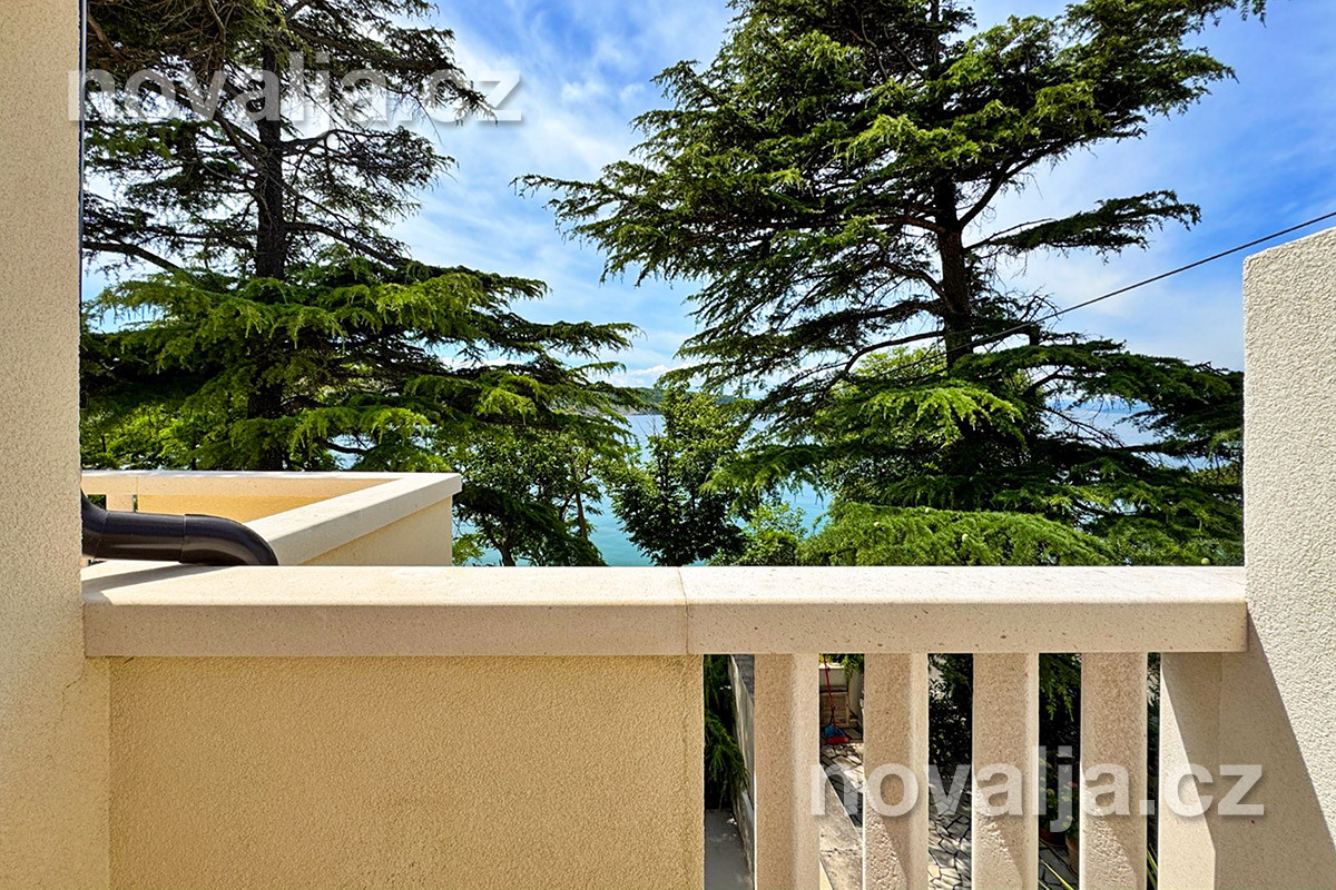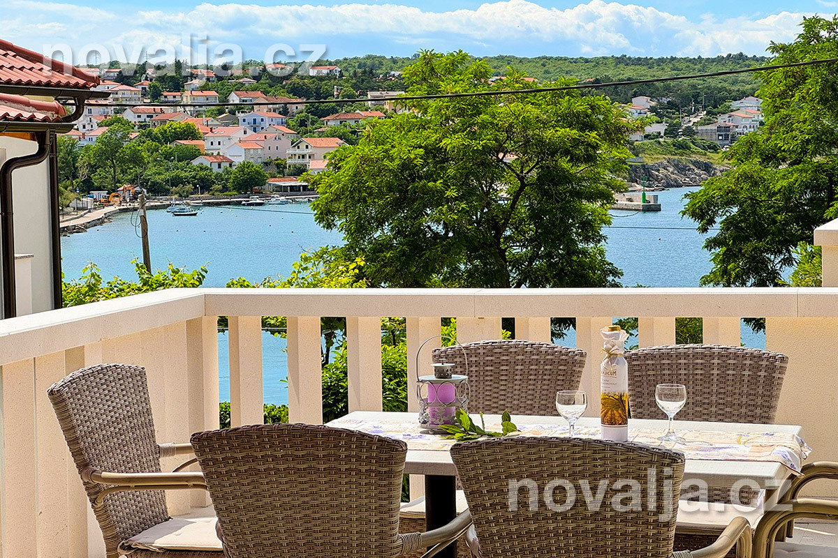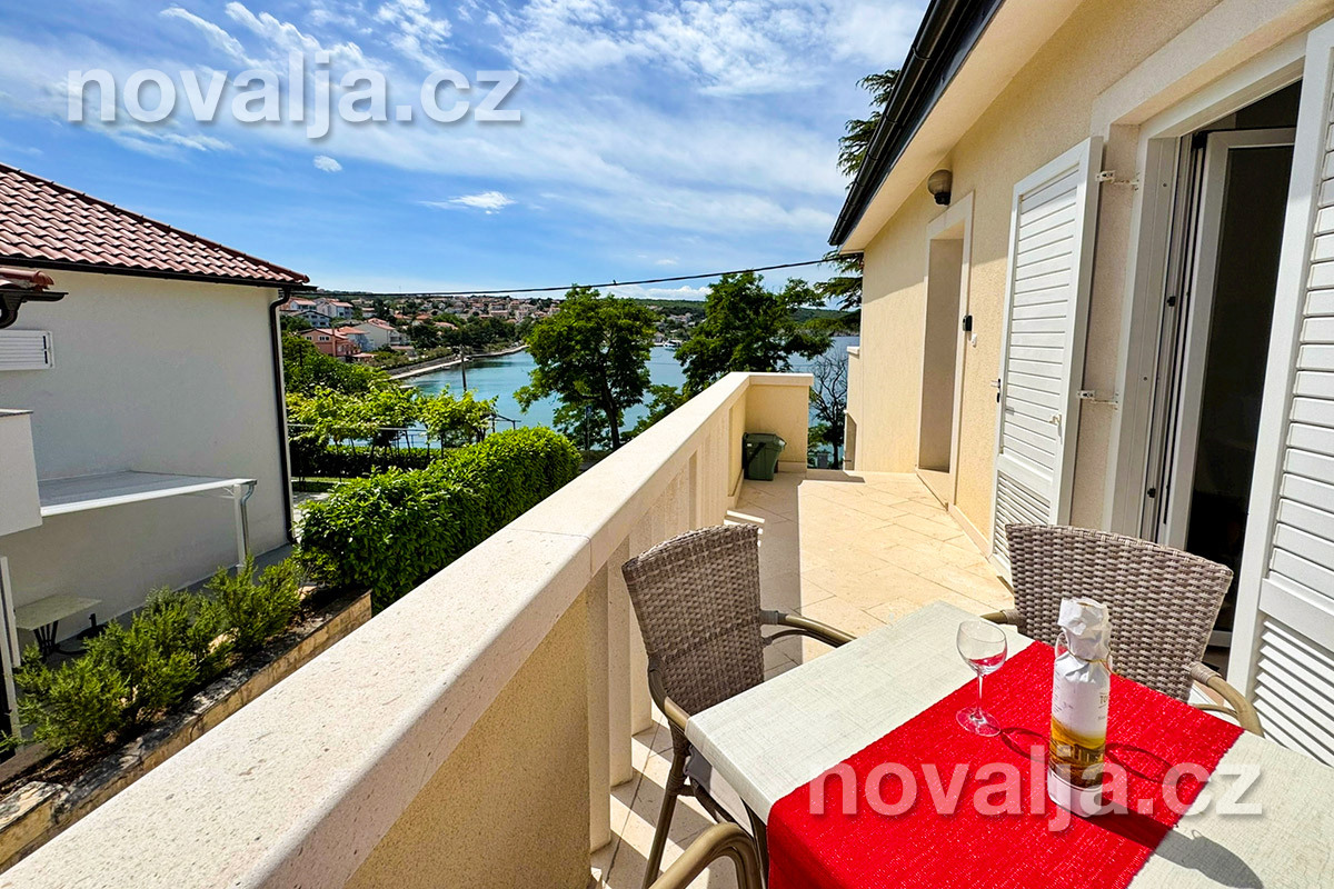 2 spálne s dvoma lôžkami - v jednej spálni manželské lôžko 200 x 180 cm, v druhej spálni dve samostatné lôžka, vybavená kuchyňa (sklokeramická varná doska, chladnička, mraznička, umývačka, rúra, varná kanvica, kávovar) s rozkladacím gaučom kútom a WC, fén, veranda so vstupom na terasu s čiastočným výhľadom na more (cez zeleň). Klimatizácia v kuchyni (v cene).