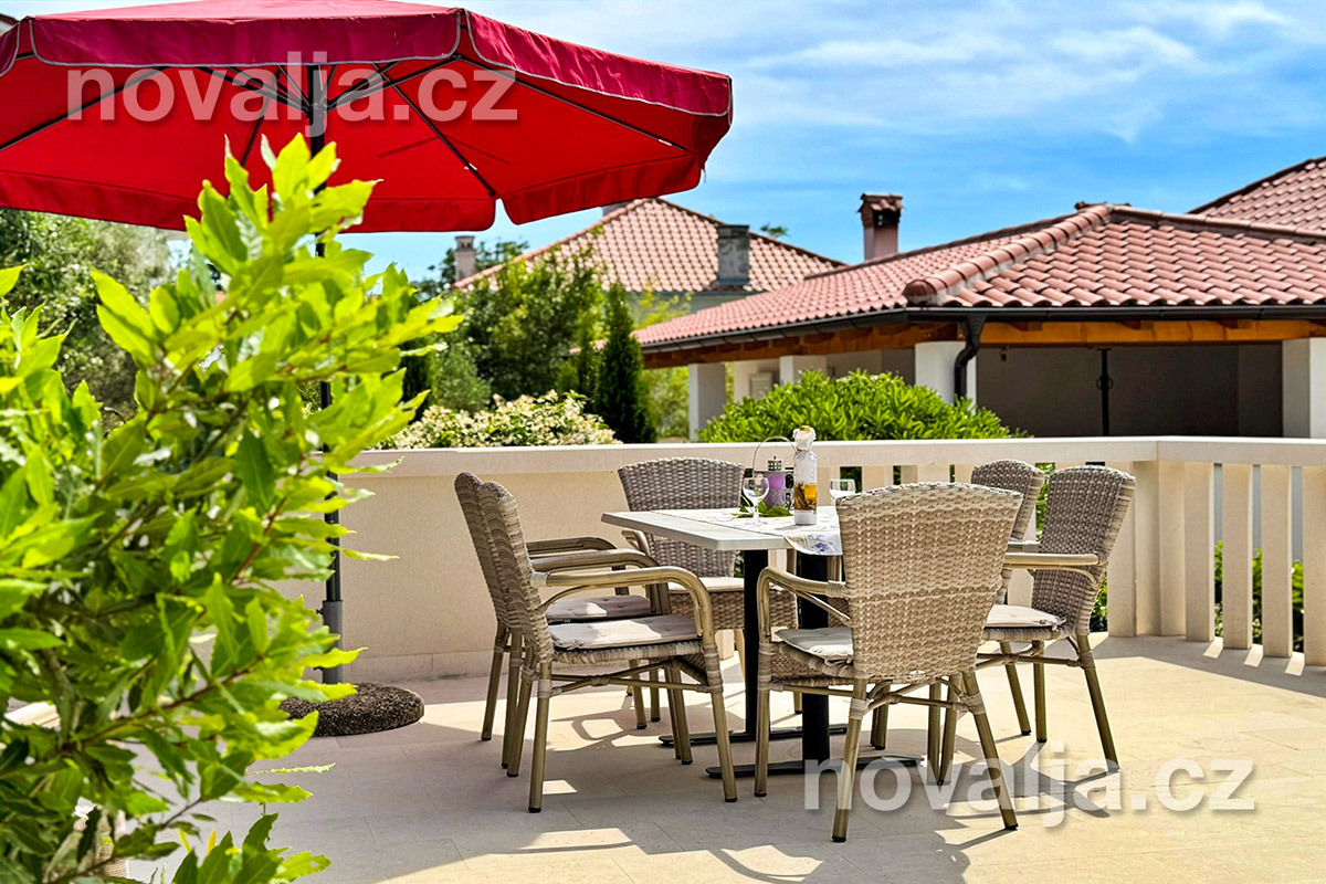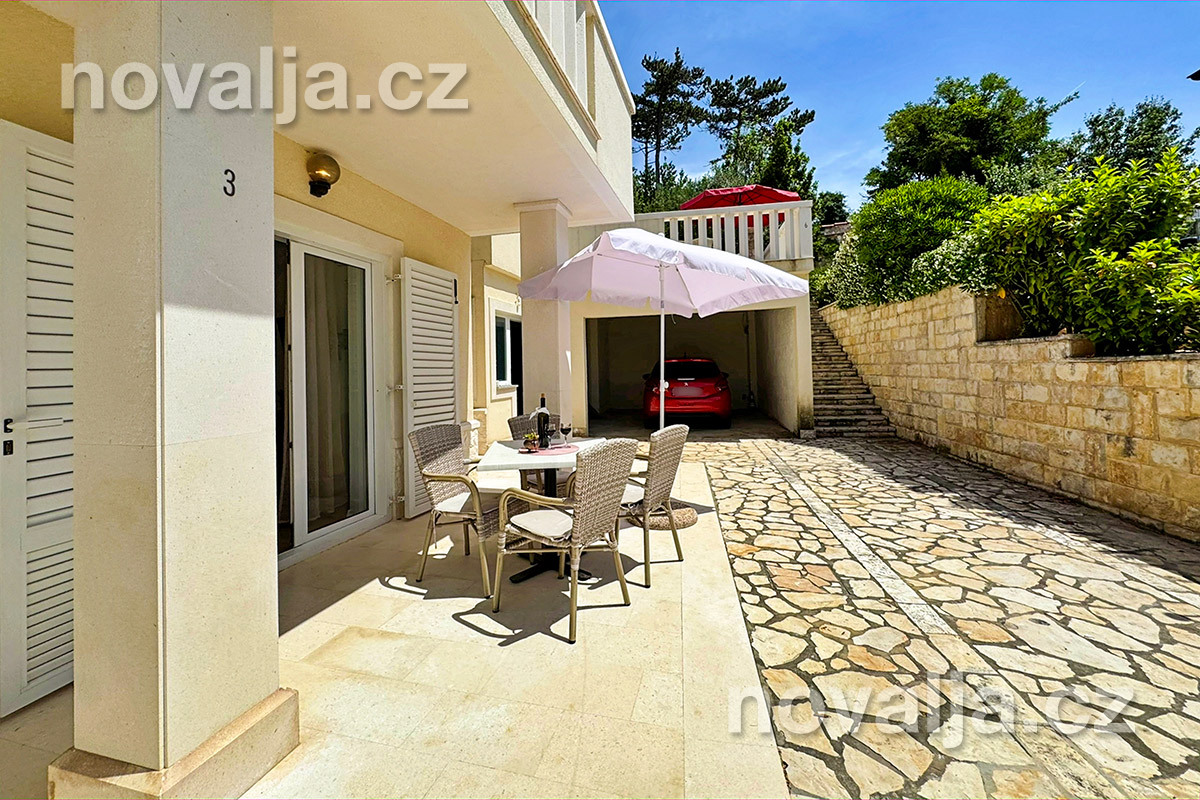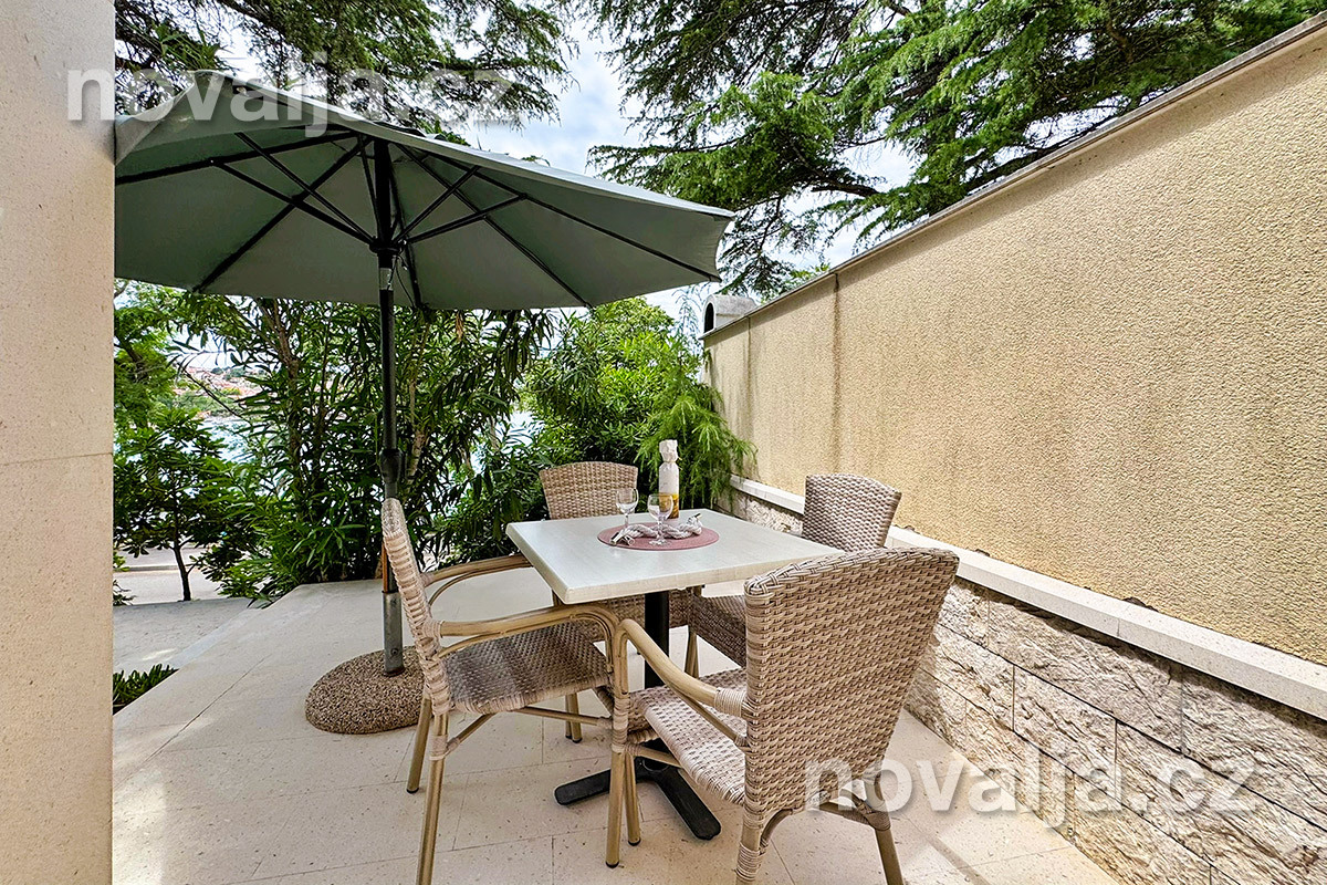 Apartmán A1 má spoločnú terasu s apartmánom A2. Každý apartmán má na tejto spoločnej terase svoj vlastný záhradný nábytok.
