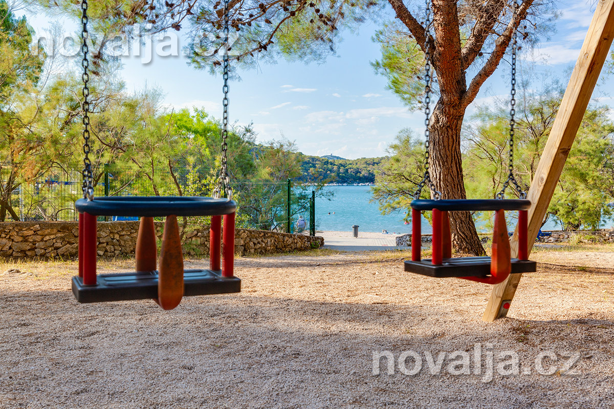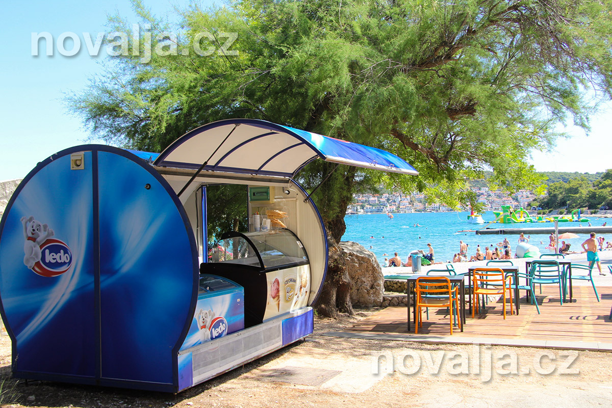 Pláž v zátoke je kamienková, s pozvoľným vstupom do mora. Ubytovať sa tu môžete v apartmánoch či mobilhomoch. Všetky ubytovacie jednotky sú od pláže vzdialené 20–300 m.