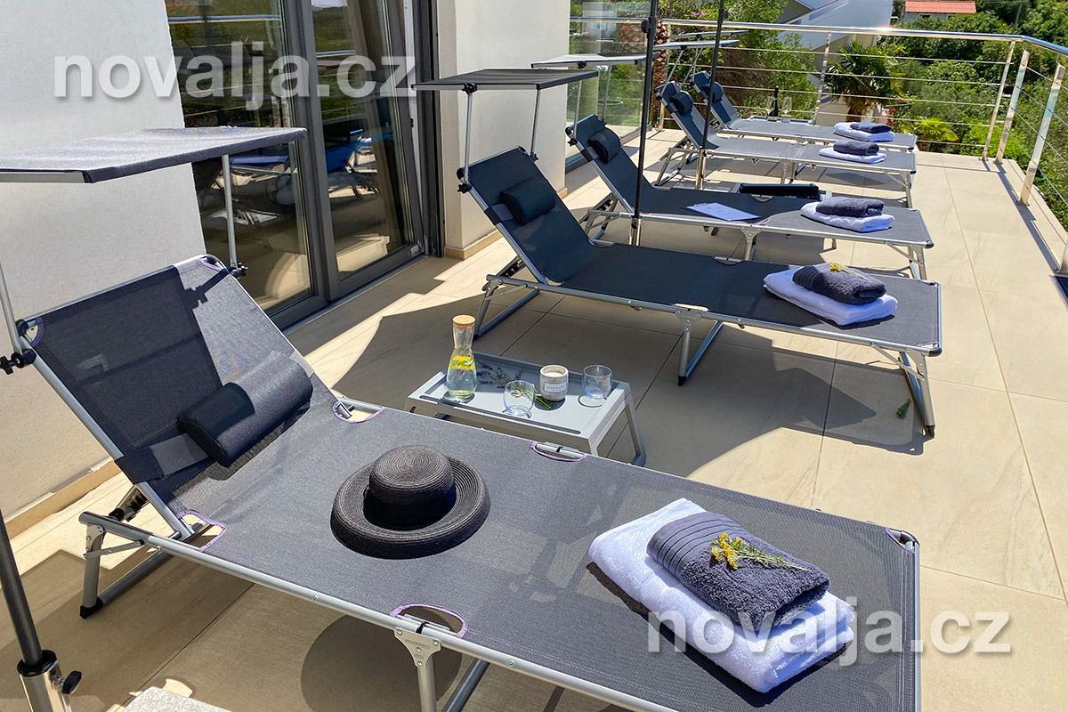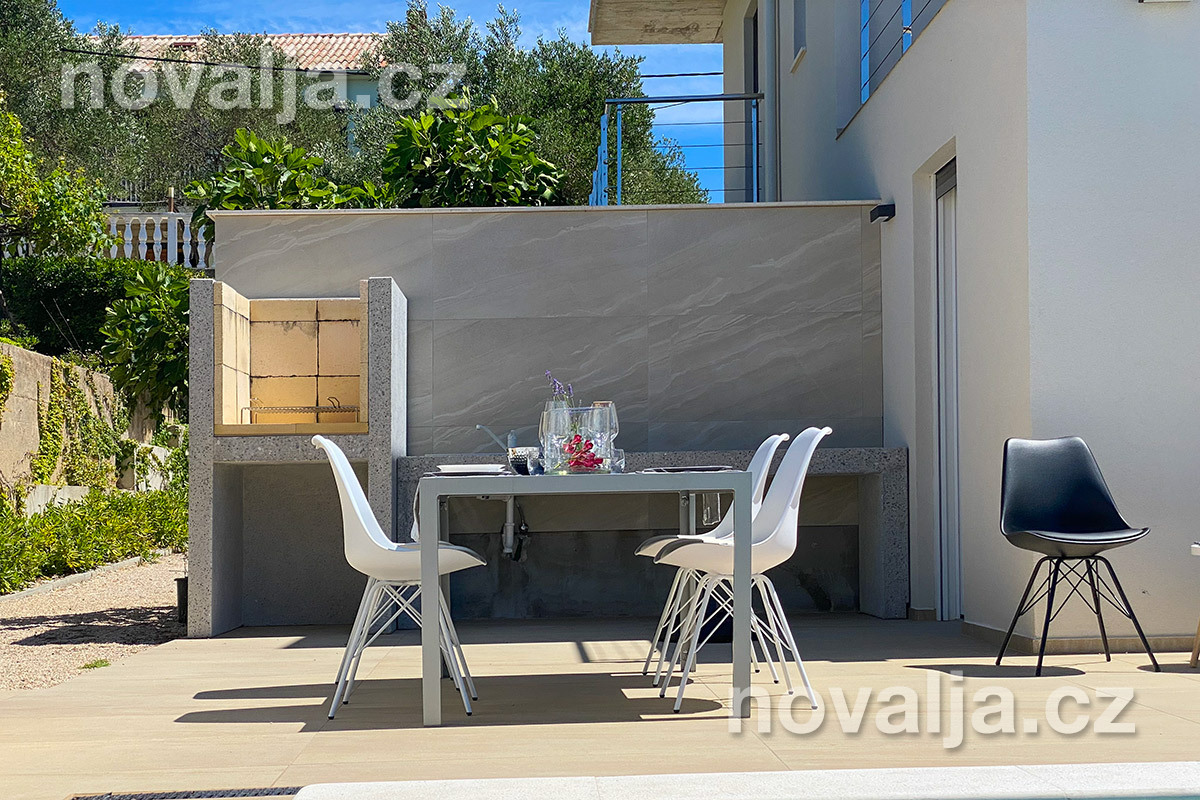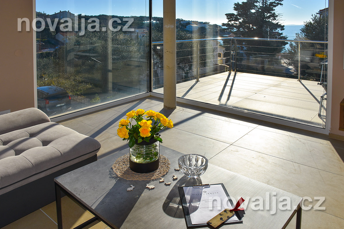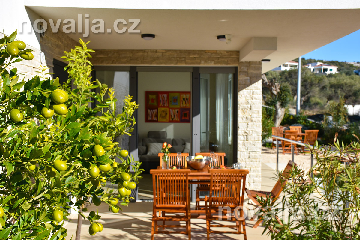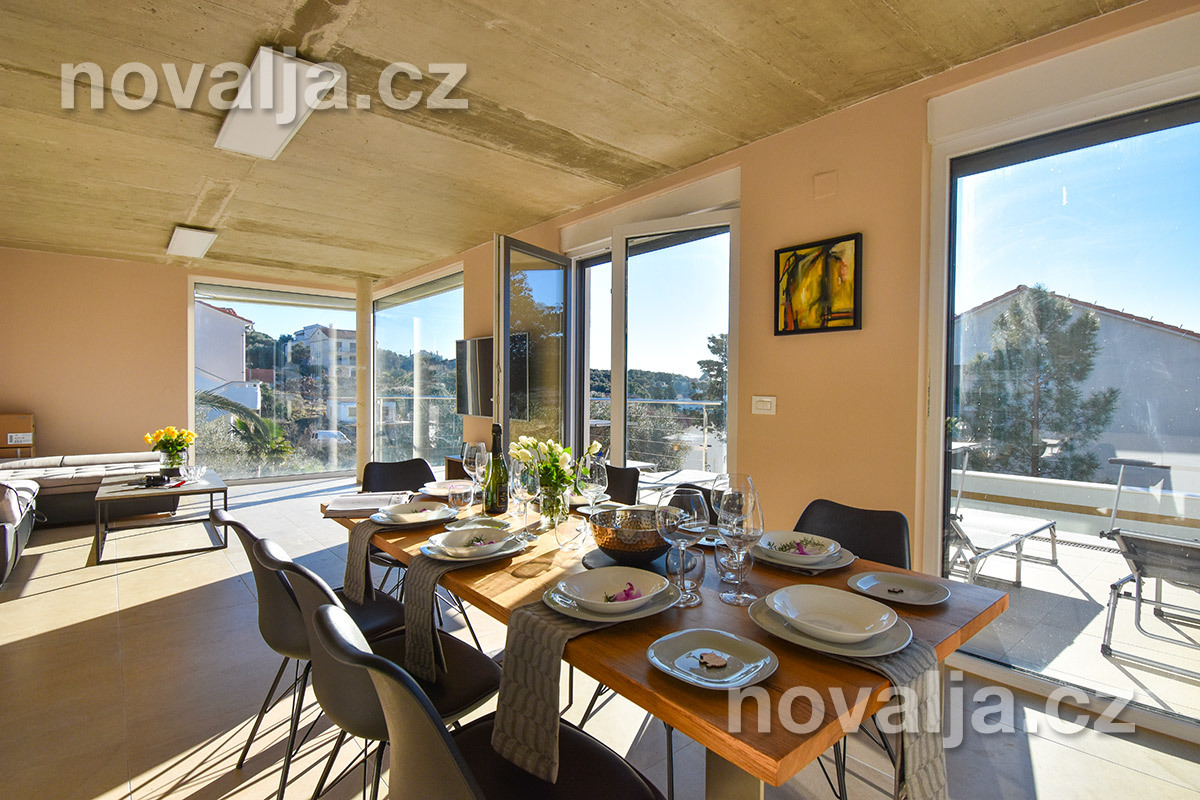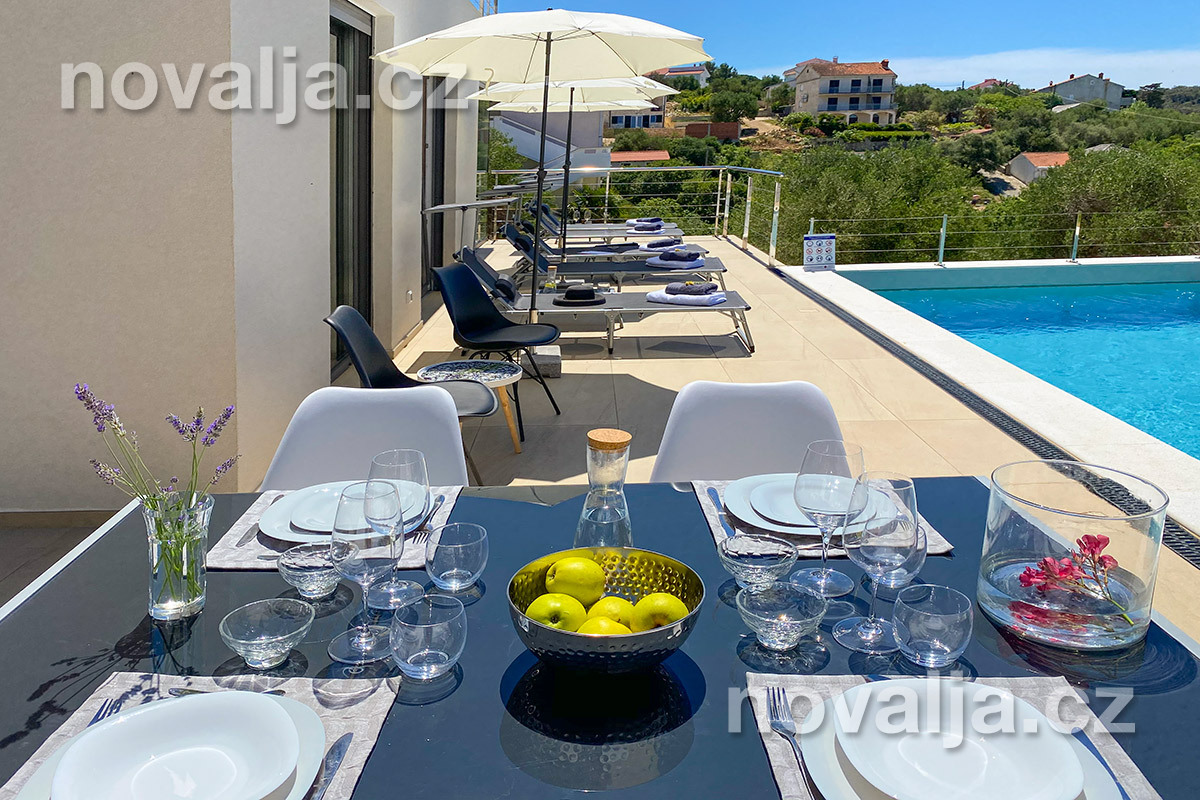 Vila vás zaujme hneď na prvý pohľad – je svetlá, moderne zariadená, s krásnym vyhrievaným bazénom a priestrannými terasami s lehátkami a výhľadom na more. K dispozícii je aj sauna a pri bazéne letná kuchyňa a gril. Krásna kamienková pláž sa nachádza len 80 m od domu.