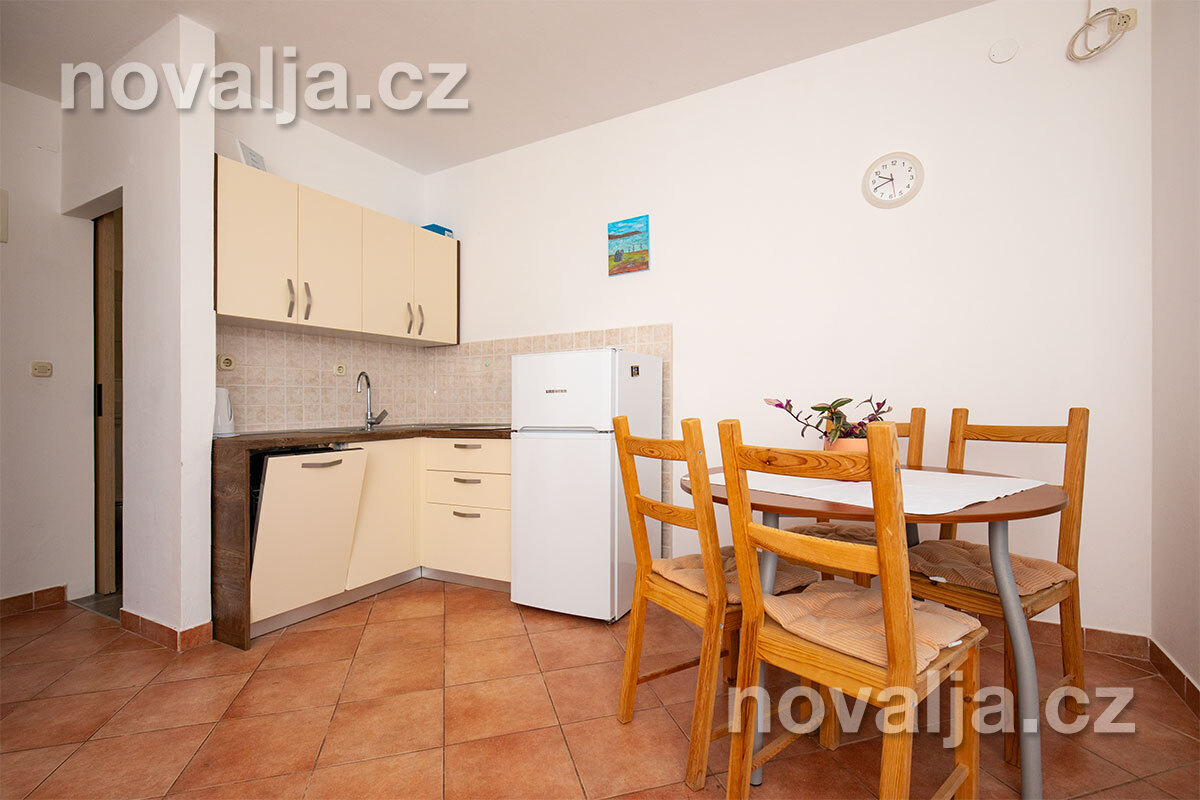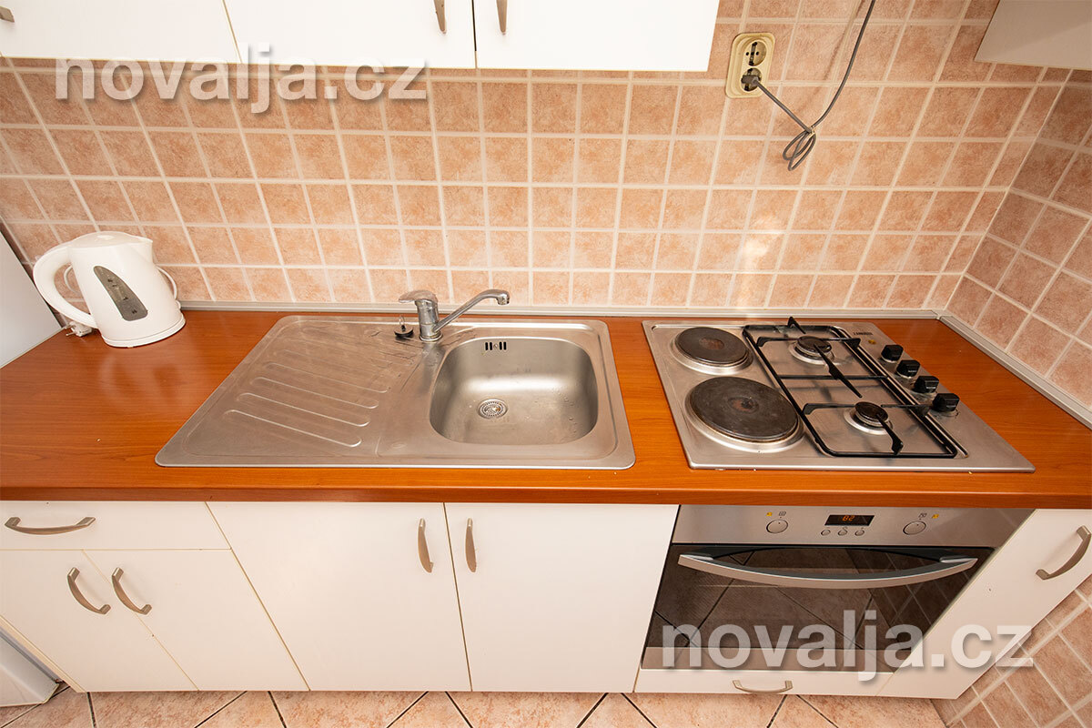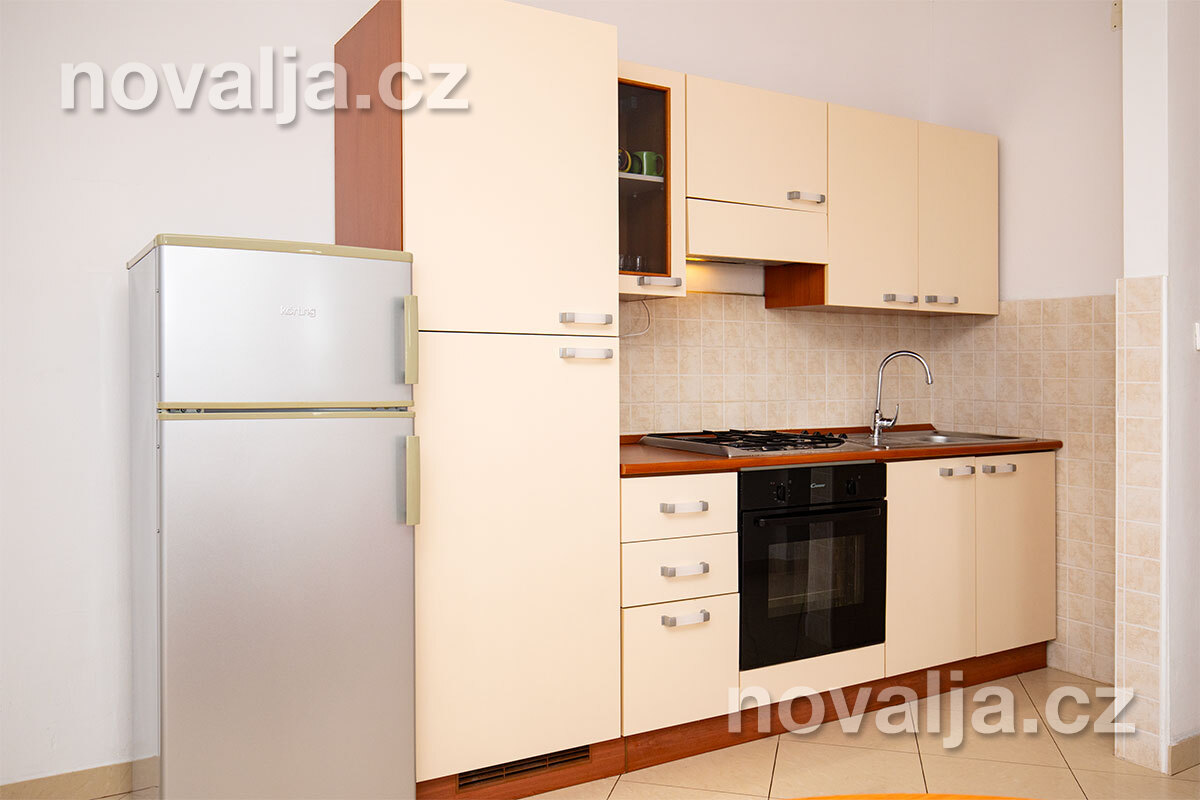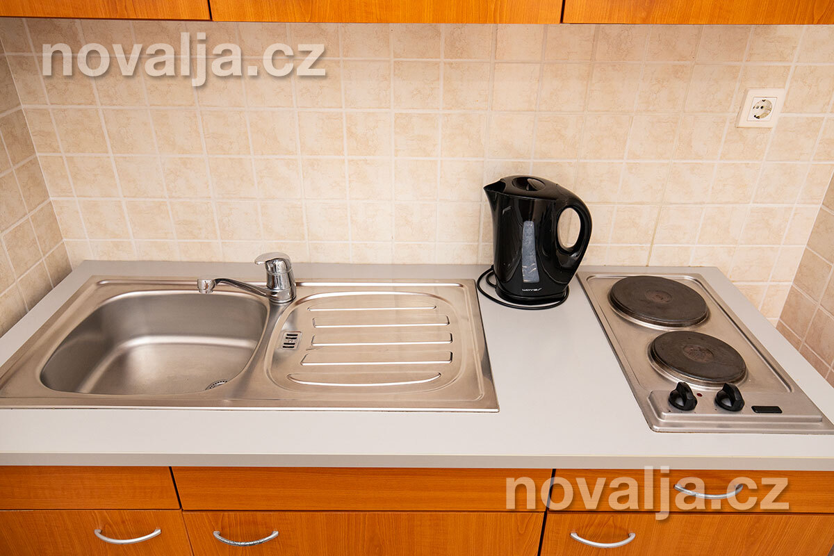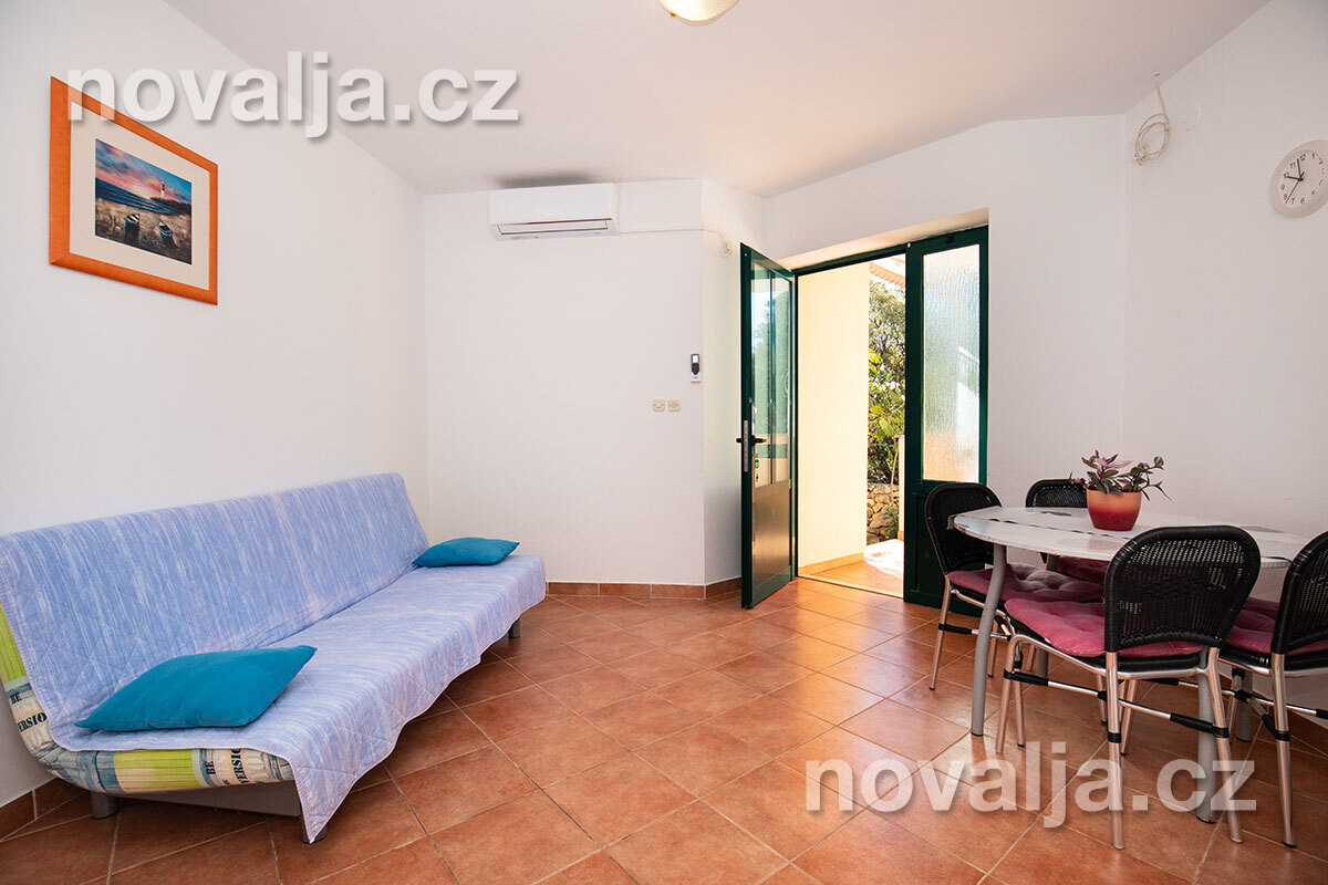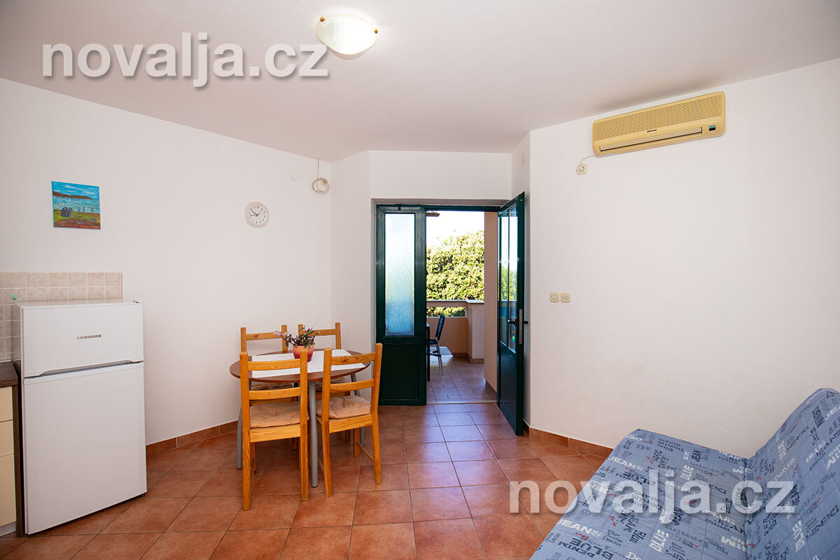 1 spálňa s dvoma lôžkami, vybavená kuchyňa (chladnička, mraznička, rúra, varná kanvica) s ďalším lôžkom a rozkladacím gaučom (200 x 164 cm) pre 1–2 osoby (buď 2 deti do 12 rokov, alebo len 1 osoba staršia ako 12 rokov), sociálne zariadenie so sprchovým . Klimatizácia v kuchyni (v cene).