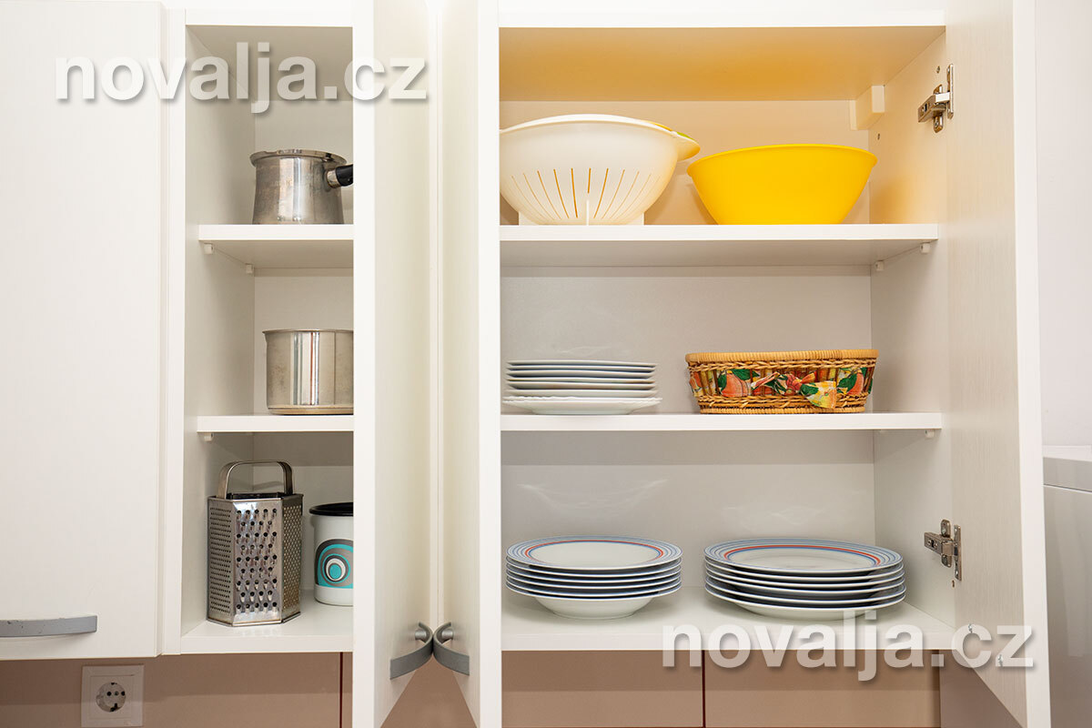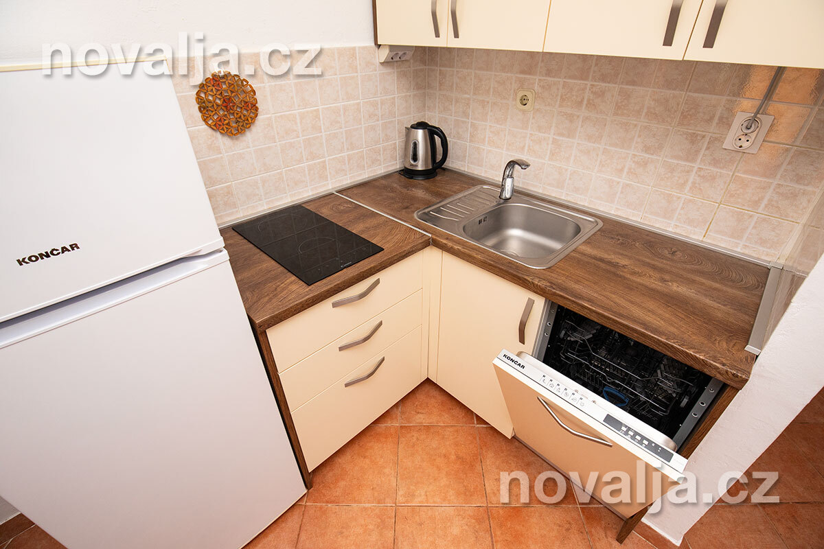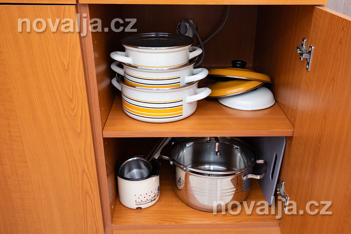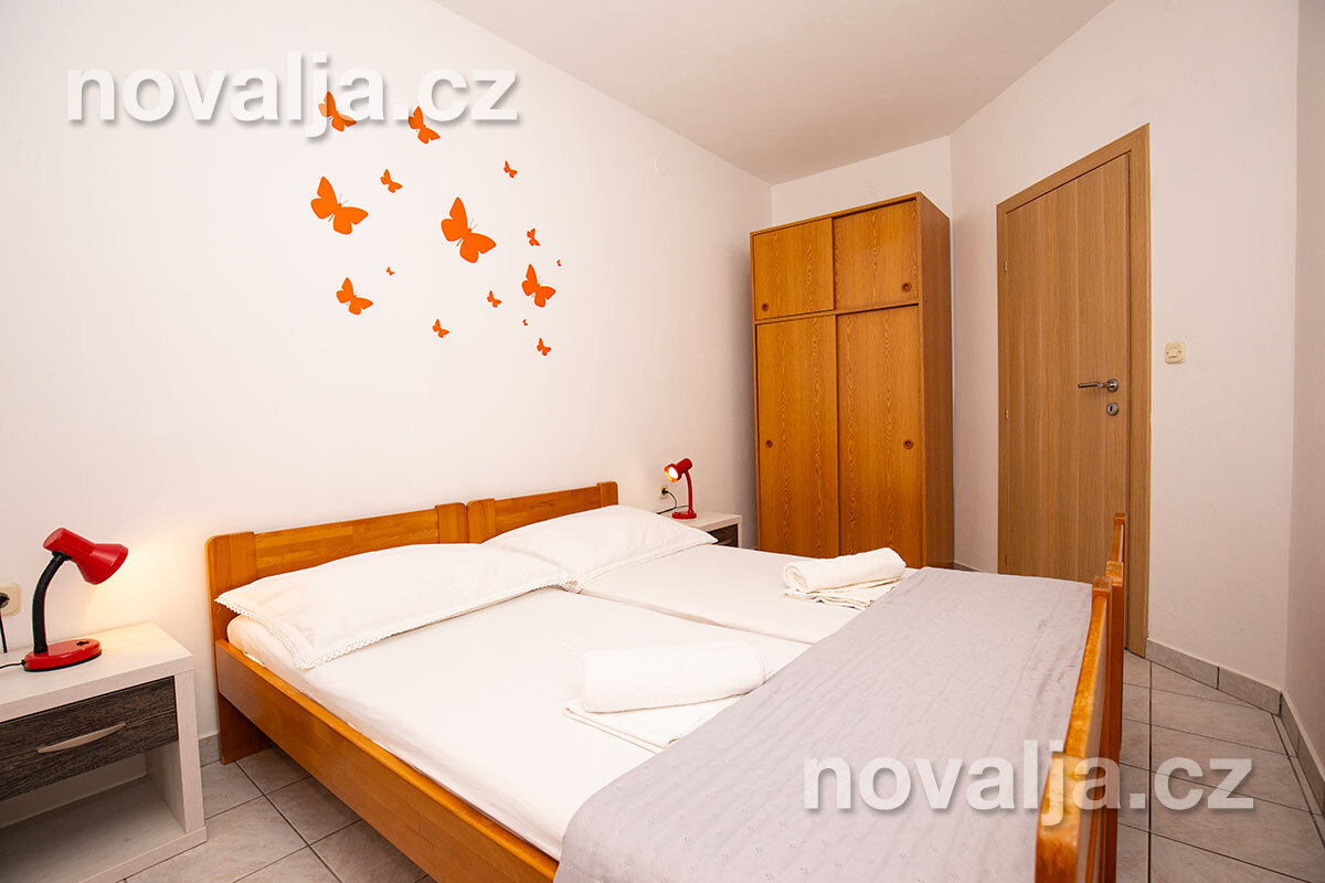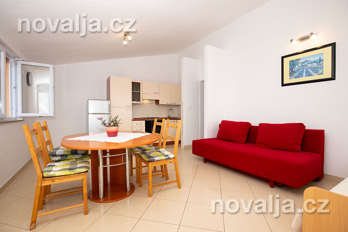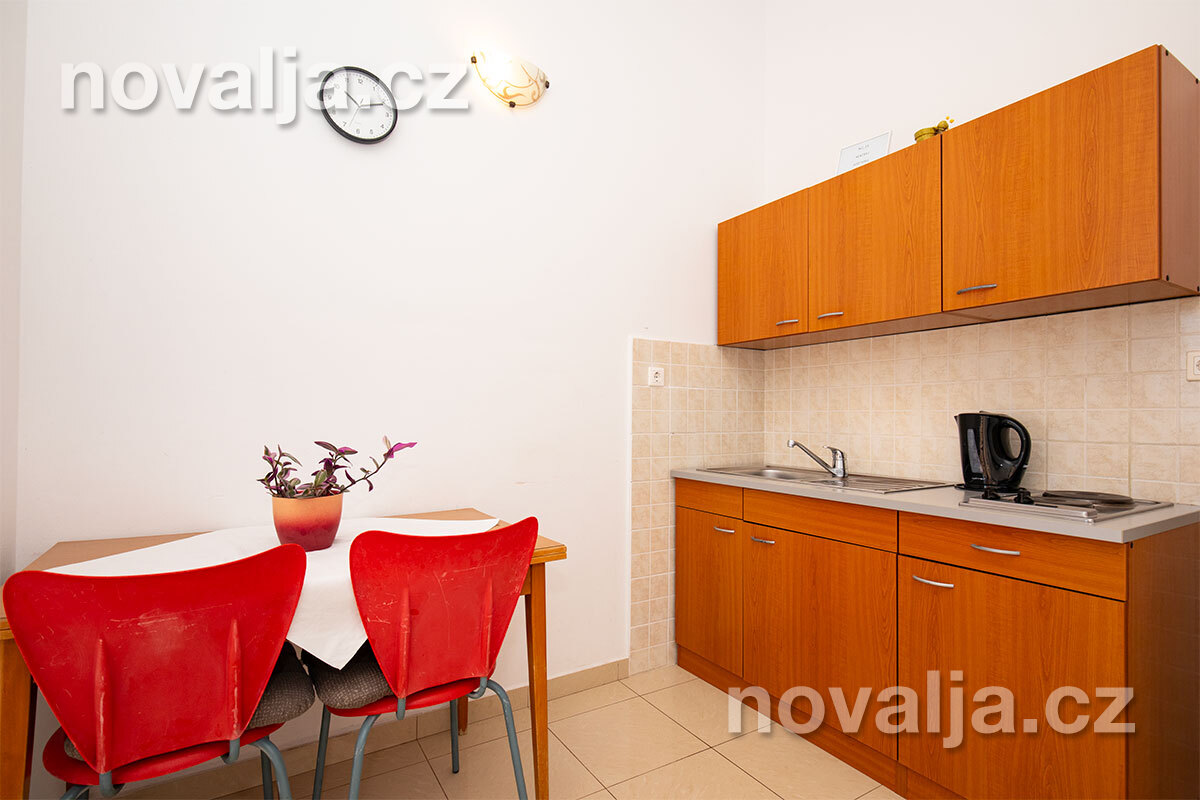 1 spálňa s dvoma lôžkami, vybavená kuchyňa (chladnička, mraznička, rúra, varná kanvica) s ďalším lôžkom a rozkladacím gaučom (200 x 164 cm) pre 1–2 osoby (buď 2 deti do 12 rokov, alebo len 1 osoba staršia ako 12 rokov), sociálne zariadenie so sprchovým . Klimatizácia v kuchyni (v cene).