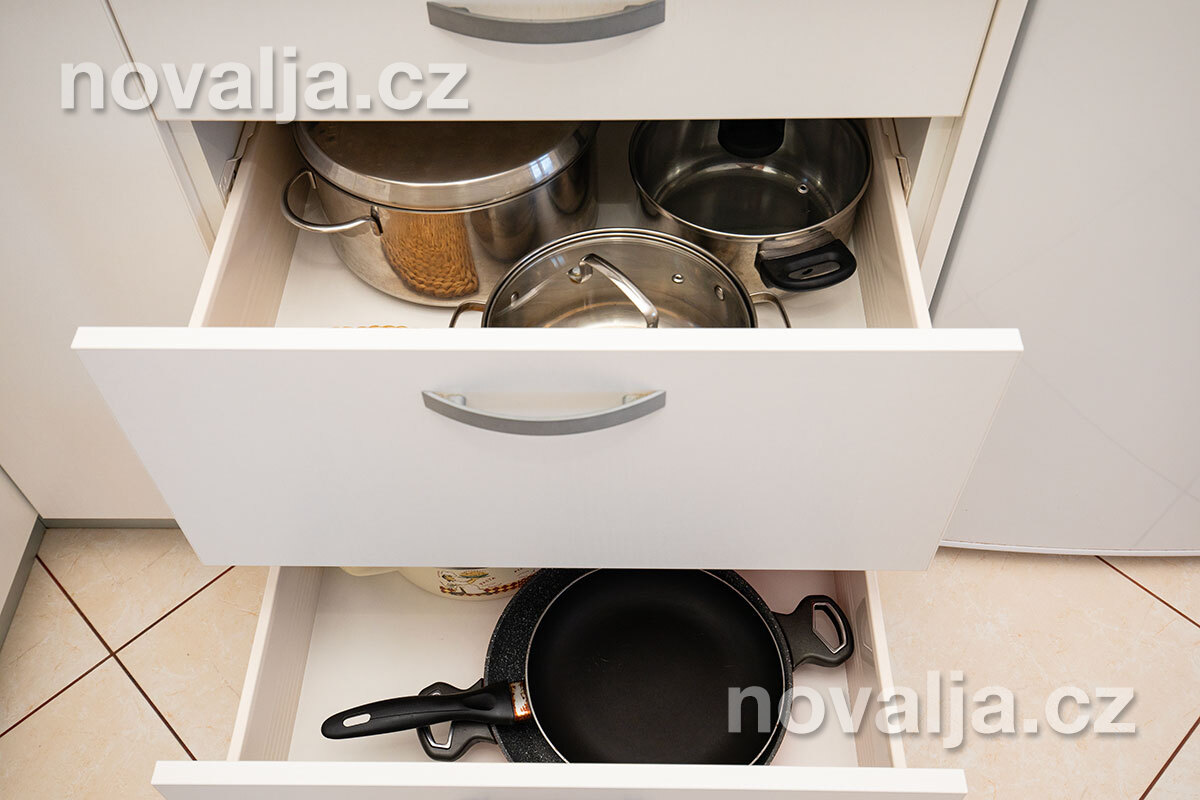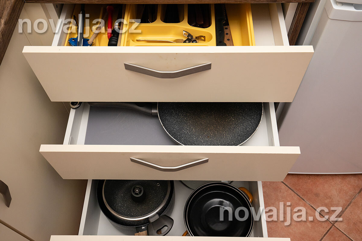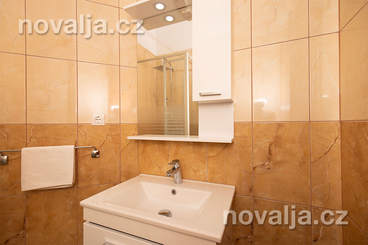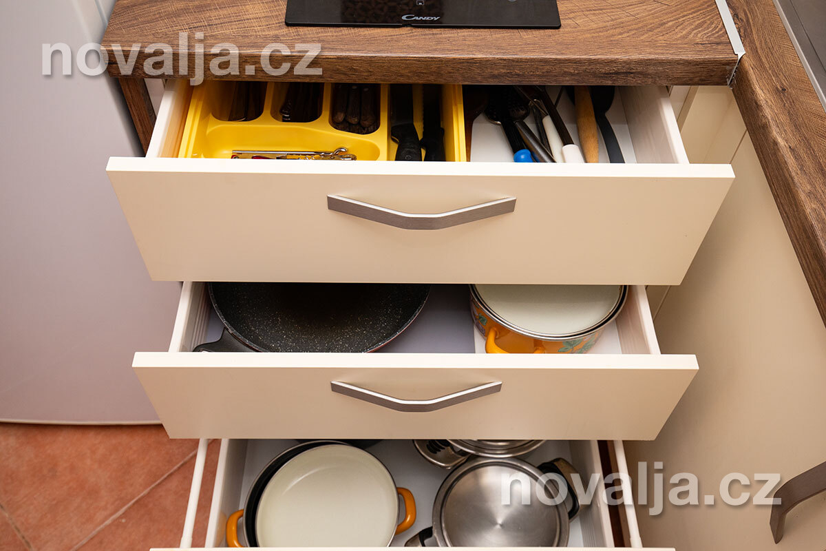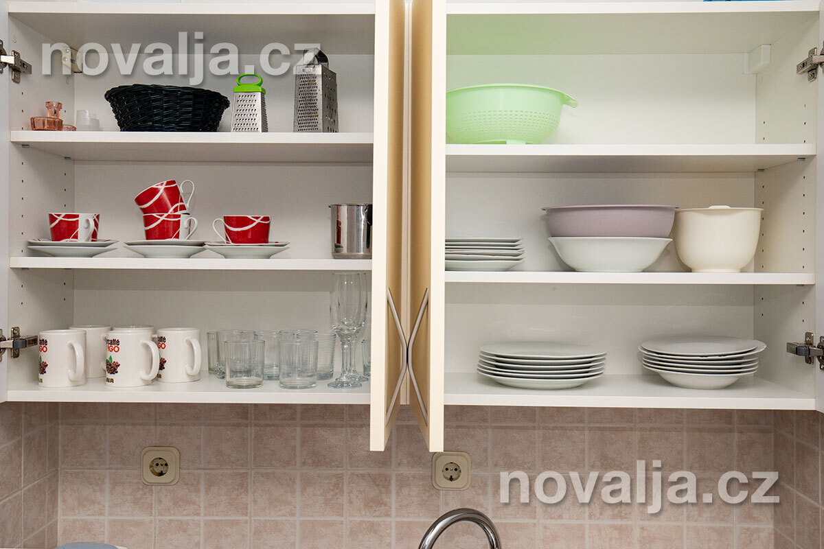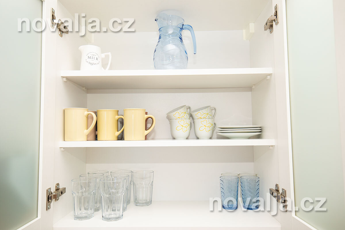 1 spálňa s dvoma lôžkami, vybavená kuchyňa (chladnička, mraznička, rúra, varná kanvica) s ďalším lôžkom a rozkladacím gaučom (200 x 164 cm) pre 1–2 osoby (buď 2 deti do 12 rokov, alebo len 1 osoba staršia ako 12 rokov), sociálne zariadenie so sprchovým . Klimatizácia v kuchyni (v cene).