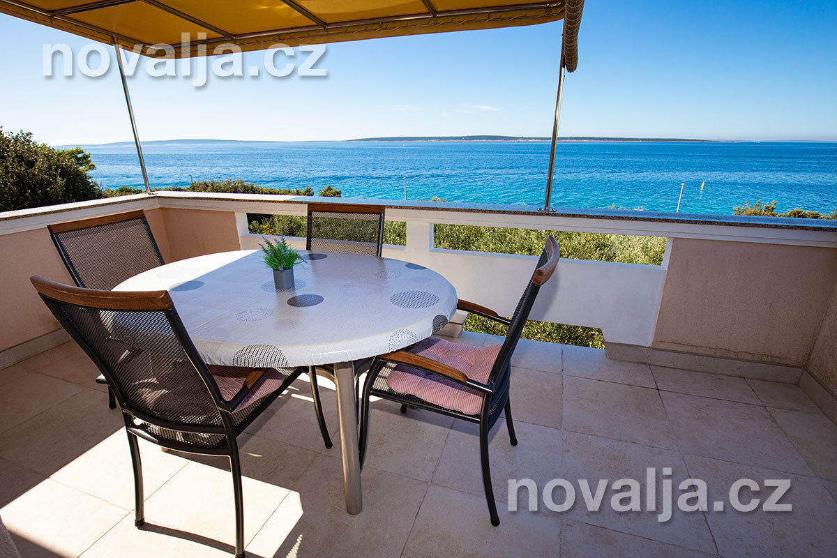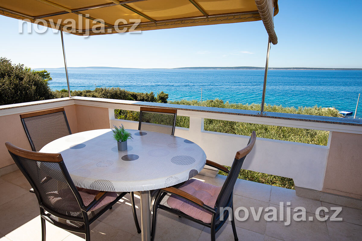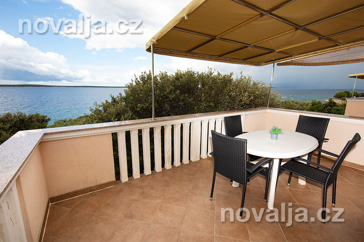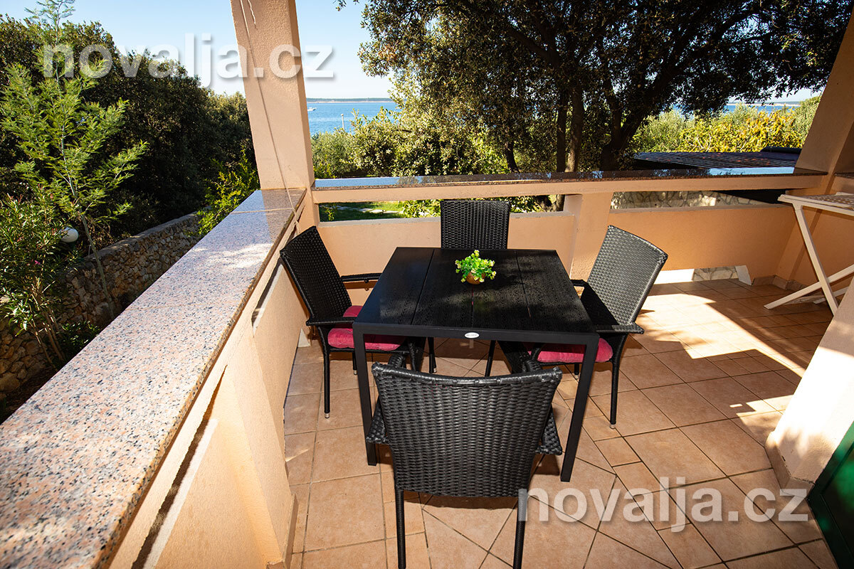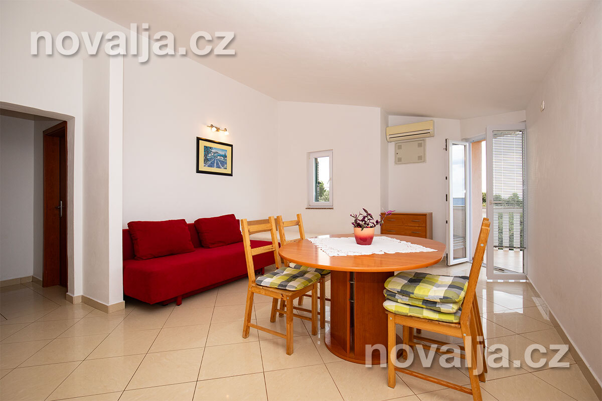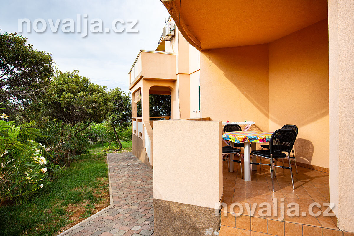 2 spálne s dvoma lôžkami, vybavená kuchyňa (chladnička, mraznička, rúra, umývačka, varná kanvica) s rozkladacím gaučom (195 x 120 cm) pre 1 osobu, sociálne zariadenie so sprchovacím kútom a WC, terasa s čiastočným výhľadom na more. Klimatizácia v kuchyni (v cene).