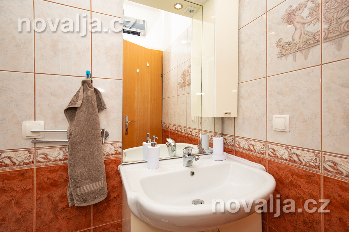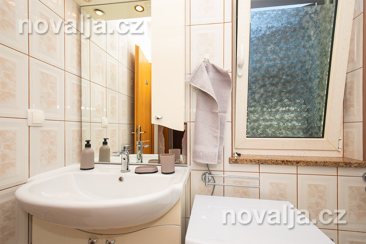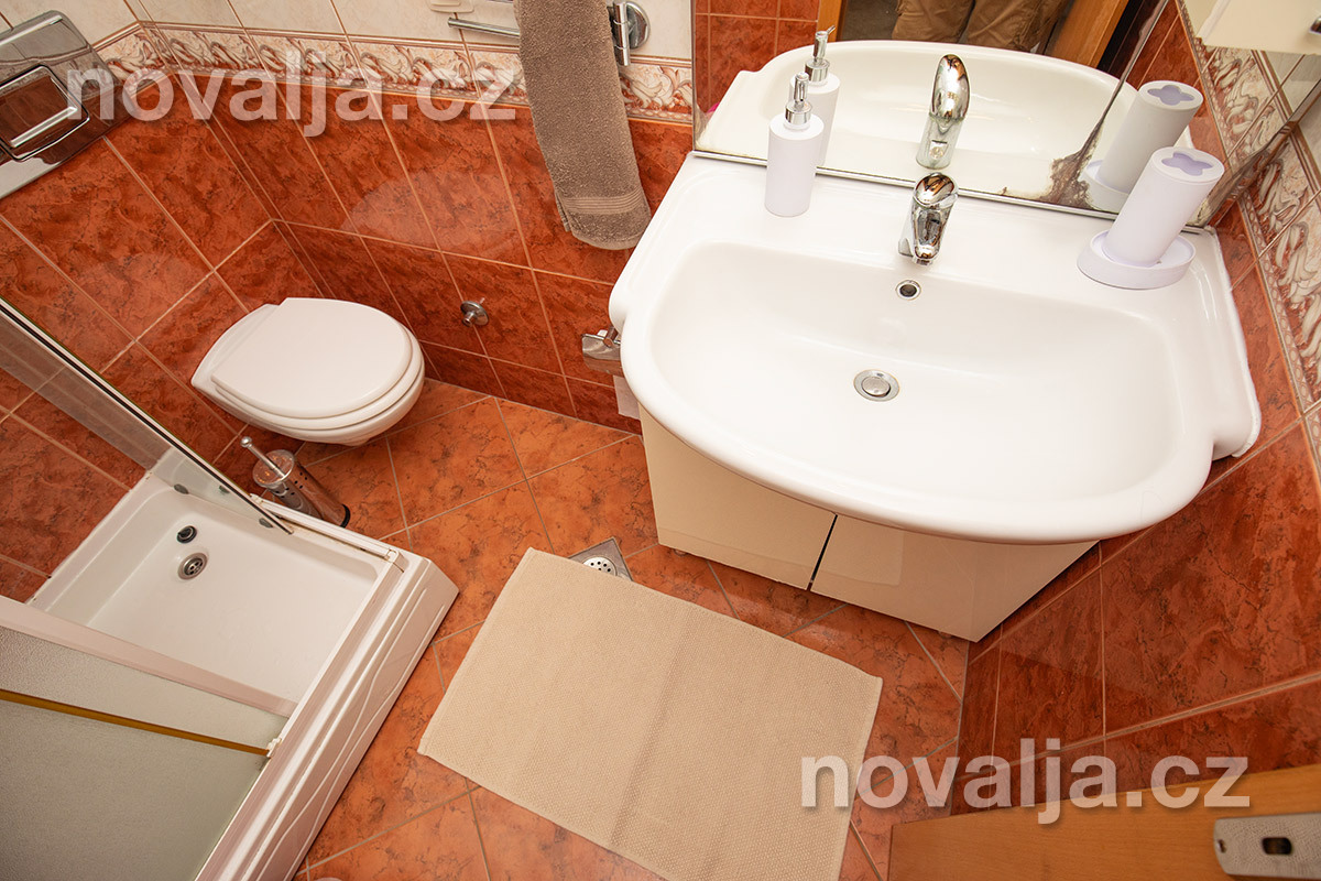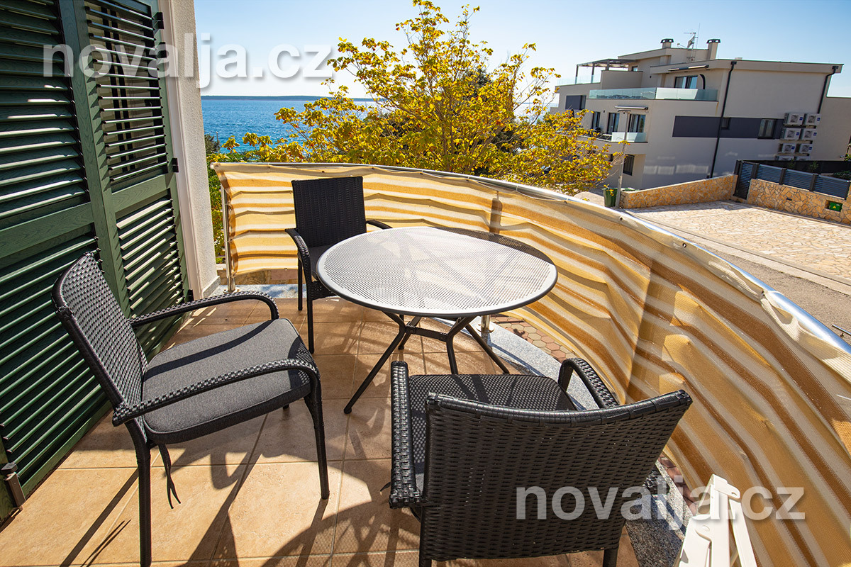 1 spálňa s dvoma lôžkami, vybavená kuchyňa (chladnička, mraznička, mikrovlnná rúra, varná kanvica, toaster, kávovar) s rozkladacím gaučom pre 1 osobu, LCD TV+SAT, socilanie zariadenia so sprchovacím kútom a WC, práčka, balkón s čiastočným výhľadom na more, prenosný Klimatizácia v kuchyni (v cene).