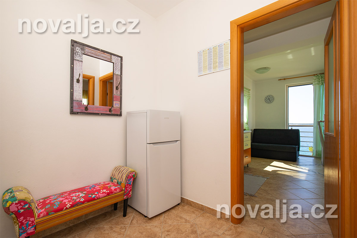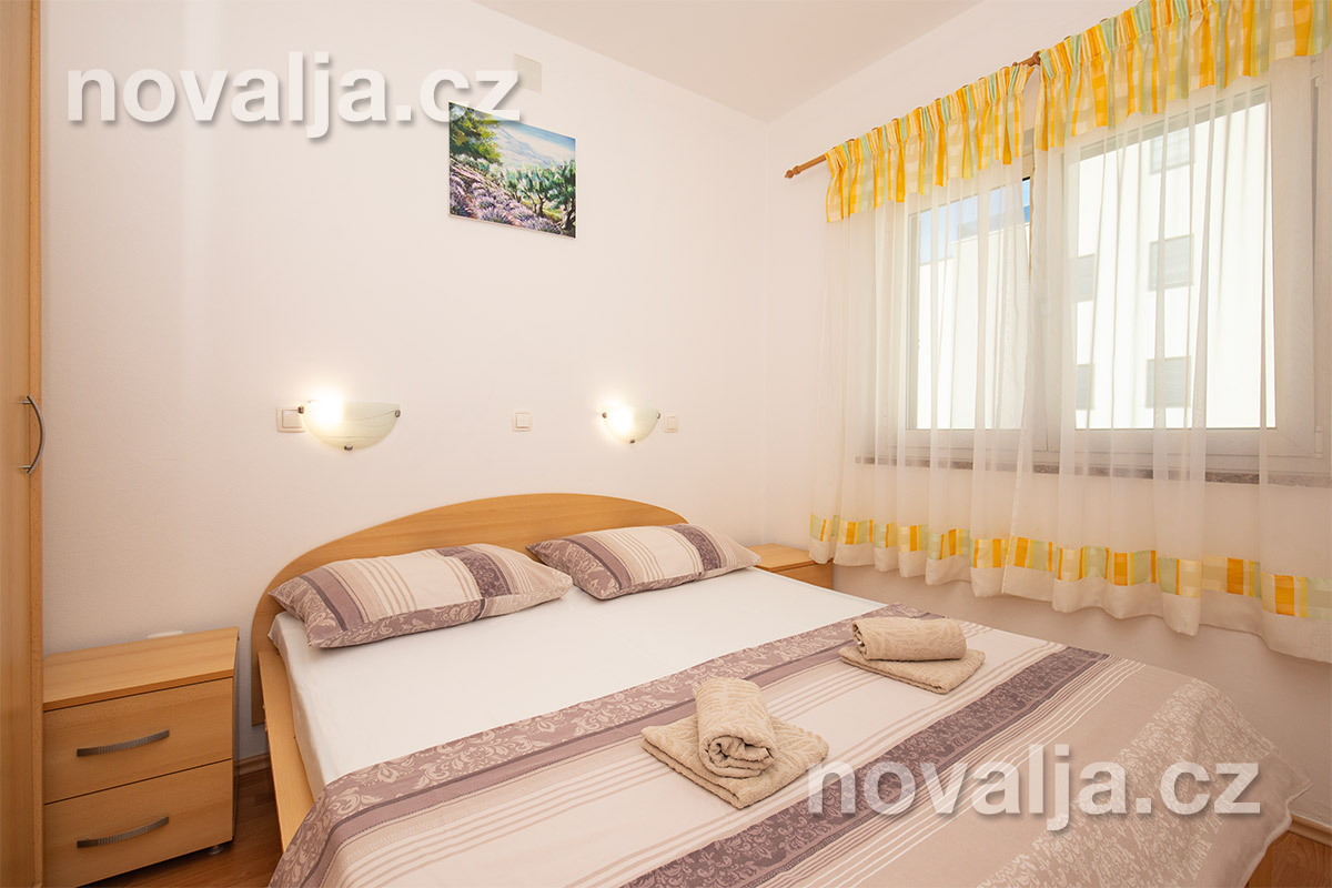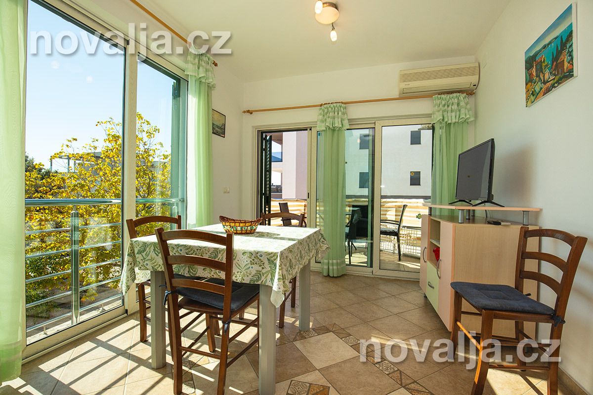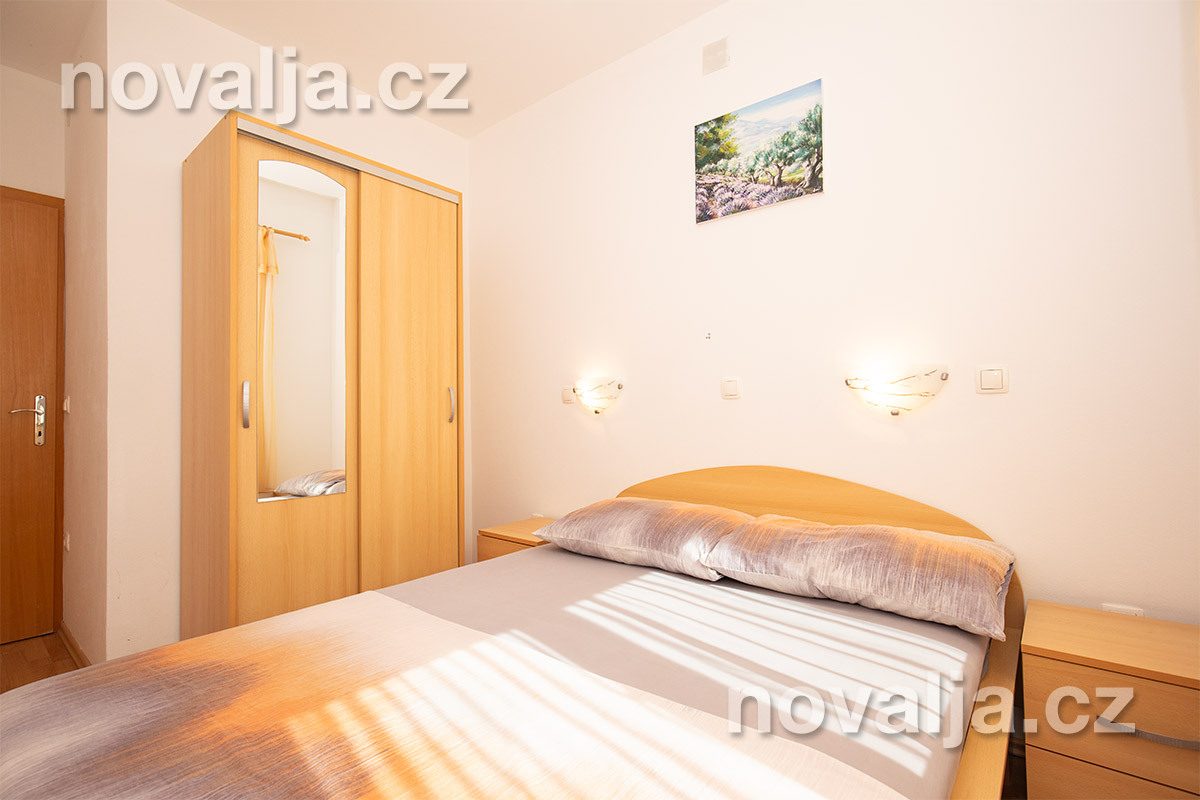 2 spálne s dvoma lôžkami, vybavená kuchyňa (chladnička, mraznička, mikrovlnná rúra, varná kanvica, kávovar) s rozkladacím gaučom pre 1 osobu, LCD TV+SAT, sociálne zariadenie so sprchovacím kútom a WC, práčka, balkón s výhľadom na more, prenosný gril. Klimatizácia v kuchyni (v cene).