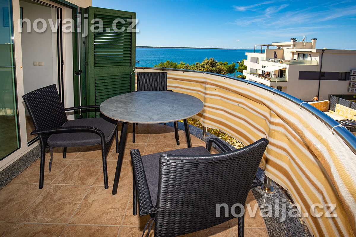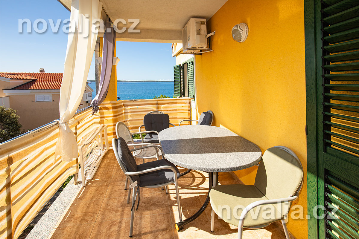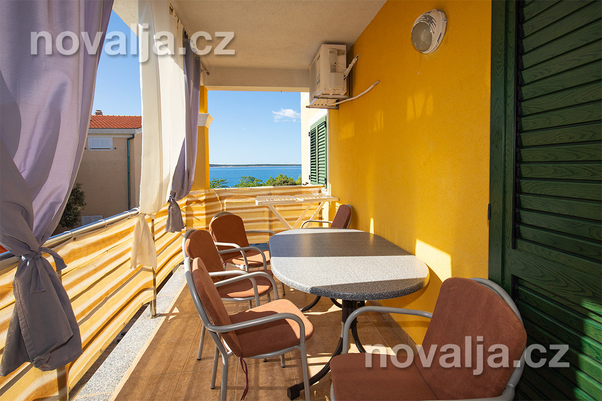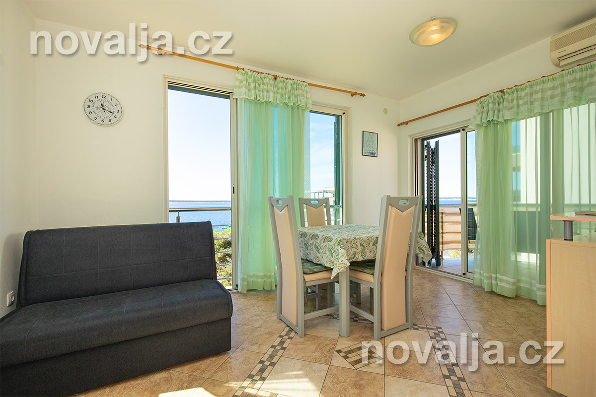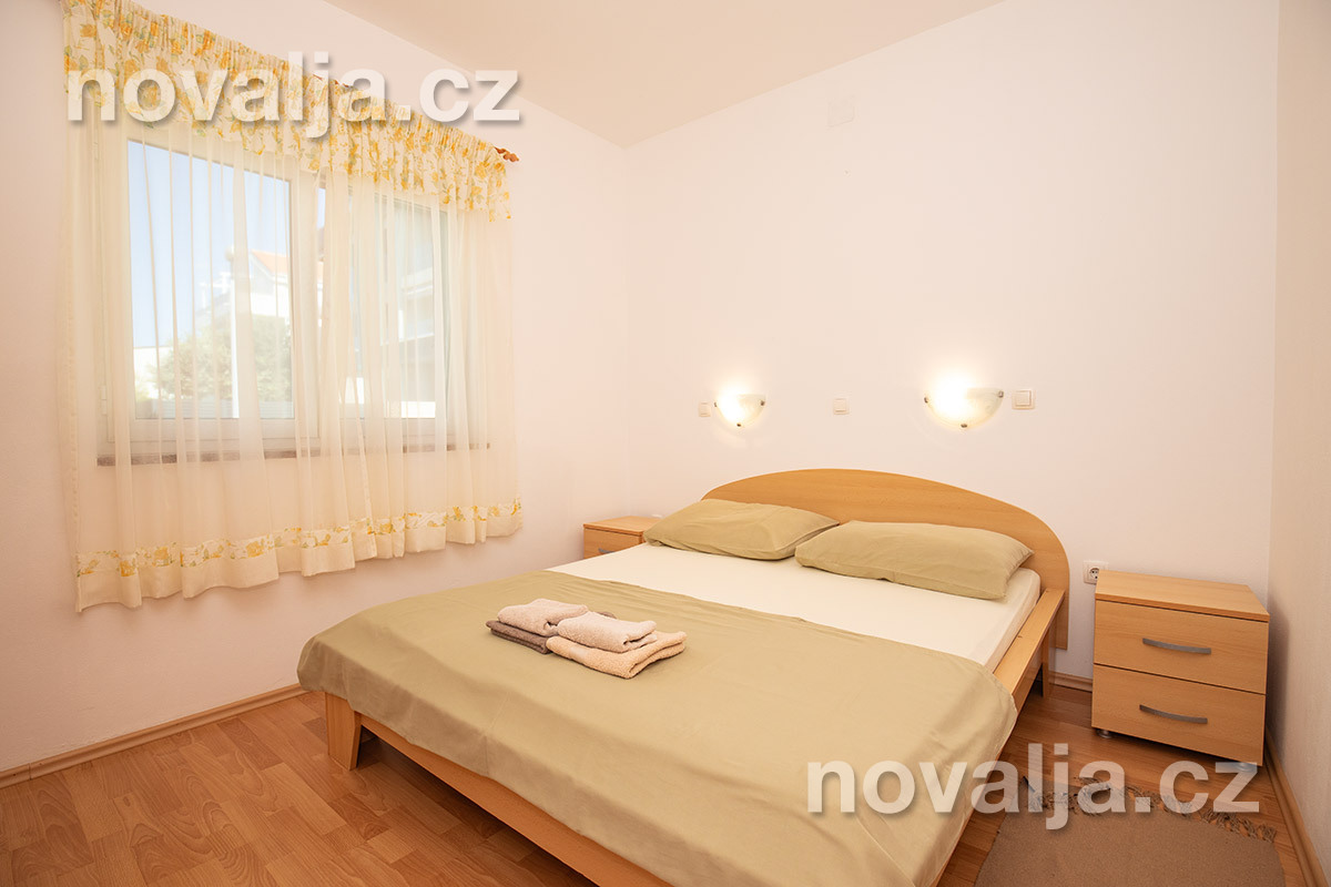 2 spálne s dvoma lôžkami, vybavená kuchyňa (chladnička, mraznička, mikrovlnná rúra, varná kanvica, kávovar) s rozkladacím gaučom pre 1 osobu, LCD TV+SAT, sociálne zariadenie so sprchovacím kútom a WC, práčka, balkón s výhľadom na more, prenosný gril. Klimatizácia v kuchyni (v cene).