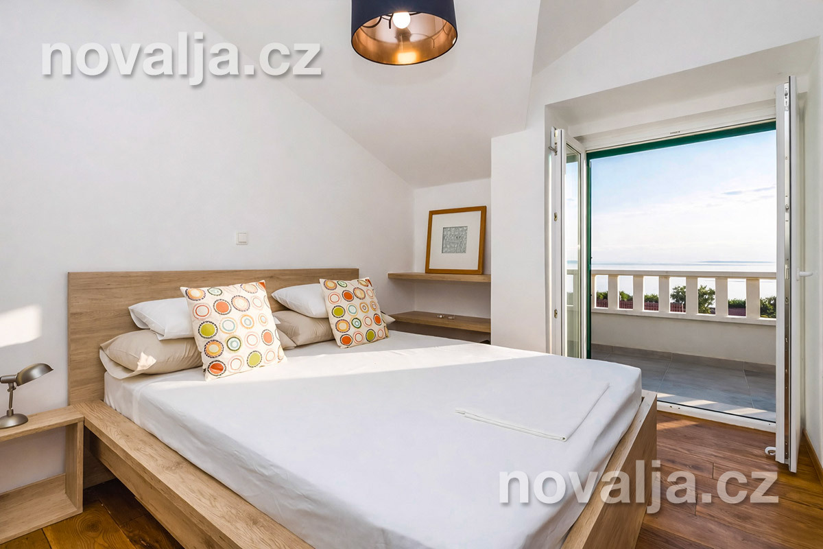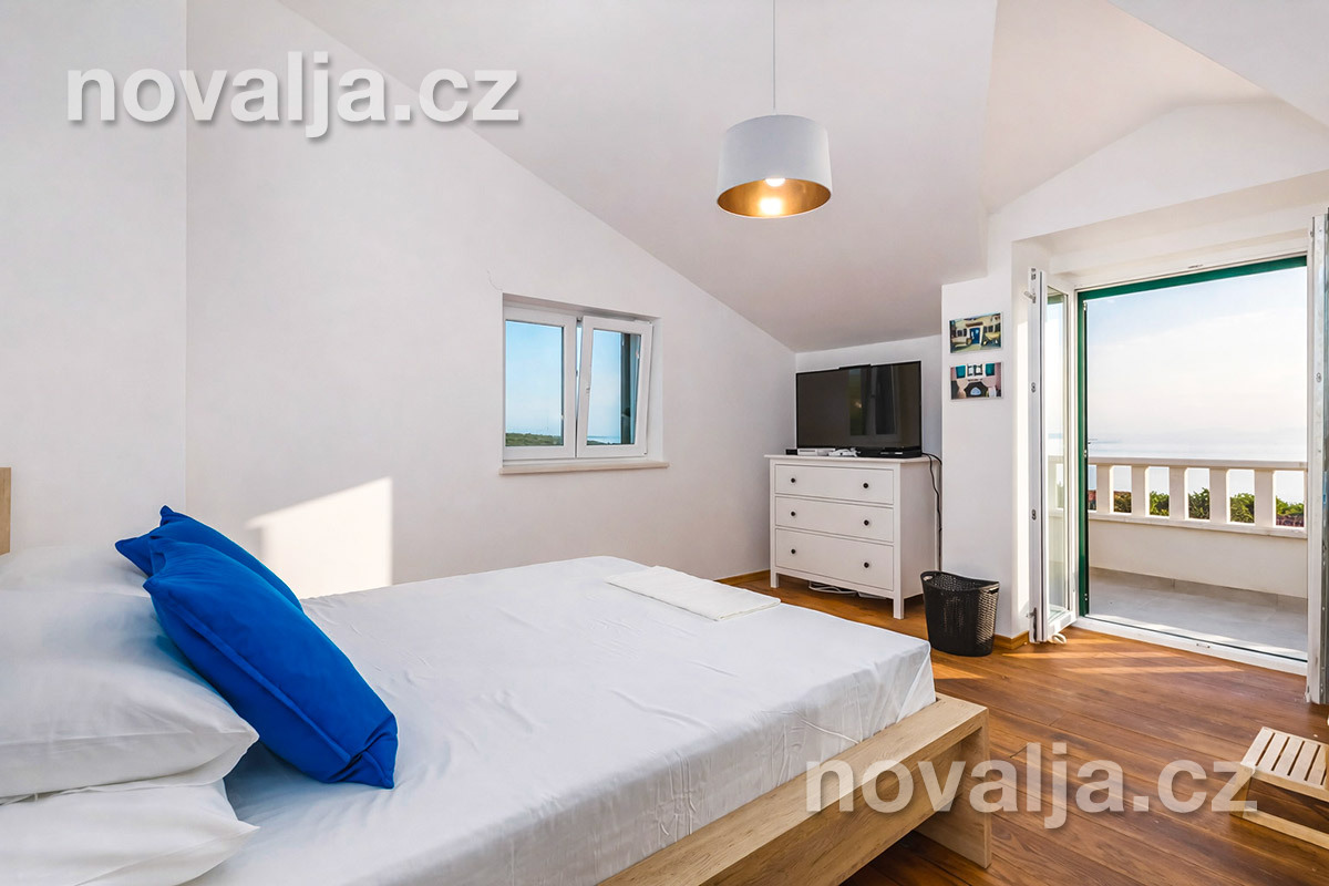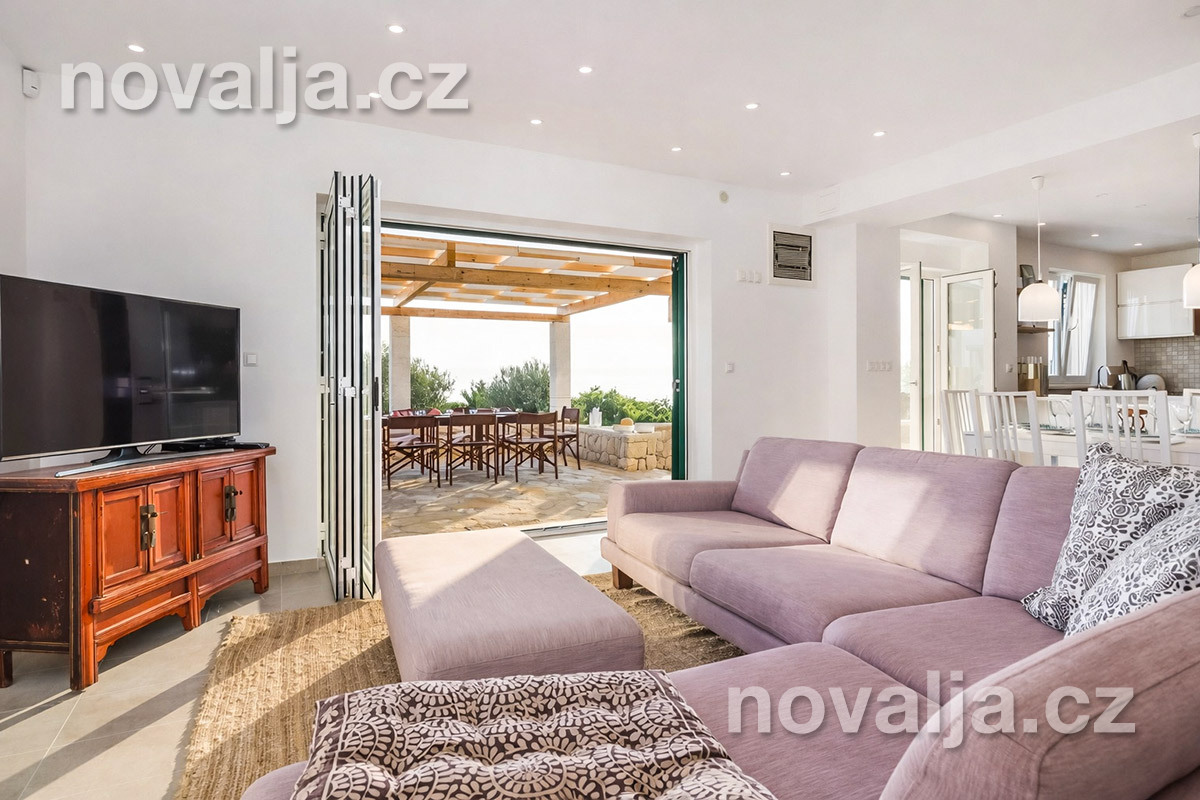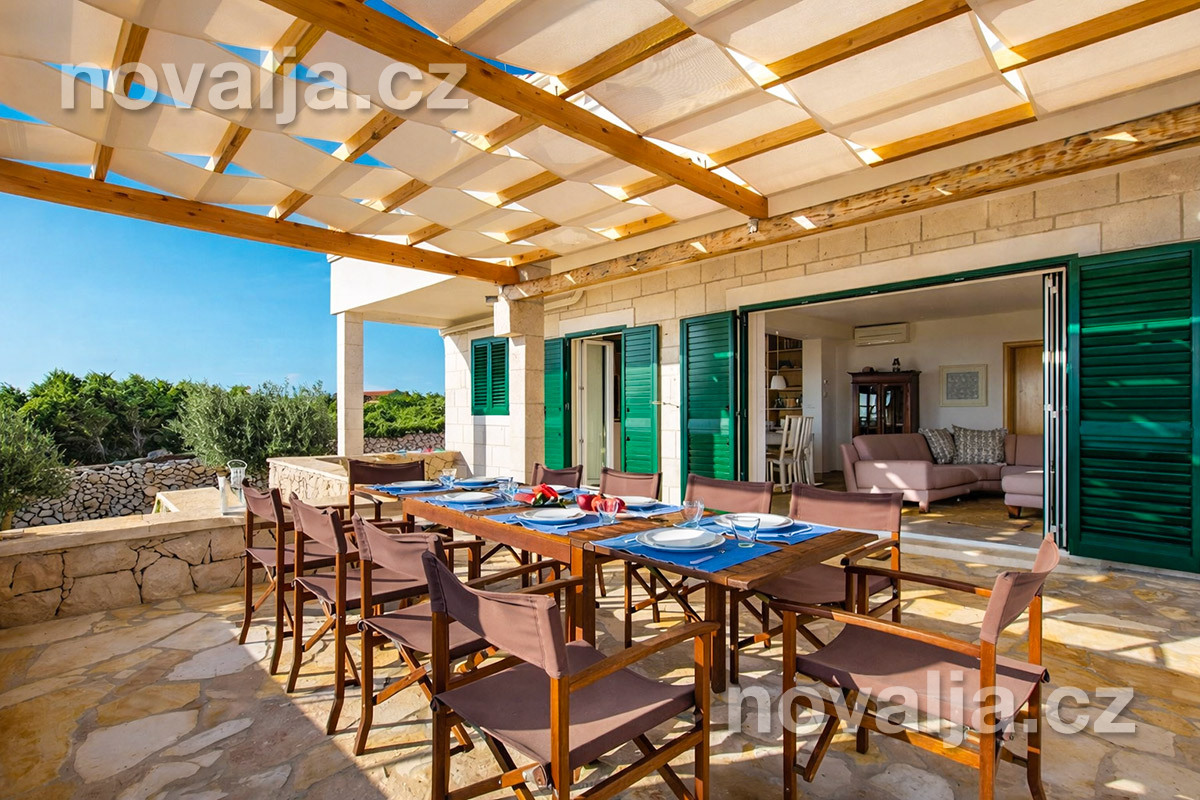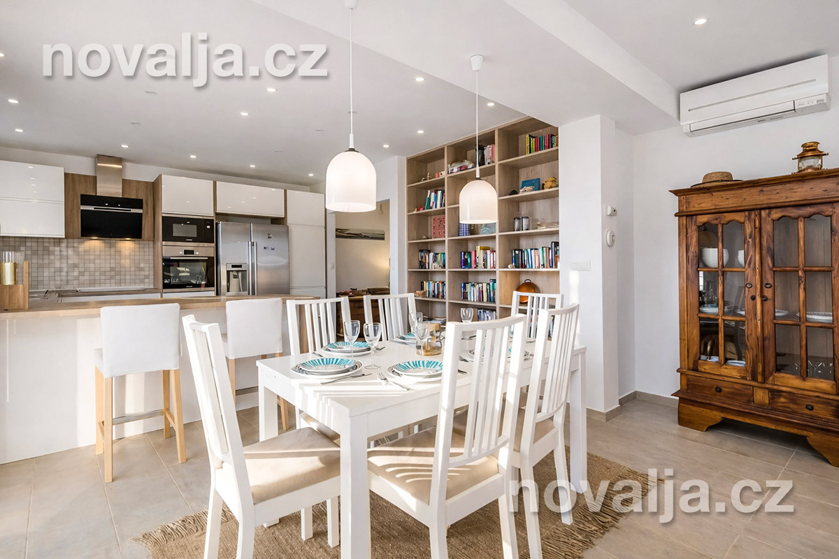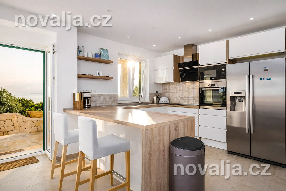 Celkom 5 klimatizovaných spální - 3 spálne s manželským lôžkom (200 x 160 cm) a 2 spálne s dvoma oddelenými lôžkami (190 x 90 cm), vybavená kuchyňa (indukčná varná doska, americká chladnička, mraznička, umývačka, rúra, mikrovlnná rúra, kávovar na esspresso, výrobník ľadu), klimatizovaný obývací priestor, 2x Smart TV, 5x sociálne zariadenie - 4x so sprchovacím kútom a WC a 1x s vaňou a WC, práčka, dve terasy s výhľadom na more. Klimatizácia je v cene. Bazén 8 x 4 m, ležadlá, slnečníky. V suteréne je k dispozícii druhá veľká chladnička.