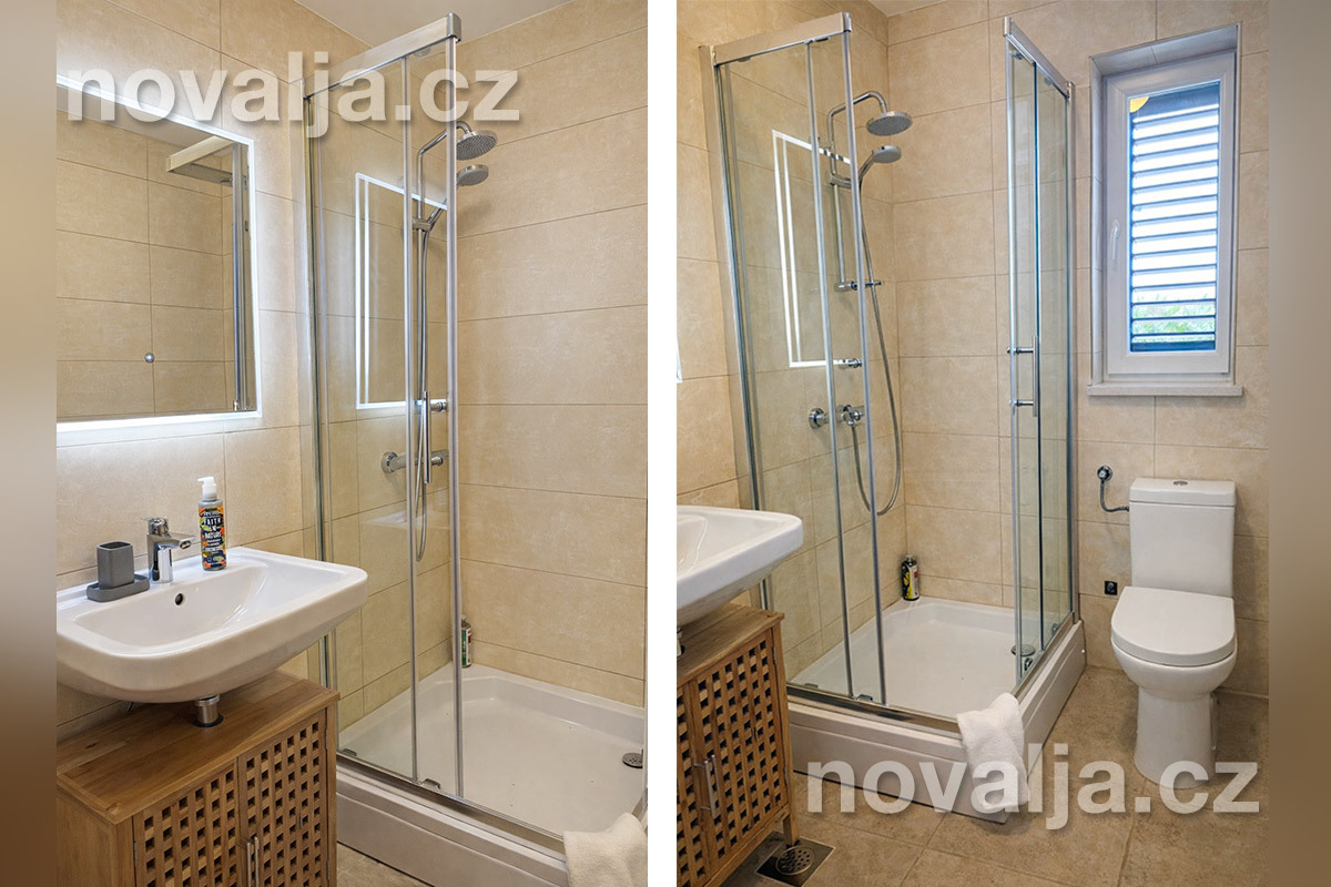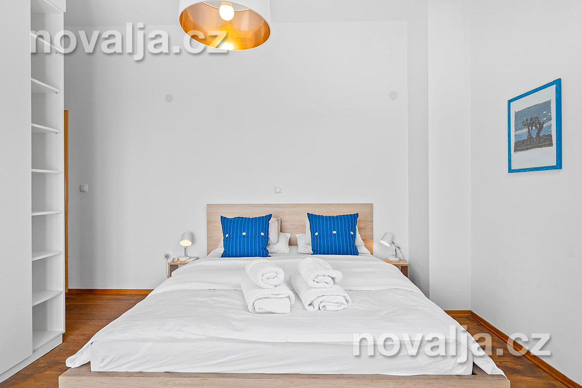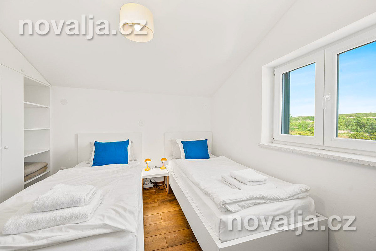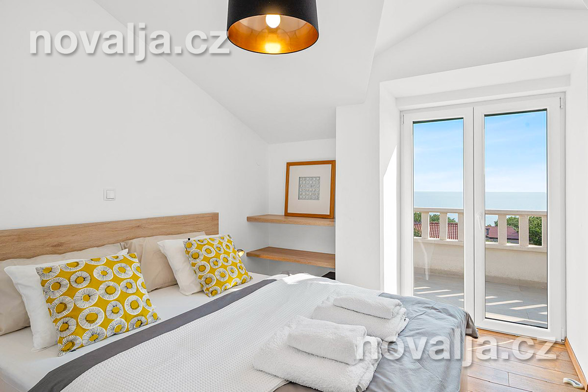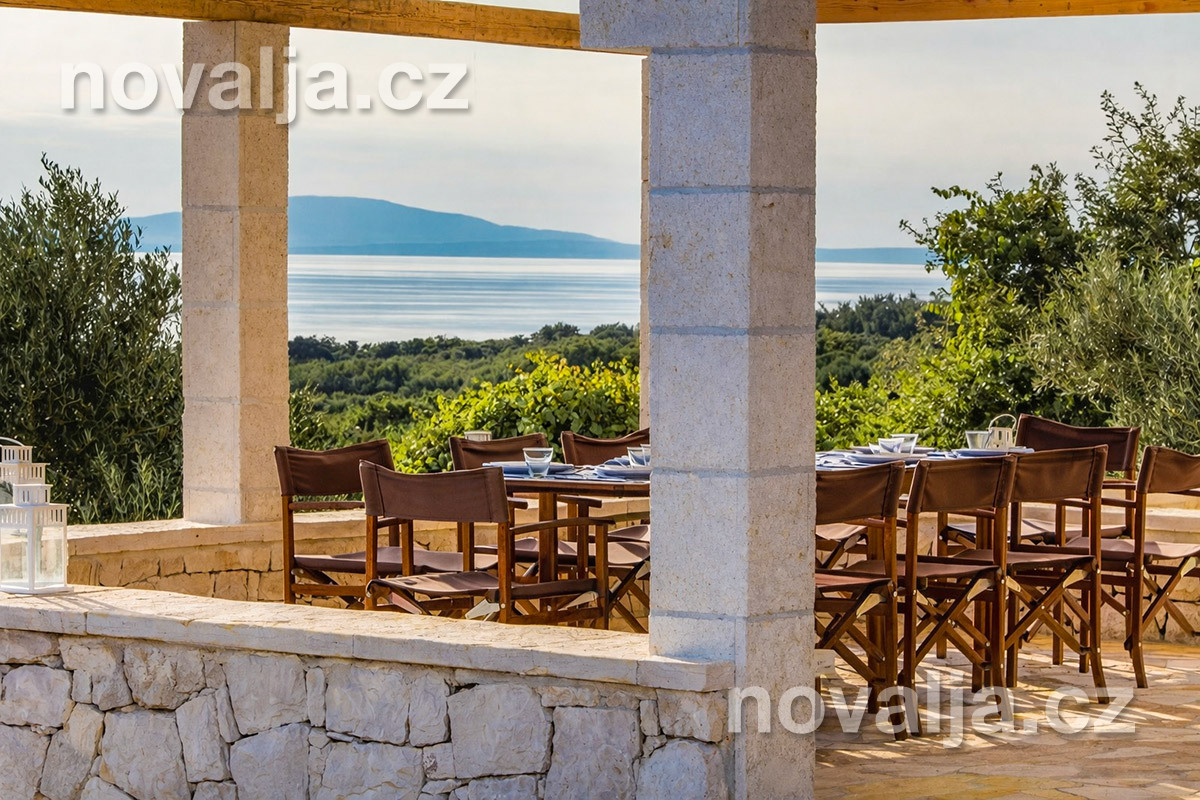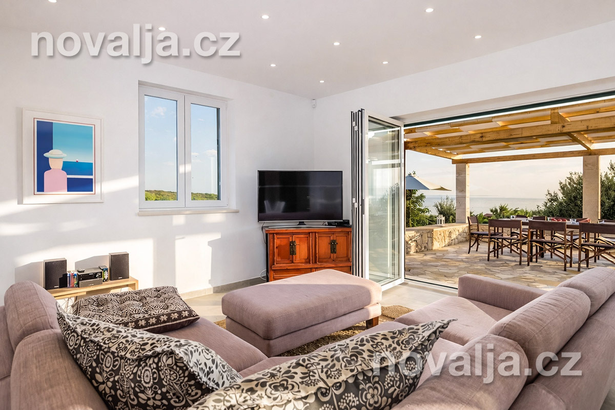 Celkom 5 klimatizovaných spální - 3 spálne s manželským lôžkom (200 x 160 cm) a 2 spálne s dvoma oddelenými lôžkami (190 x 90 cm), vybavená kuchyňa (indukčná varná doska, americká chladnička, mraznička, umývačka, rúra, mikrovlnná rúra, kávovar na esspresso, výrobník ľadu), klimatizovaný obývací priestor, 2x Smart TV, 5x sociálne zariadenie - 4x so sprchovacím kútom a WC a 1x s vaňou a WC, práčka, dve terasy s výhľadom na more. Klimatizácia je v cene. Bazén 8 x 4 m, ležadlá, slnečníky. V suteréne je k dispozícii druhá veľká chladnička.