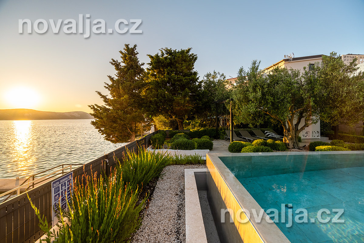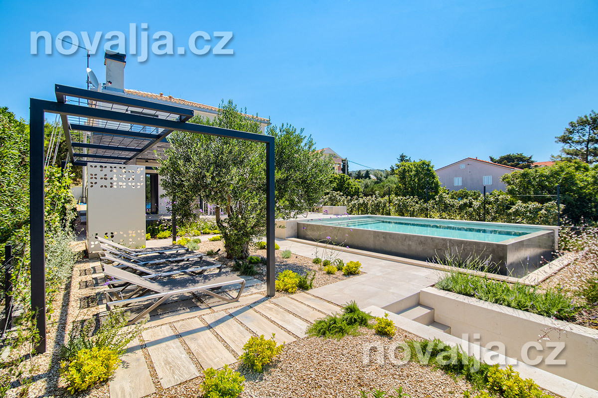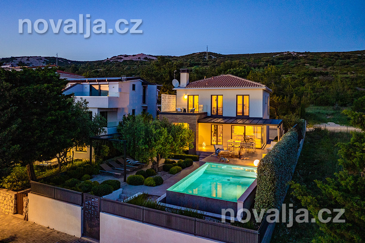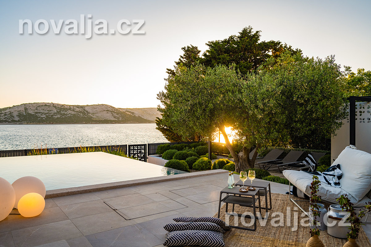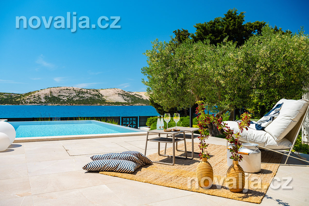 Elegantná vila so súkromným vyhrievaným bazénom hneď pri pláži, bez ďalších hostí, bez majiteľov – to je dovolenkový dom Lunjsko v letovisku Stará Novalja. Dom má 3 spálne a ubytuje 6 osôb plus prípadne 1-2 deti. Hneď pri dome je menšia piesočnato-okruhliaková pláž a betónové mólo. Môžete tu tiež kotviť čln. Piesočná pláž Planjka je od domu vzdialená 1,3 km.