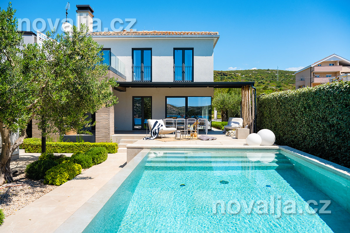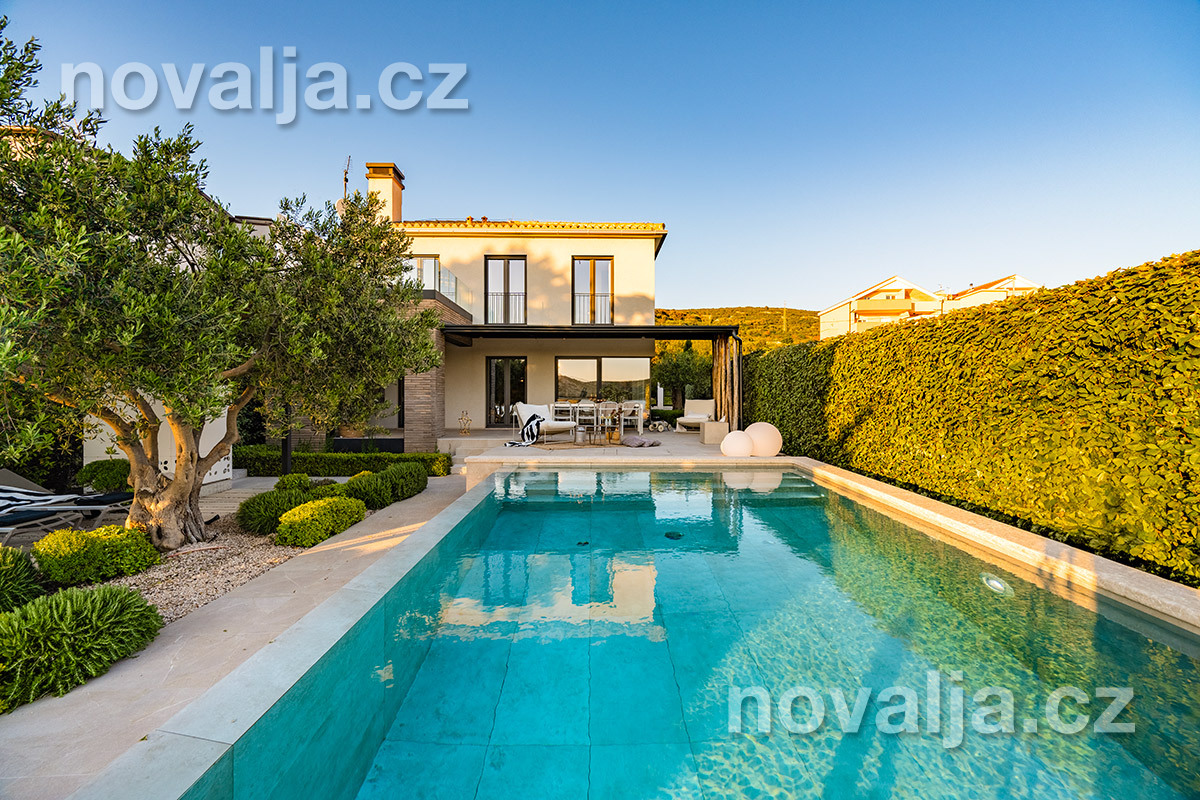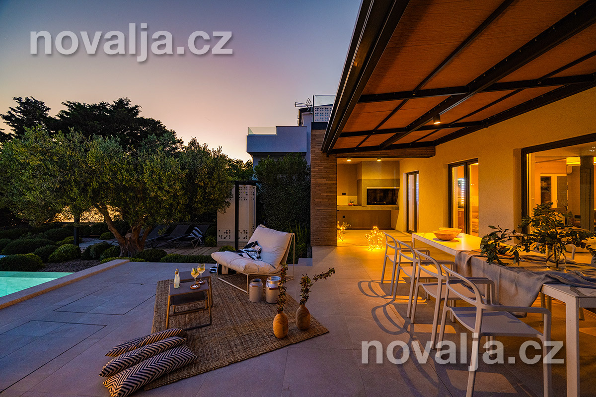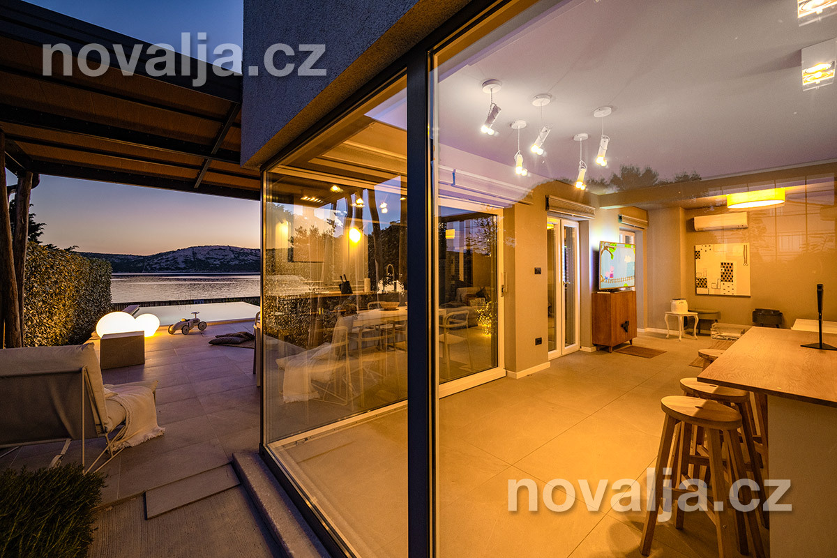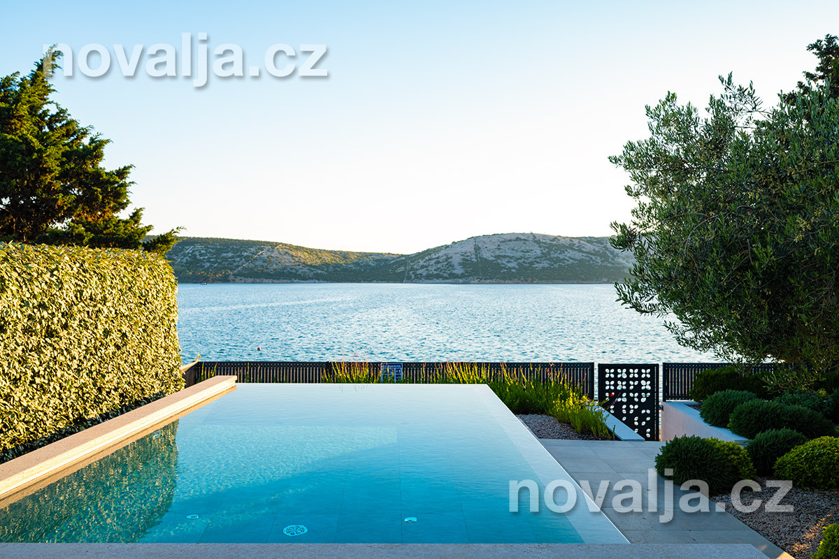 Elegantná vila so súkromným vyhrievaným bazénom hneď pri pláži, bez ďalších hostí, bez majiteľov – to je dovolenkový dom Lunjsko v letovisku Stará Novalja. Dom má 3 spálne a ubytuje 6 osôb plus prípadne 1-2 deti. Hneď pri dome je menšia piesočnato-okruhliaková pláž a betónové mólo. Môžete tu tiež kotviť čln. Piesočná pláž Planjka je od domu vzdialená 1,3 km.