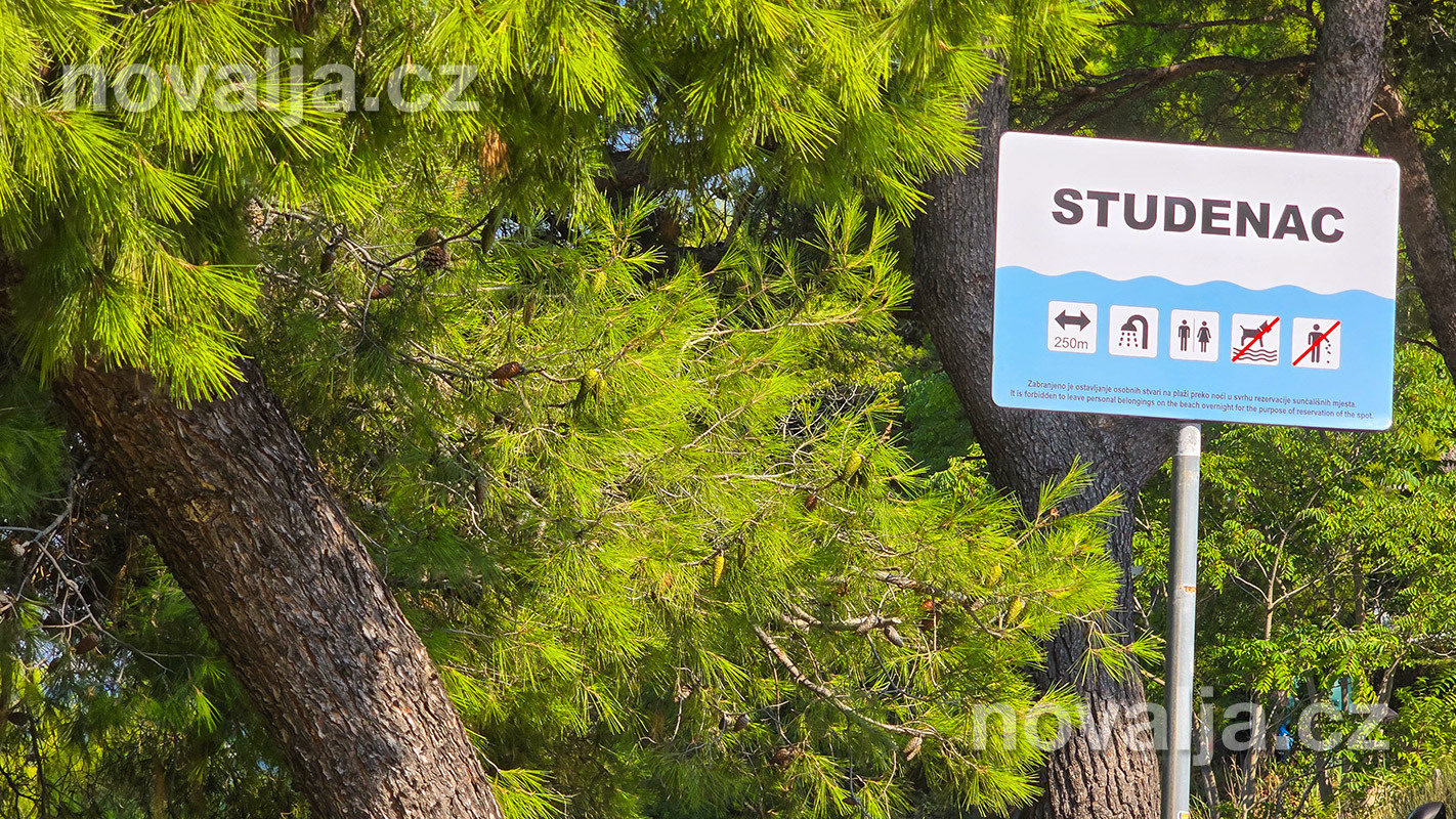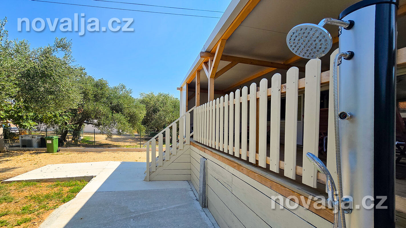 Nový mobilný domček sa nachádza na pokojnom mieste juhovýchodne od centra Tkonu, 100 m od piesočnato-kamienkovej pláže Južna plaža s pozvoľným vstupom do mora. Piesočná pláž Studenac je 300 m od domu. Na oboch plážach je v popoludňajších hodinách dostatok miest v tieni.