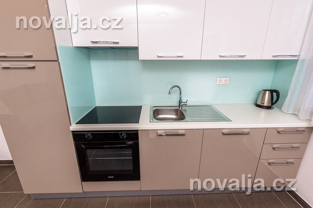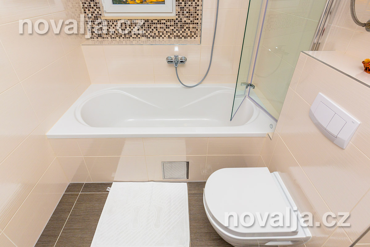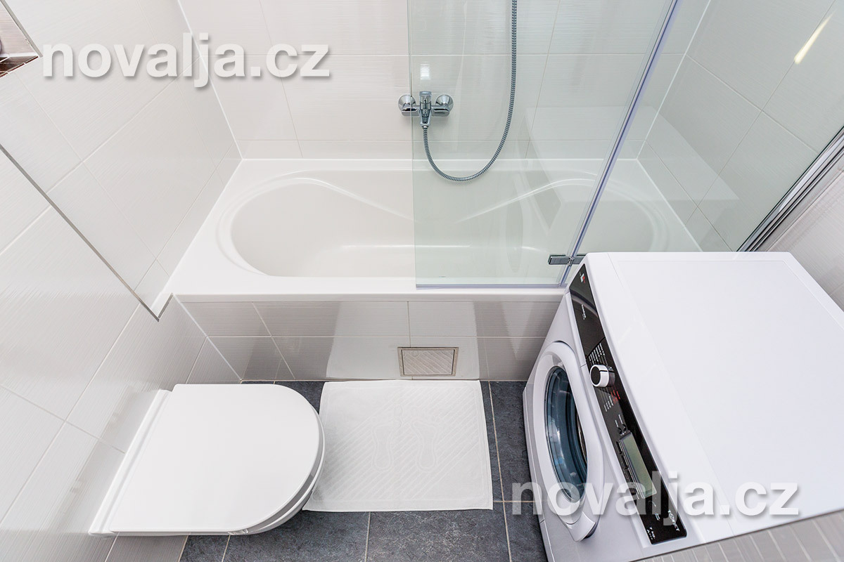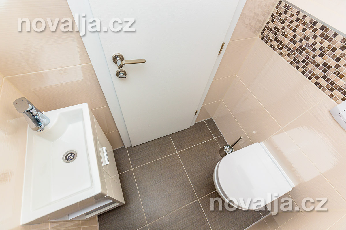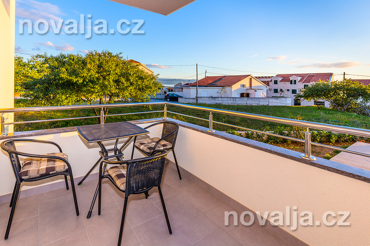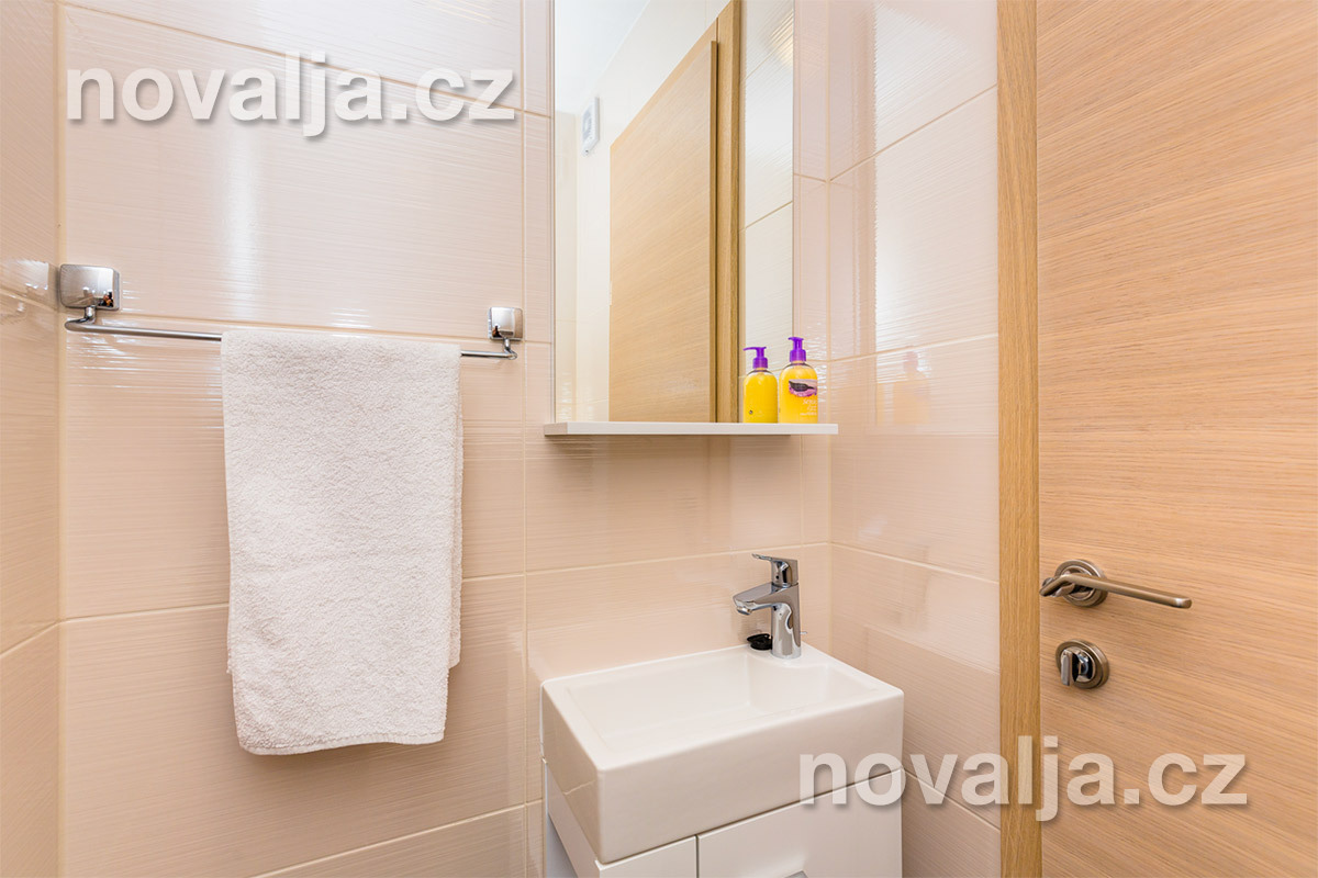 1 spálňa s dvoma lôžkami, vybavená kuchyňa (chladnička, mraznička, rúra, umývačka riadu + tablety do umývačky, rýchlovarná kanvica, kávovar) s rozkladacím gaučom (200 x 160 cm) pre 1–2 osoby, LCD TV+SAT, trezor, sociálne zariadenie s vaňou a WC, ďalšie samostatné WC, práčka, fén, terasa s výhľadom na more. Klimatizácia v kuchyni (v cene).