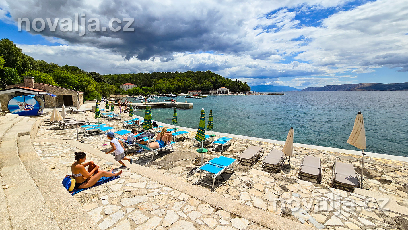 Pozdĺž pobrežia letoviska sa rozprestiera niekoľko menších okruhliakových a piesočno-okruhliakových pláží, ktoré sú miestami doplnené o betónové móla na opaľovanie, z ktorých sa do mora vstupuje po schodoch.
