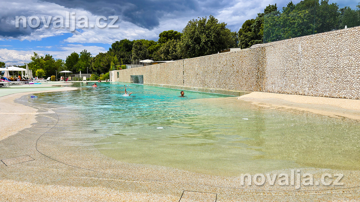 Hostia v kempe môžu zadarmo využívať nové bazény exotického rázu, imitujúce pláž a more, vhodné aj pre deti, ktoré sú len 30-60 m od mobilhomov. Okolo bazénov je možné zadarmo využívať aj lehátka a slnečníky. Priamo v kempe je v prevádzke kaviareň, minimarket, pekáreň a malé detské ihrisko. Najbližšia reštaurácia je cca 5 minút chôdze smerom do centra mestečka.