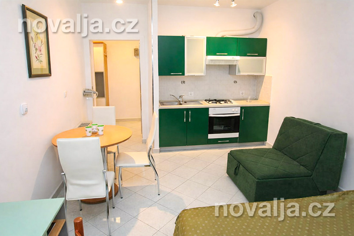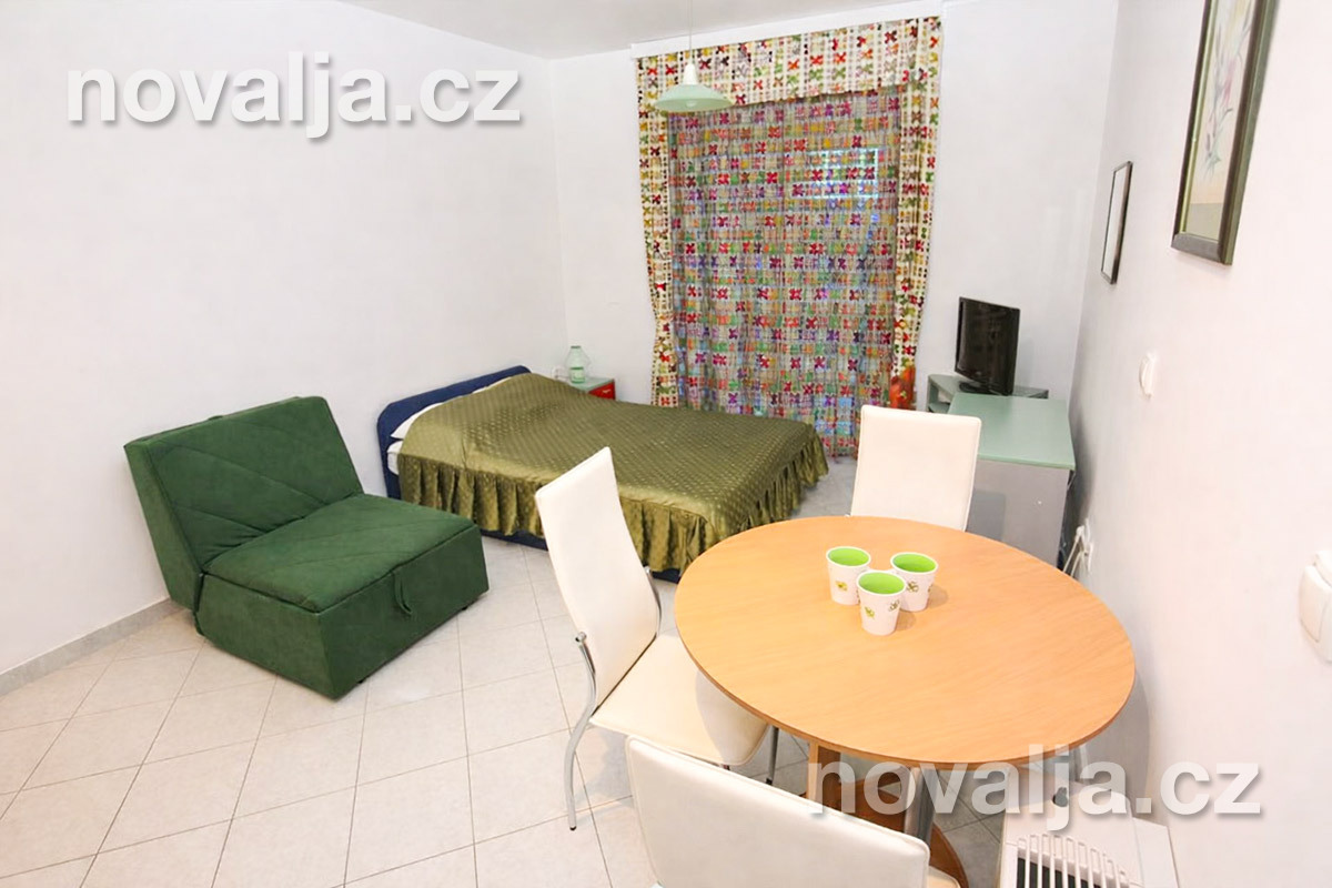 Štúdio (jedna miestnosť) s dvoma lôžkami a rozkladacím kreslom pre 1 osobu, vybavená kuchyňa (chladnička, rúra, varná kanvica), TV+SAT, fén, sociálne zariadenie so sprchovacím kútom a WC, terasa. Klimatizácia (v cene).