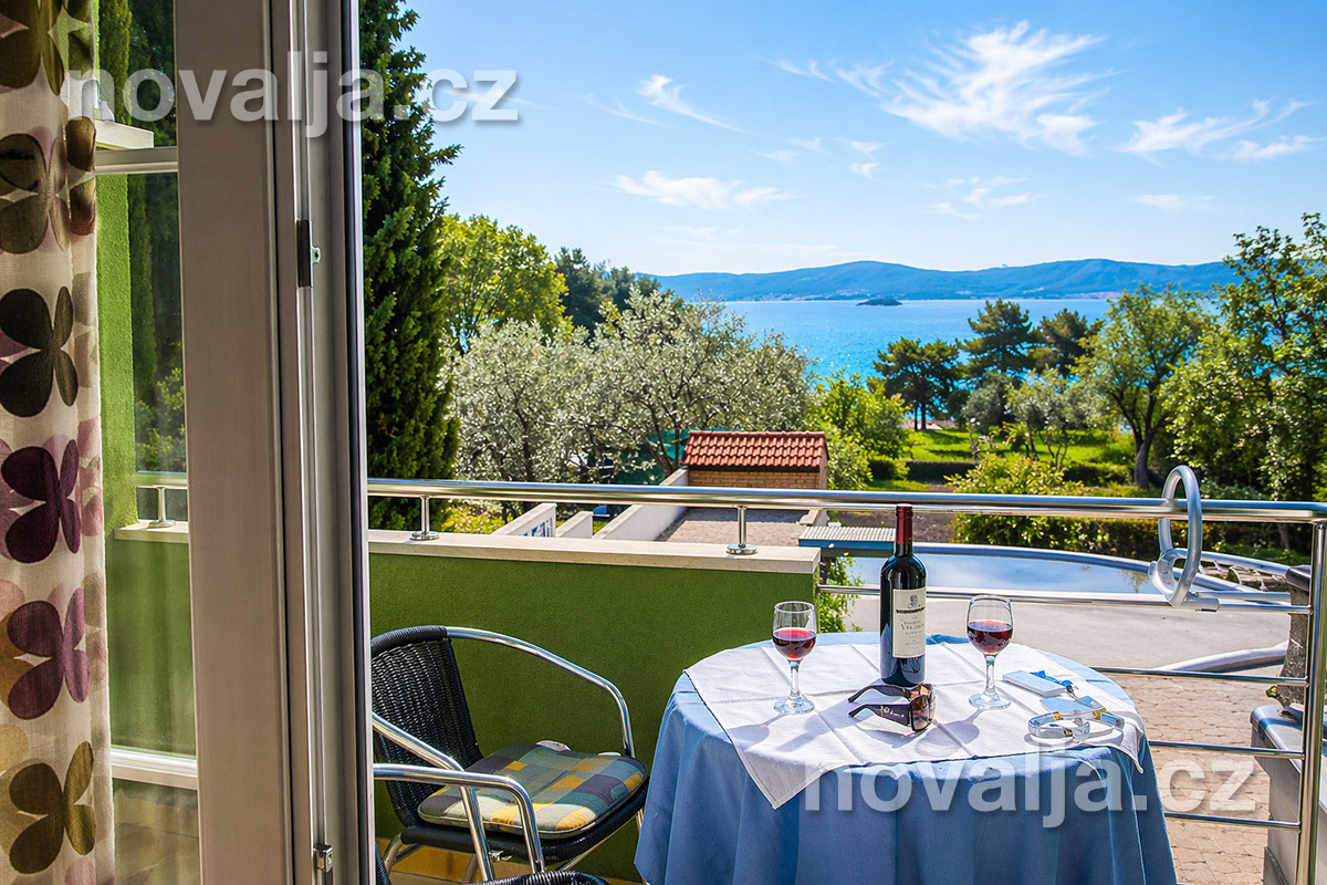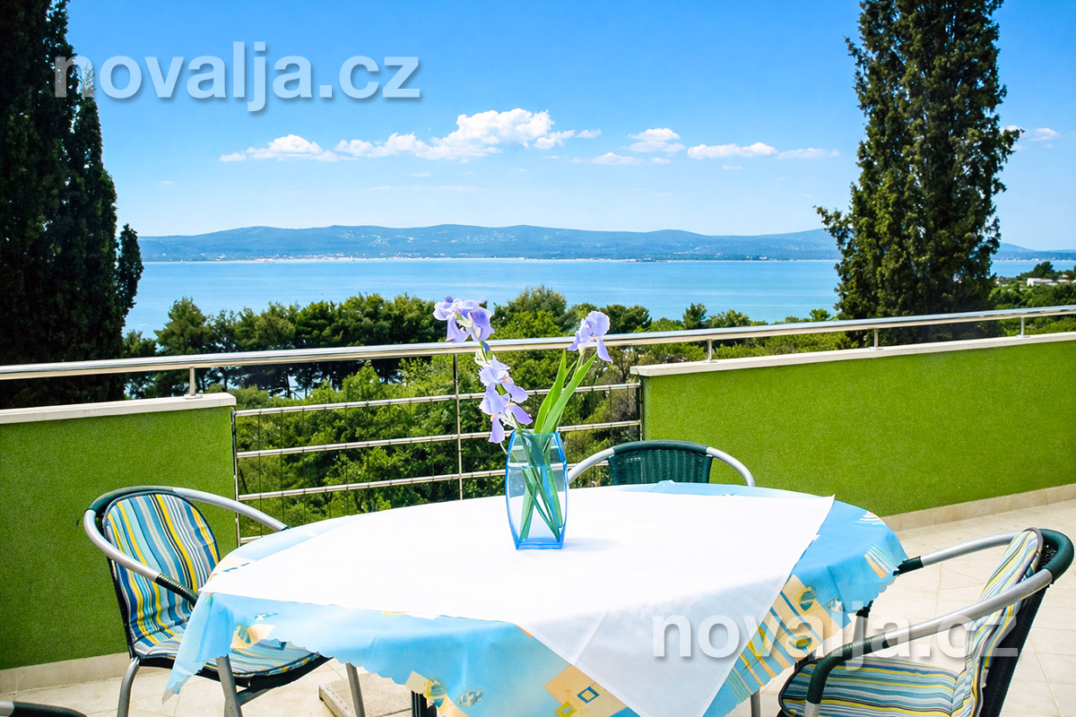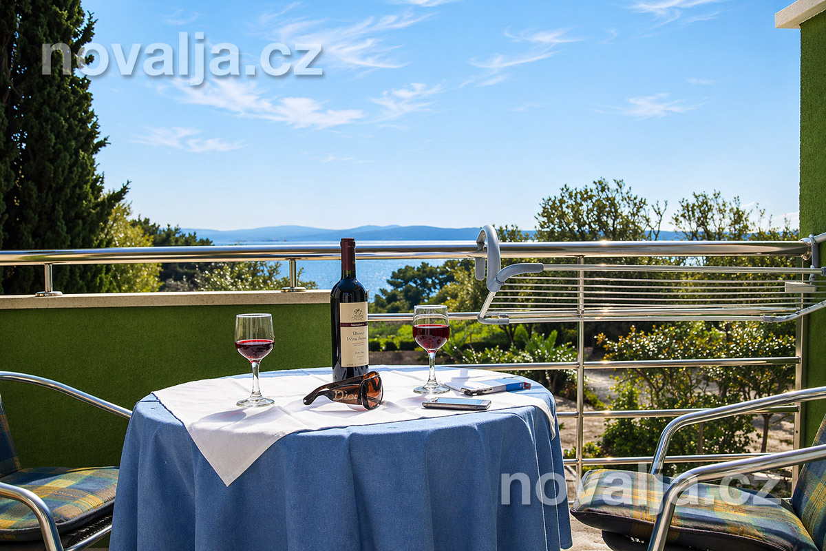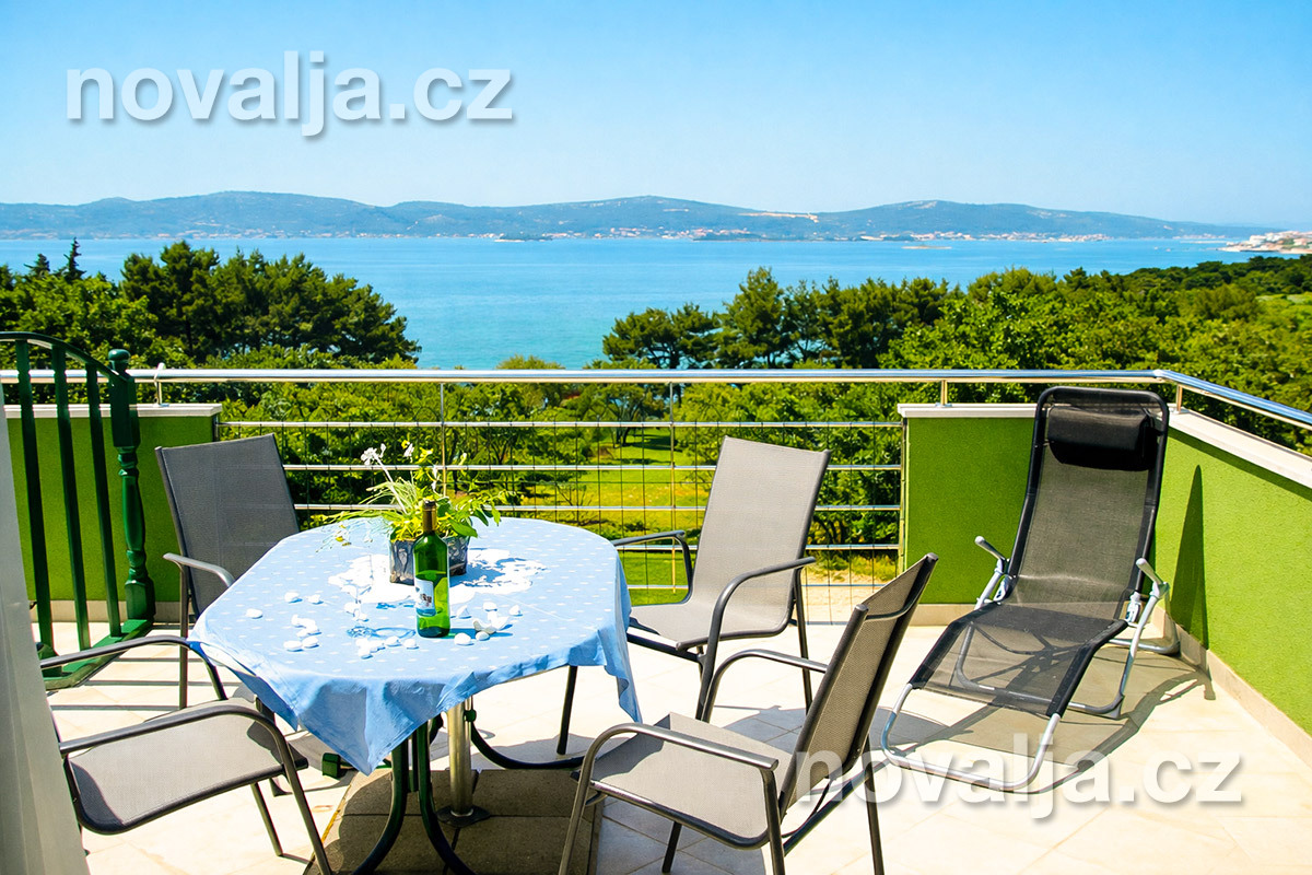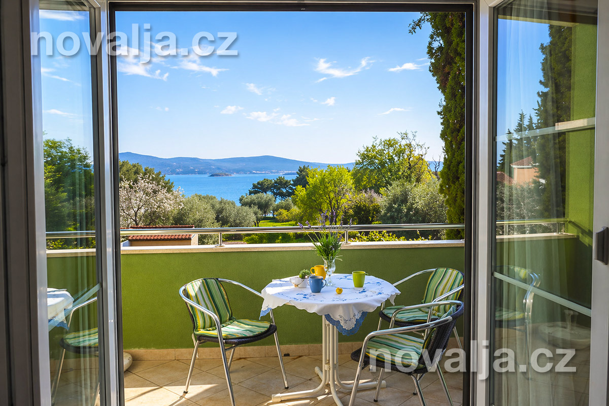 1 spálňa s dvoma lôžkami a rozkladacím gaučom pre 1 osobu, vybavená kuchyňa (chladnička, rúra, umývačka, varná kanvica) s rozkladacím gaučom a rozkladacím kreslom pre 1–2 osoby, TV+SAT, fén, sociálne zariadenie s vaňou a WC, terasa s krásnym výhľadom na more. Klimatizácia (v cene).