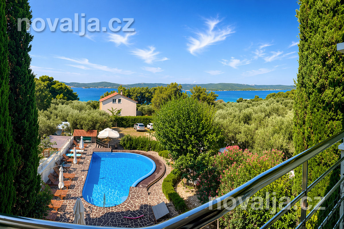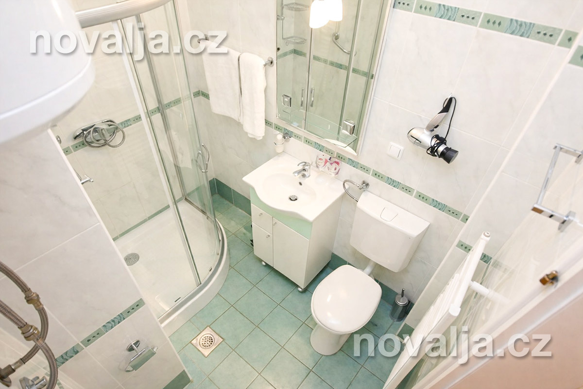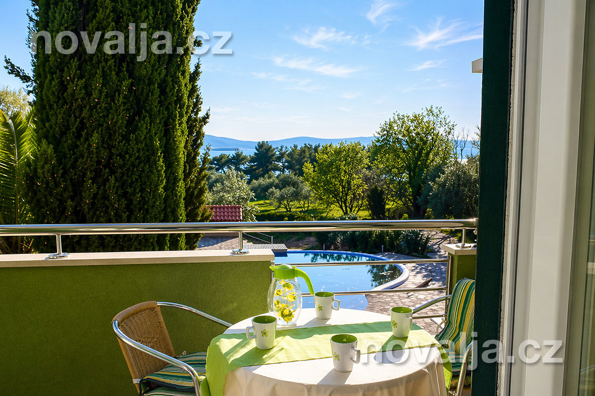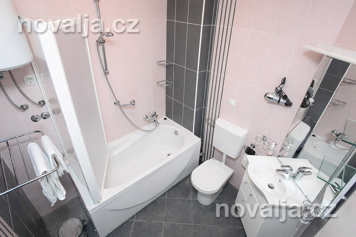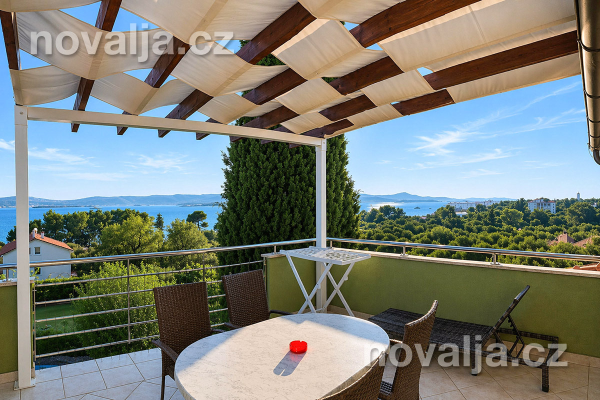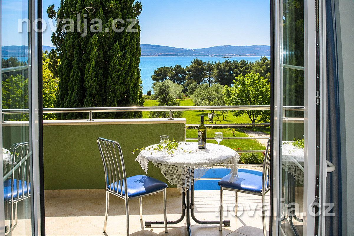 1 spálňa s dvoma lôžkami a rozkladacím gaučom pre 1 osobu, vybavená kuchyňa (chladnička, rúra, umývačka, varná kanvica) s rozkladacím gaučom a rozkladacím kreslom pre 1–2 osoby, TV+SAT, fén, sociálne zariadenie s vaňou a WC, terasa s krásnym výhľadom na more. Klimatizácia (v cene).