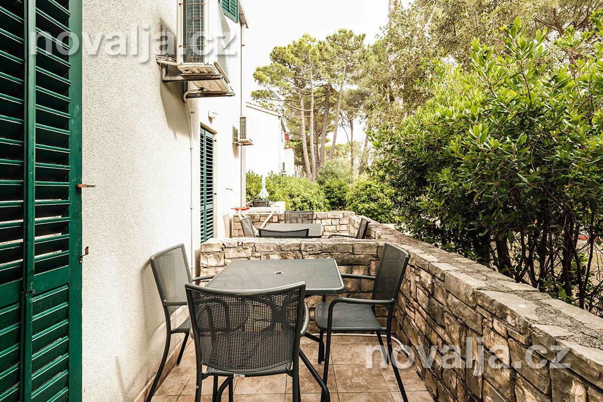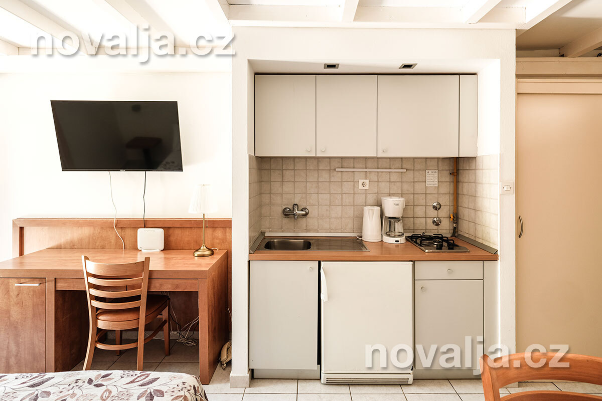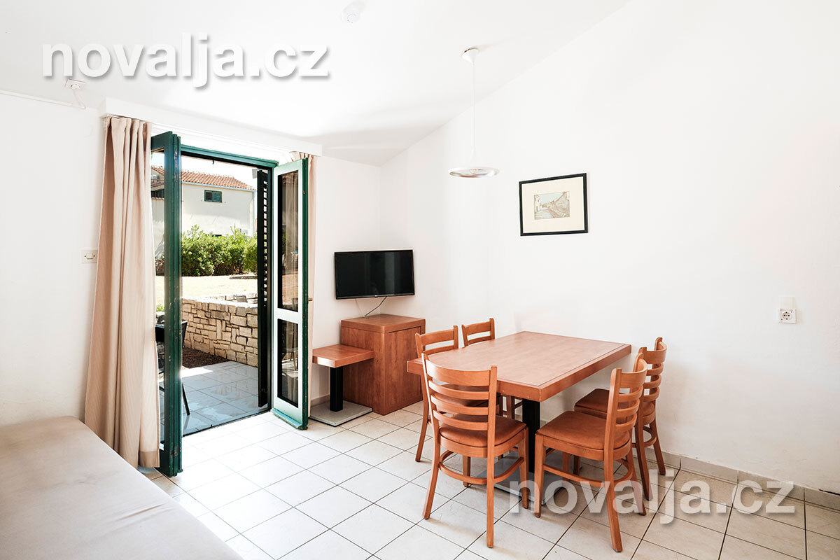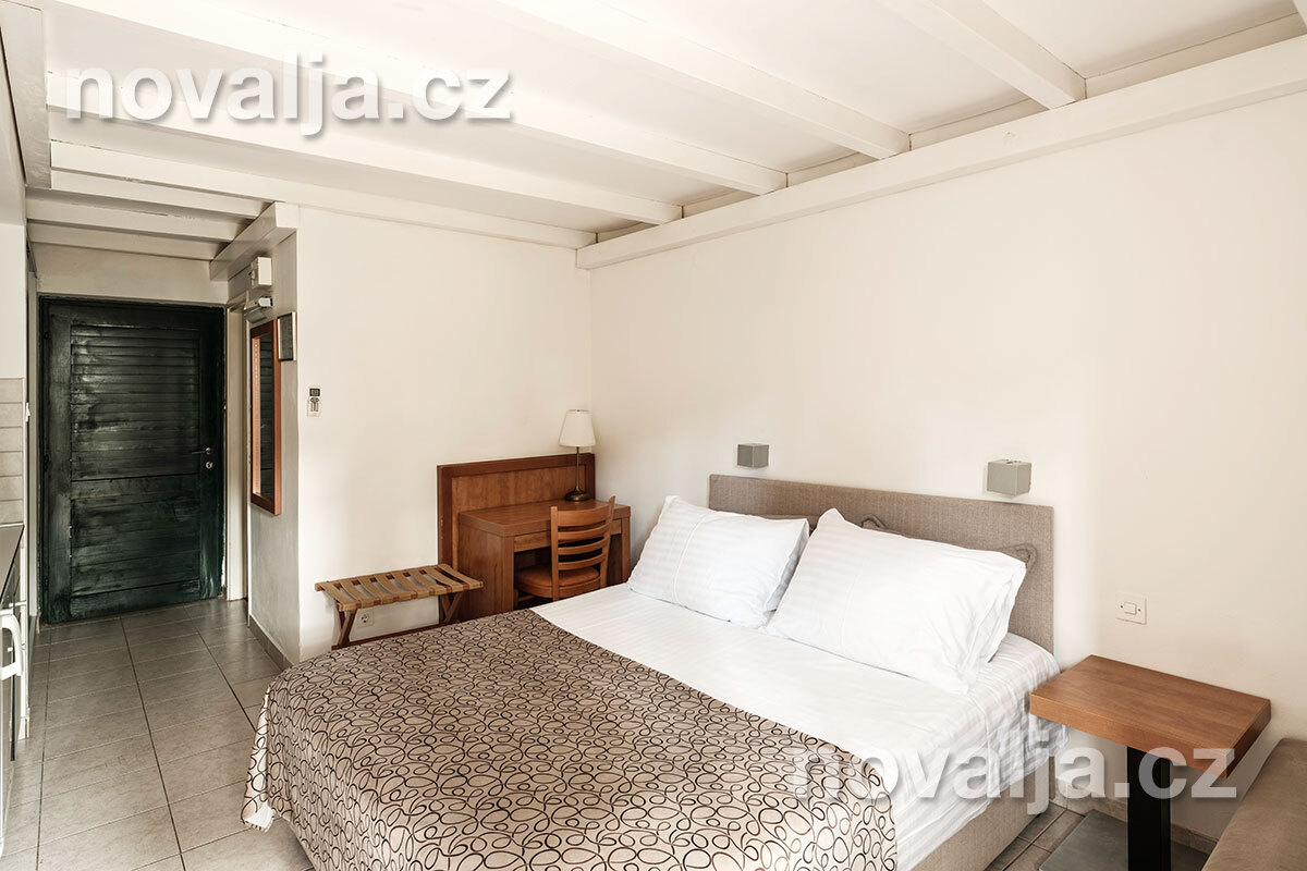 Studio (jedna místnost) pro 2 osoby, vybavený kuchyňský kout, sociální zařízení se sprchovým koutem a WC, TV+SAT, terasa. Klimatizace.
