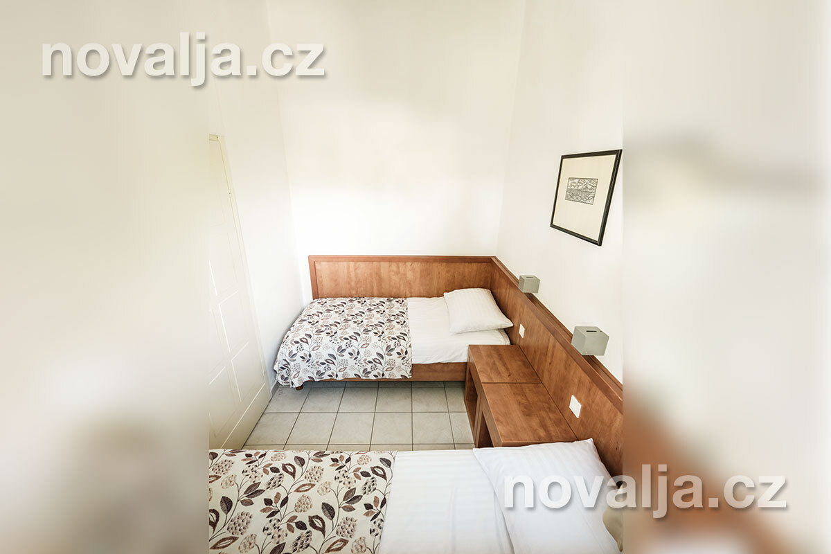 Dvě ložnice se dvěma lůžky, vybavená kuchyň (lednička, varná konvice, kávovar) s rozkládacím gaučem pro 1 osob, sociální zařízení se sprchovým koutem a WC, fén, TV+SAT, terasa. Klimatizace v kuchyni (v ceně).