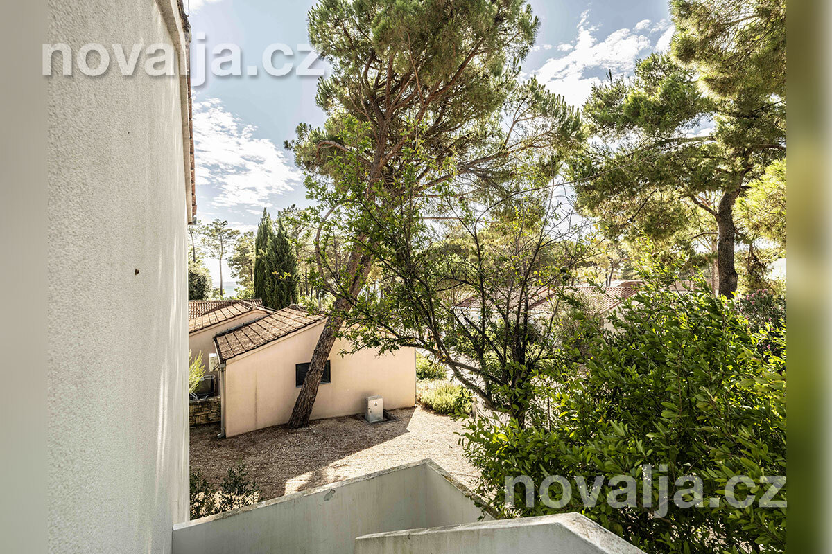 3 spálne - v jednej spálni manželská posteľ (160 x 200 cm), vo zvyšných dvoch vždy jedno samostatné lôžko (80 x 200 cm), vybavená kuchyňa (varná doska, chladnička, mraznička, umývačka, mikrovlnná rúra, varná kanvica, kávovar) s rozkladacím kúpeľom so sprchovacím kútom a WC, fén, tienená terasa so záhradným nábytkom a dvoma lehátkami. Klimatizácia v kuchyni (v cene). Rozloha 34 m2 + terasa 26 m².