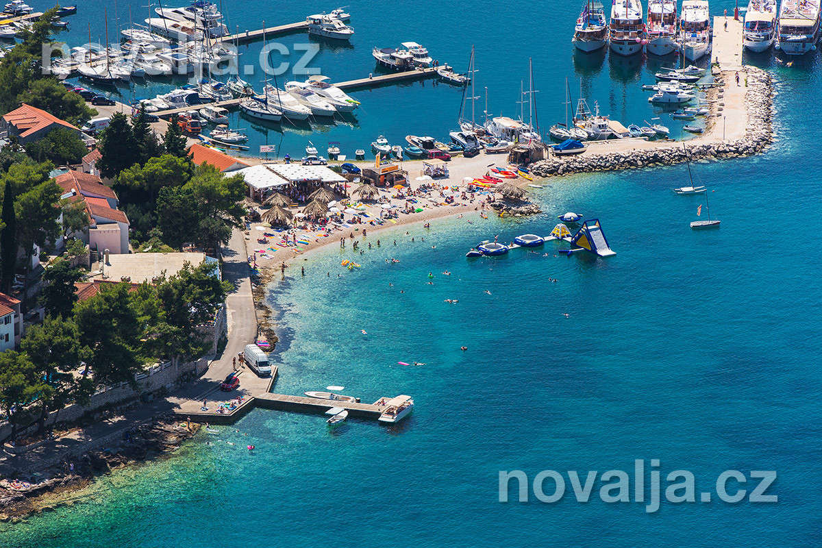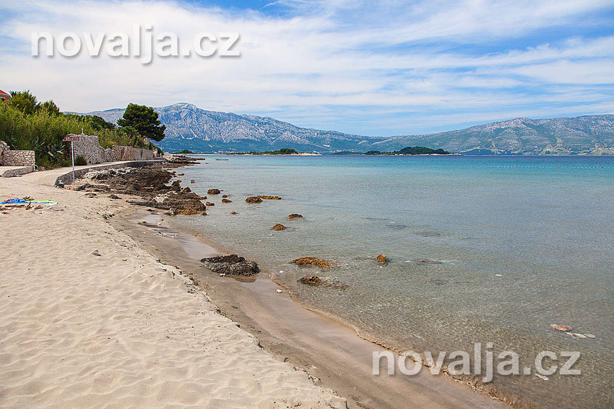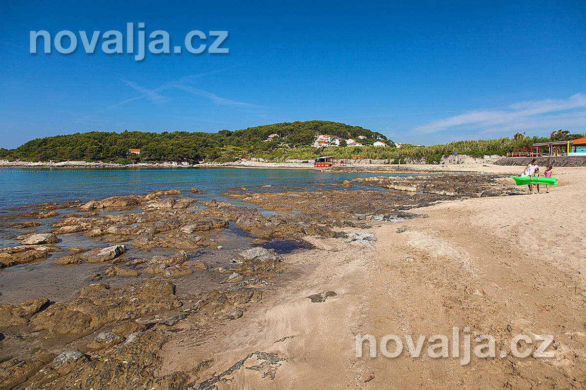 Piesočná pláž Pržina je vzdialenejšia a je lepšie ísť tam autom (východným smerom).