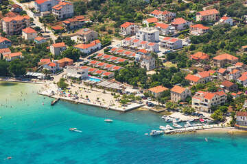 Luxusní apartmány Dalmacija blízko písečné pláže v chorvatském letovisku Preko, s možností vlastního vaření nebo s polopenzí/snídaní. Bazén, klimatizace, WIFI, dětské hřiště, zábavní program pro děti i dospělé.